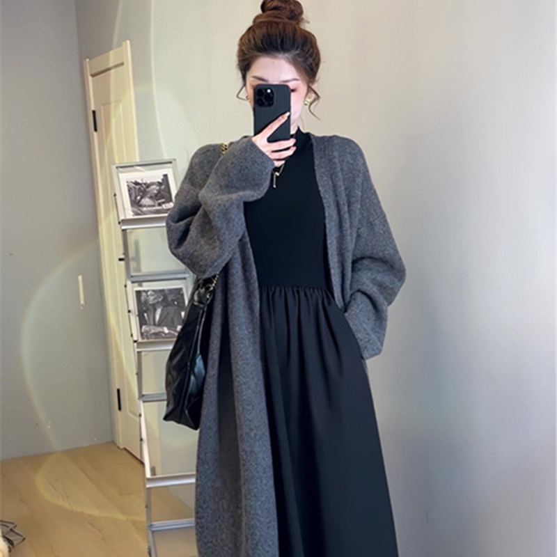 Пятно платье для беременных костюм свободный ленивый вязаный с нижней шерстяной свитер куртка 2024 новый осень-зима