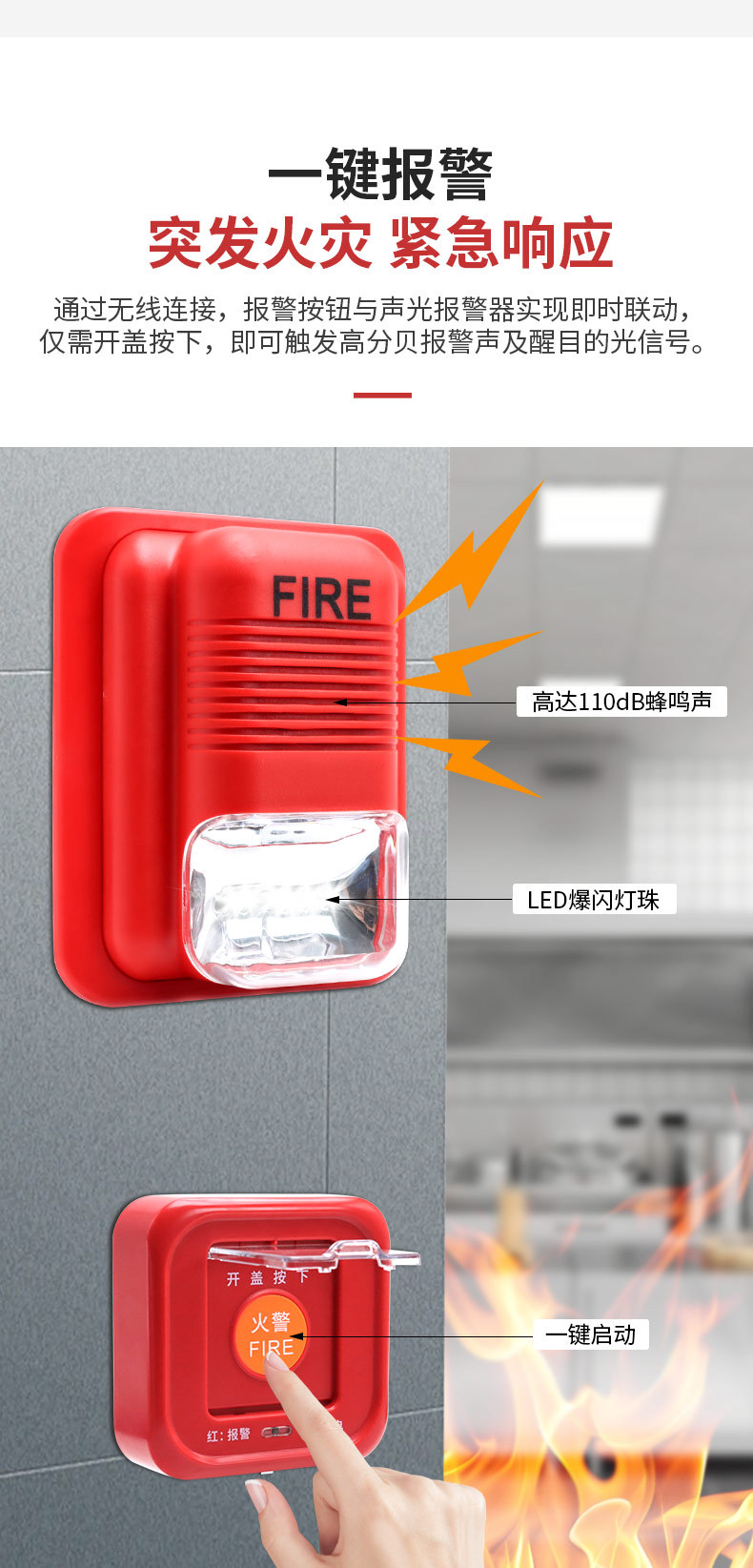 433 пожарная беспроводная сигнализация кнопка звуковой и световой сигнализации набор пожарной связи одним нажатием кнопки дистанционного управления голосом
