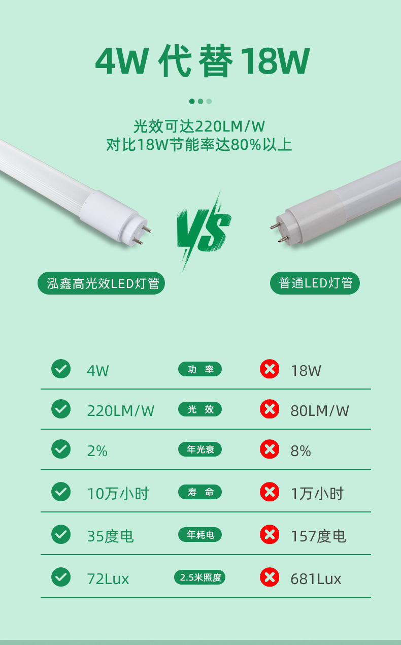 Hongxin Lighting t8led высокосветоэффективный световой трубки энергосберегающий люминесцентный свет 230lm4W вместо энергосберегающего преобразования 18W