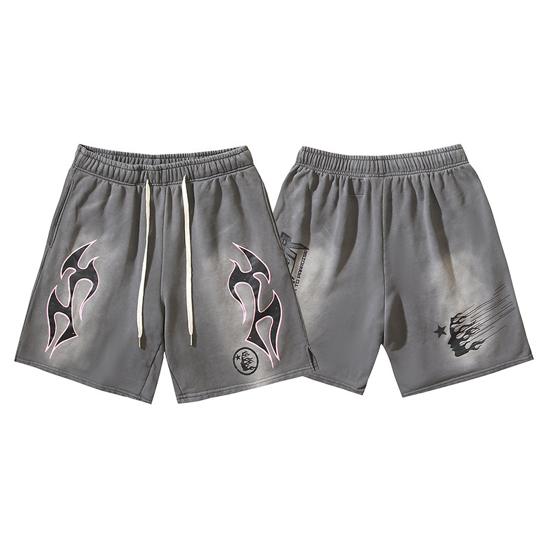 2024 Новый европейский и американский прилив бренд Hell Star укороченные брюки для мытья воды, чтобы сделать старые повседневные шорты