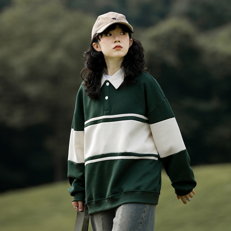 2024 осенний новый мужской и женский свитер с длинными рукавами пара весна и осень свободная рубашка поло с отворотами Верхняя одежда моды