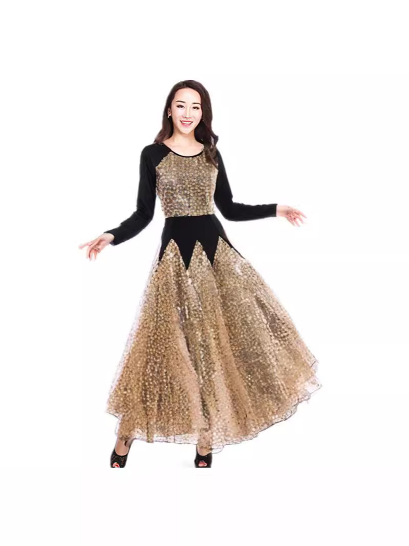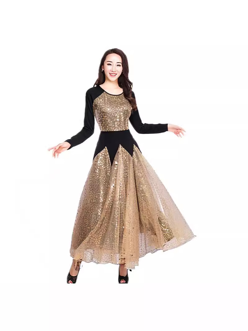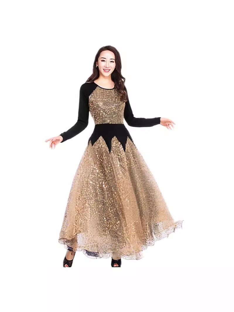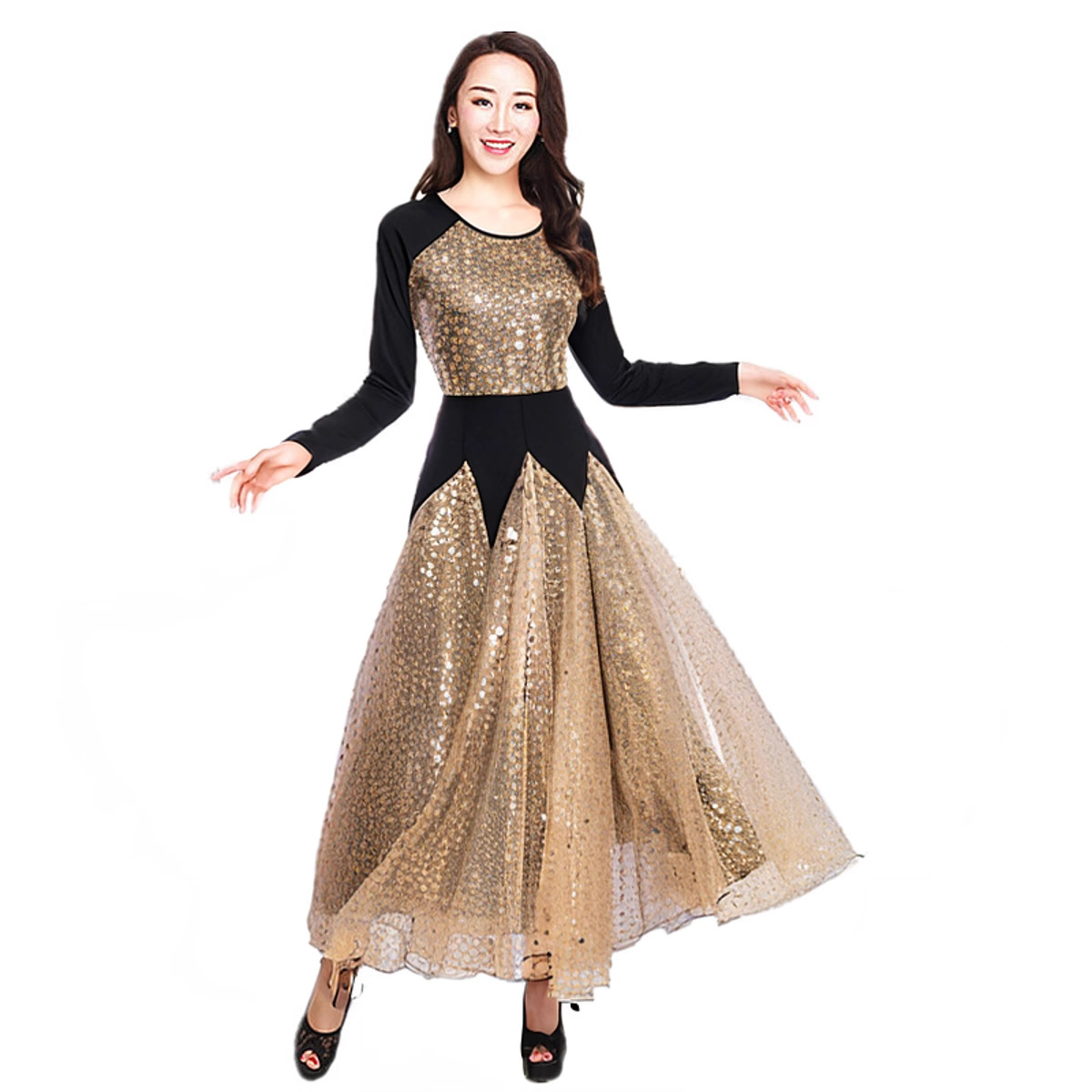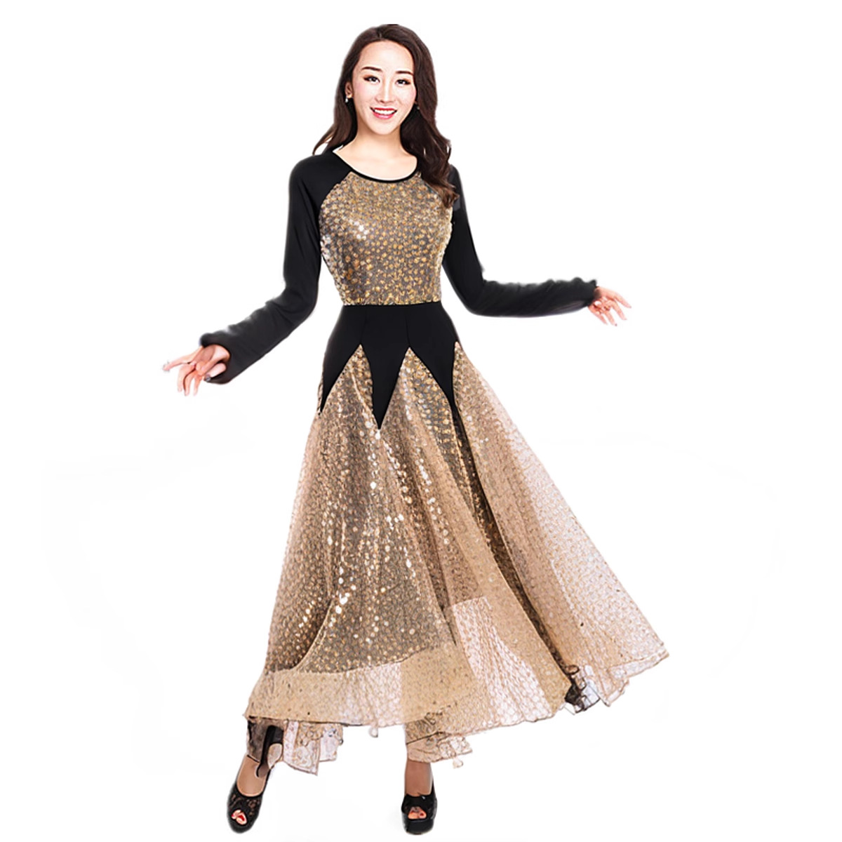 Новое платье современного танца платье платье большой качели платье с длинными рукавами