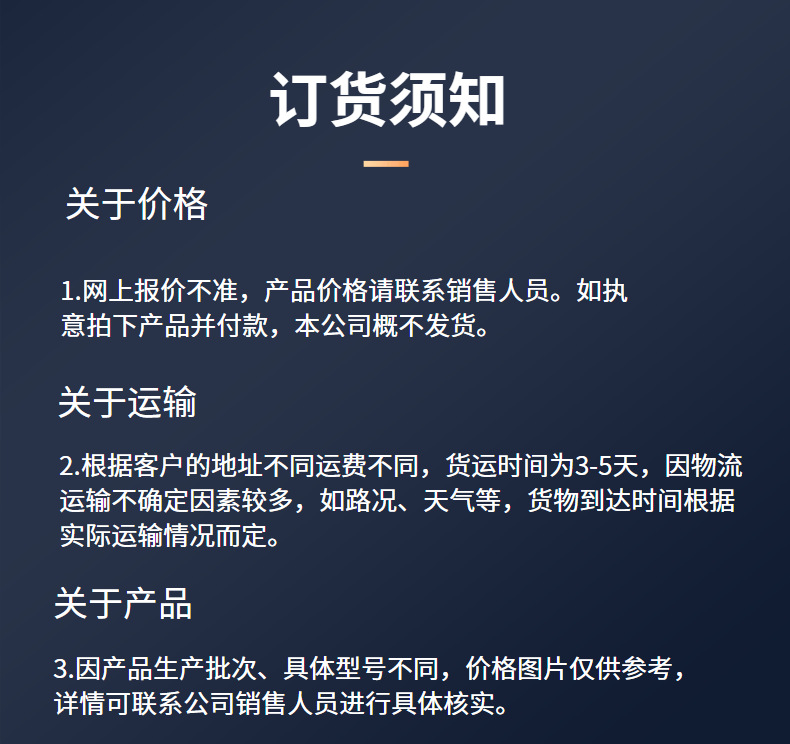 1.本店商品默认下单价格不包含税点,开票另加税点,详情请咨询旺旺客服呦! 2.页面中标价为参考标价,实际请以咨询报价为准! 3.因为产品重量不一,无法标出很清楚的运费,这里标的运费需要修改,请联系我们旺旺客服哦! |