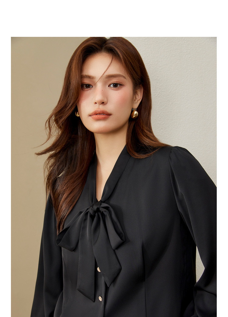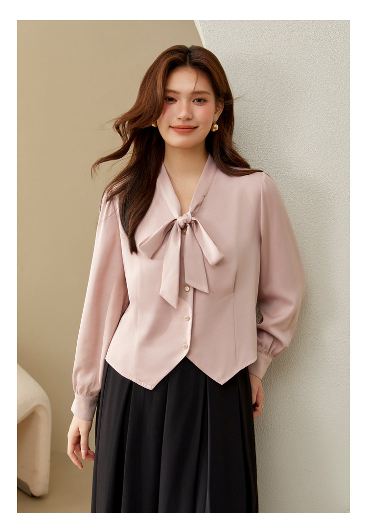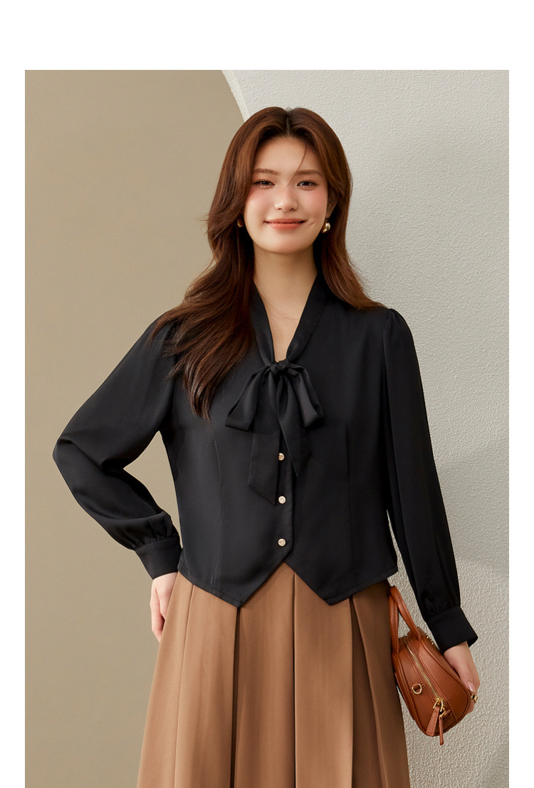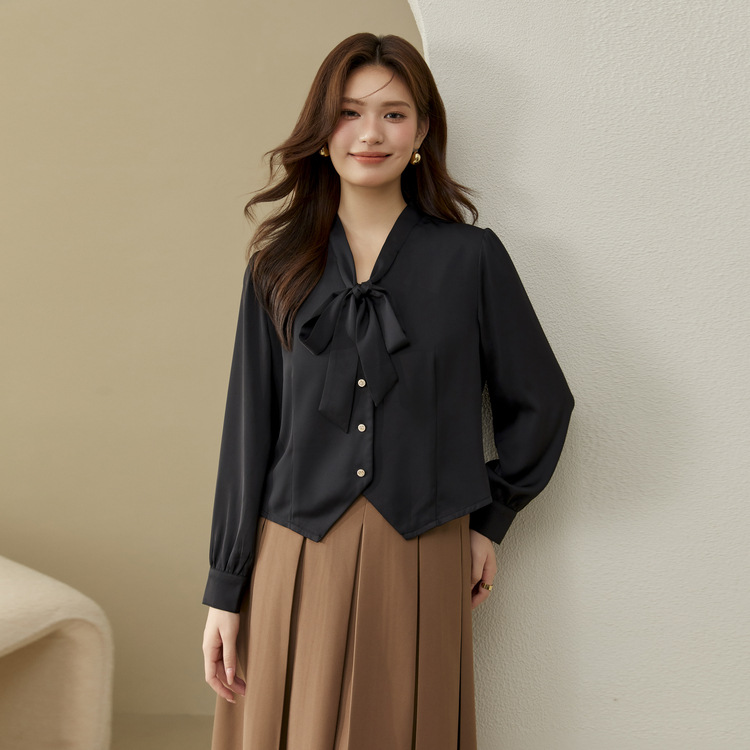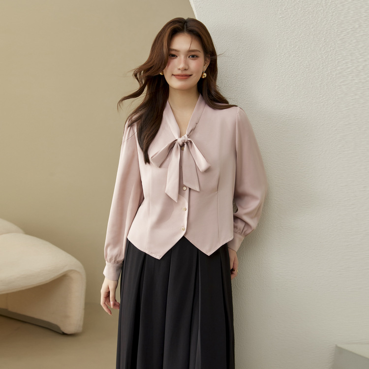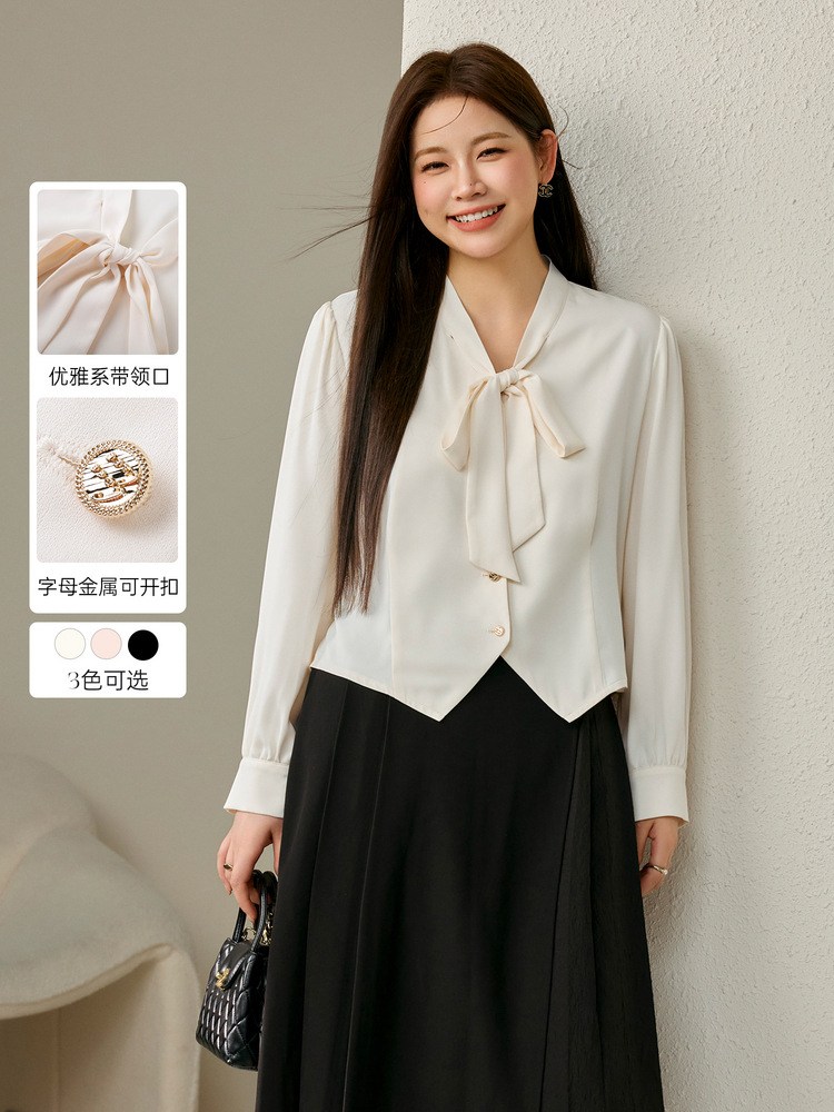 Блэк-шоу большой размер женской одежды французского стиля элегантный легкий стиль текстуры дикая шнуровая рубашка жирная mm2024 осенняя одежда новый