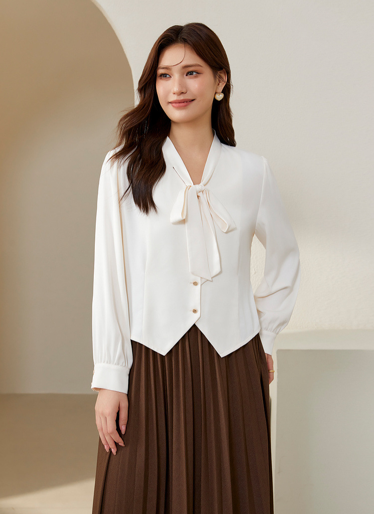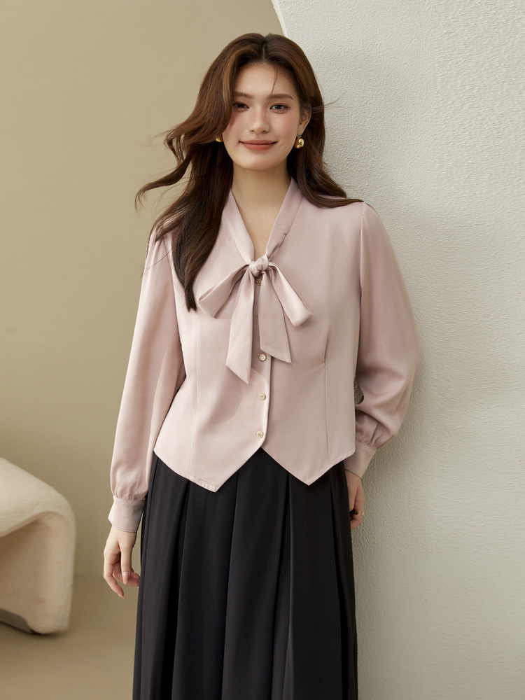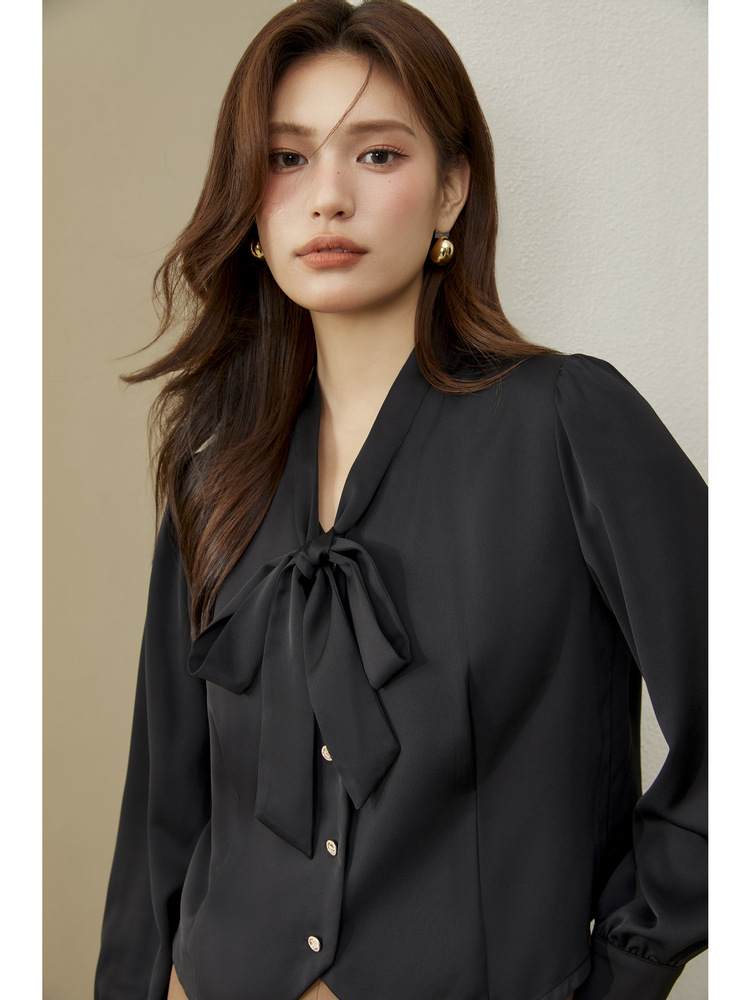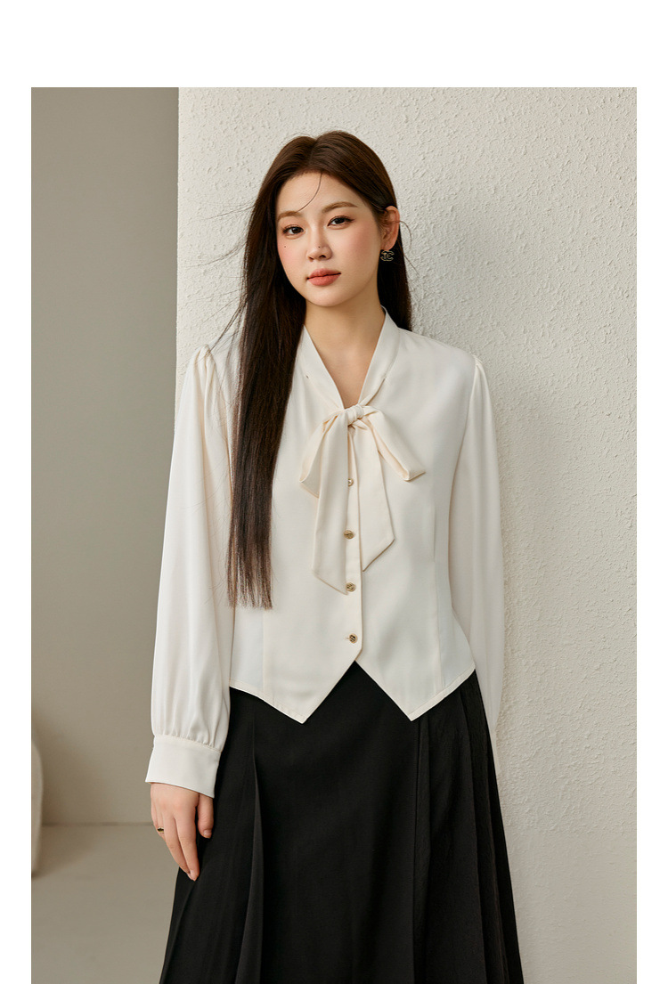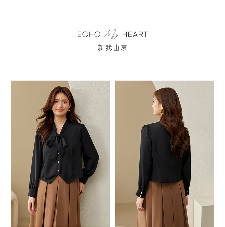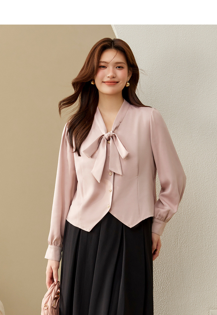 Блэк-шоу большой размер женской одежды французского стиля элегантный легкий стиль текстуры дикая шнуровая рубашка жирная mm2024 осенняя одежда новый