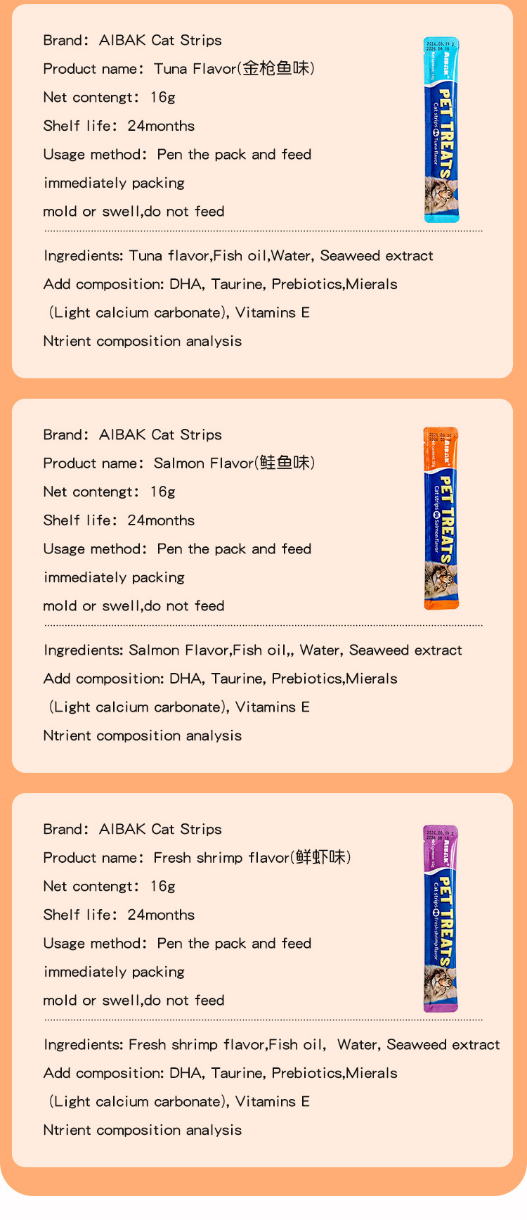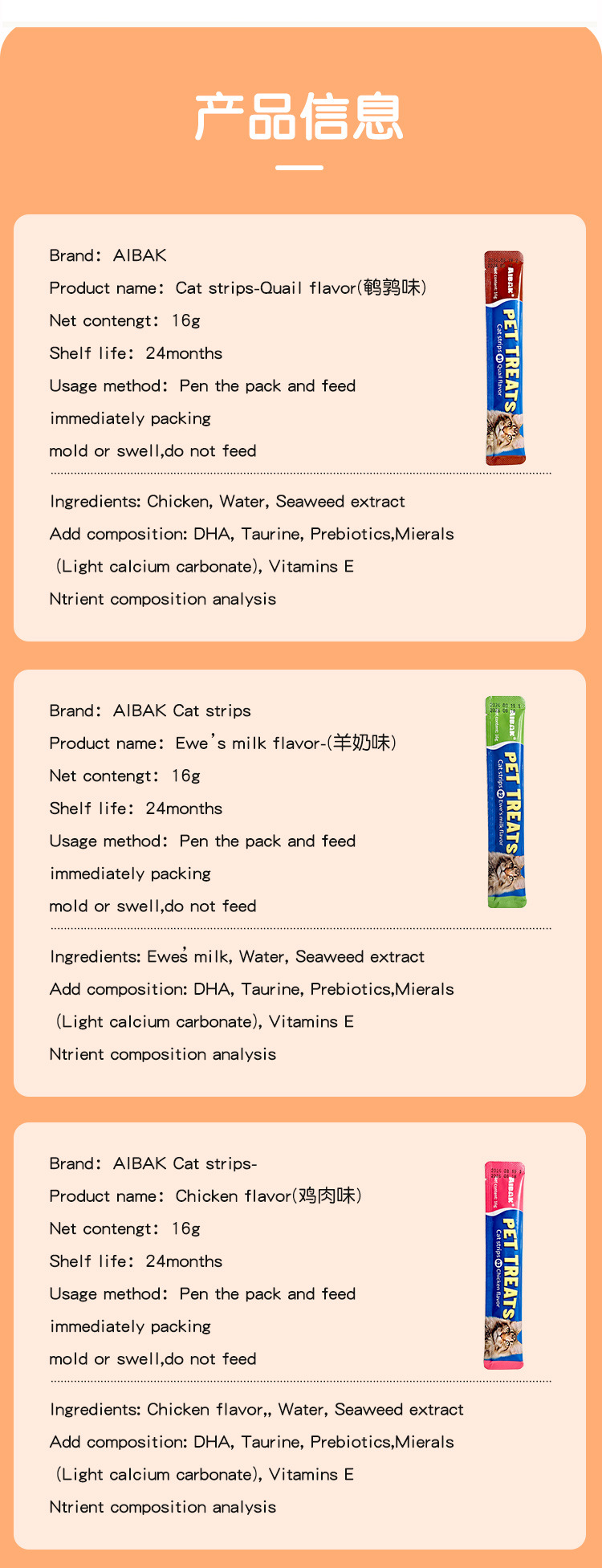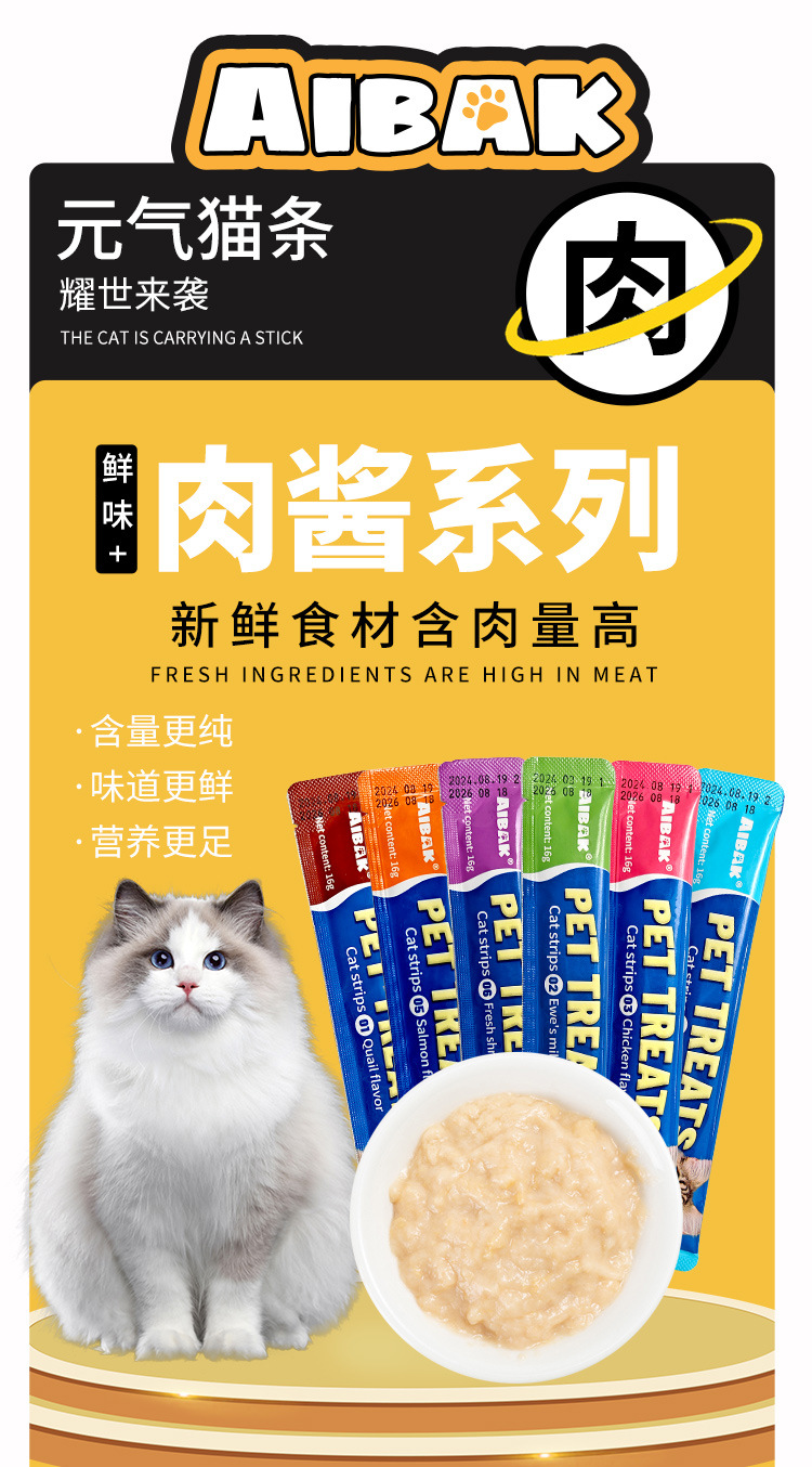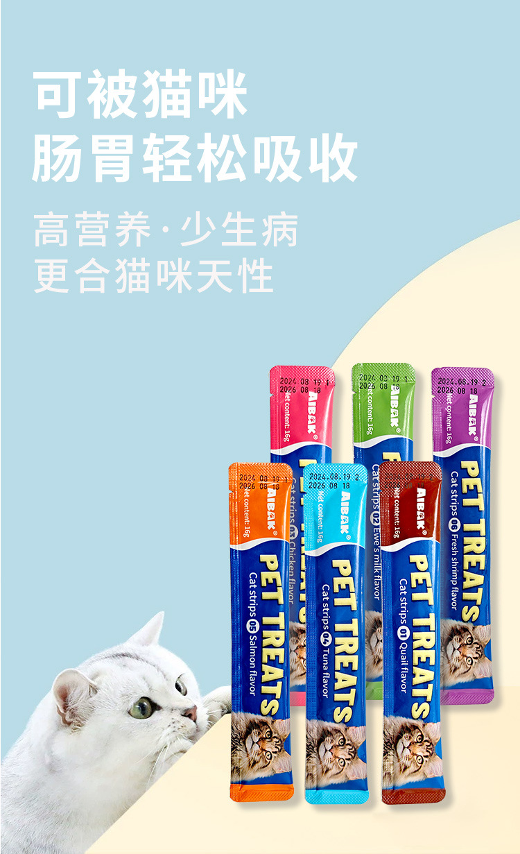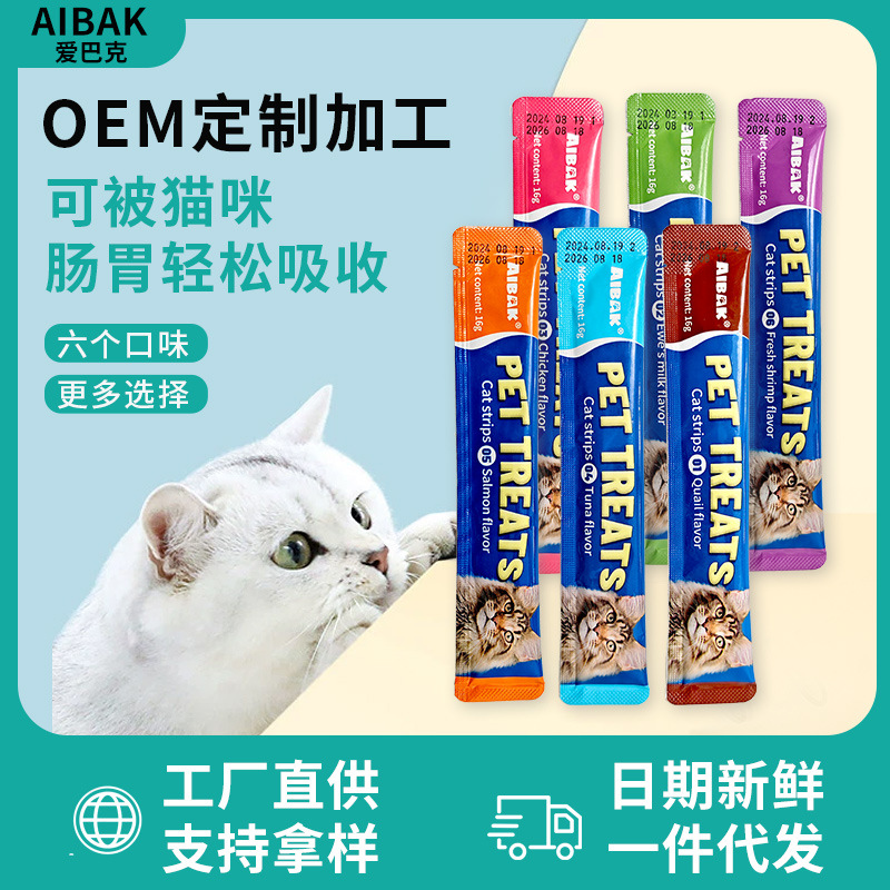 AIBAK английские полоски для кошек, оптовая продажа, целая коробка, питательные полоски, корм для взрослых кошек и котят, влажный корм, упаковка, трансграничные закуски для домашних животных