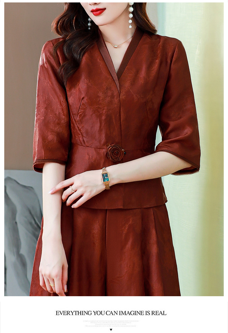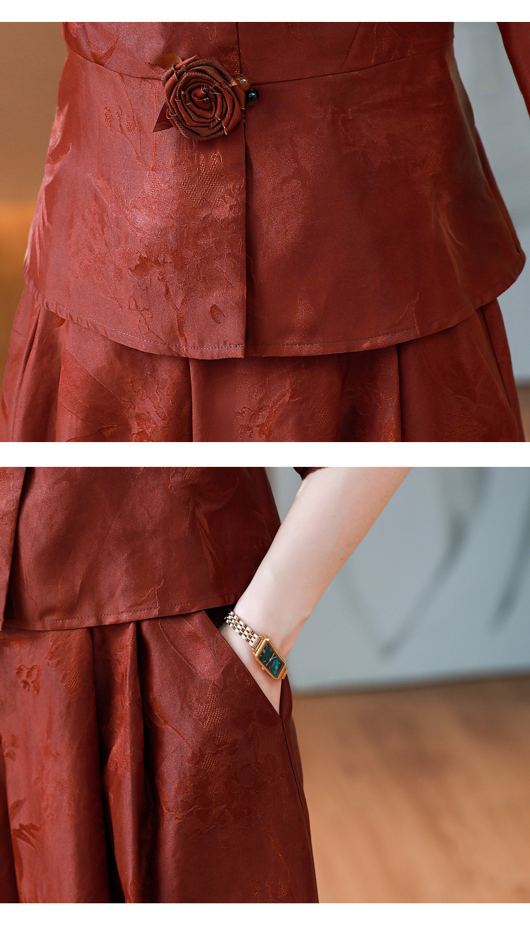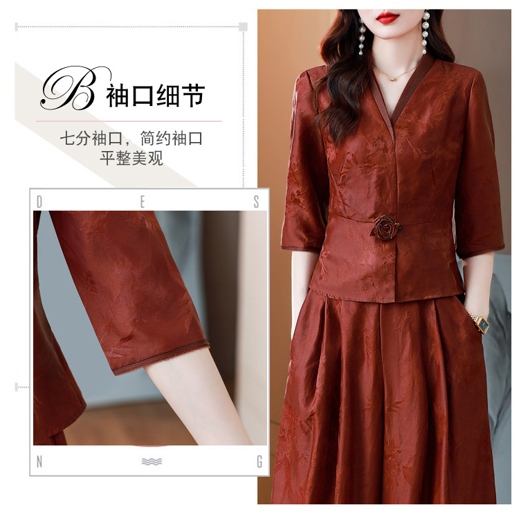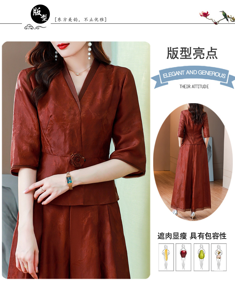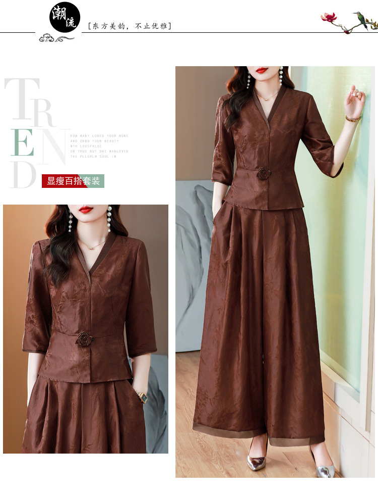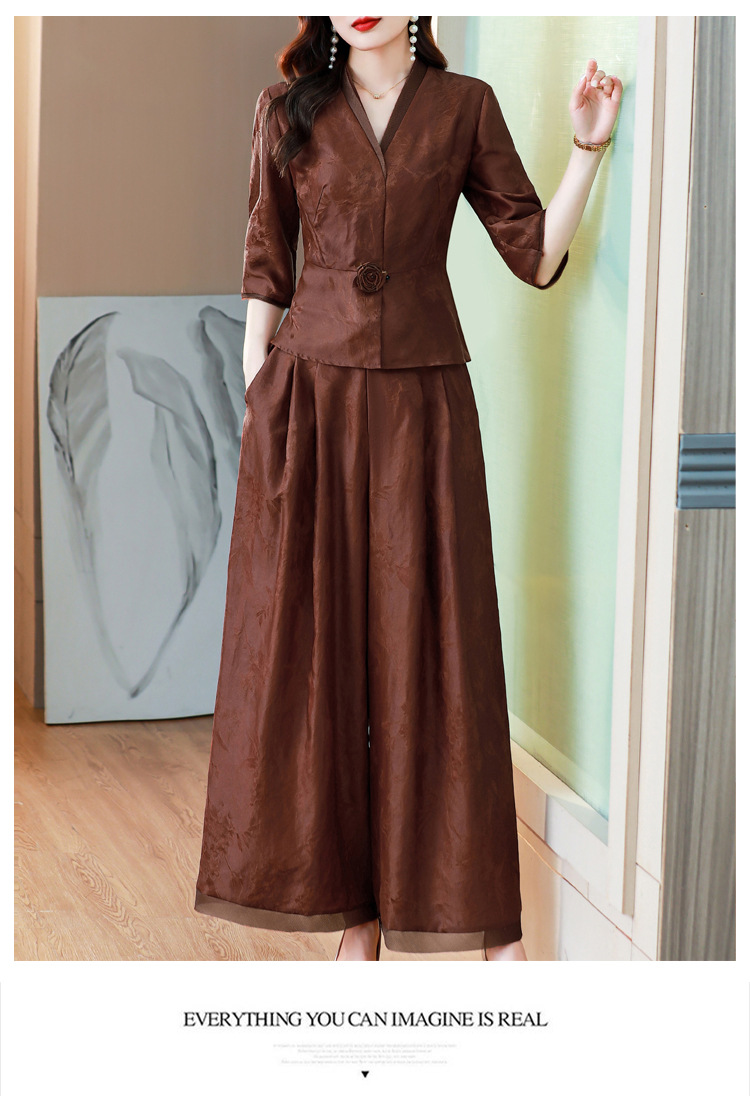 Новый китайский ретро-костюм 2024 осень-зима новая талия сшитый жаккардовый топ широкие брюки мама наряд из двух частей