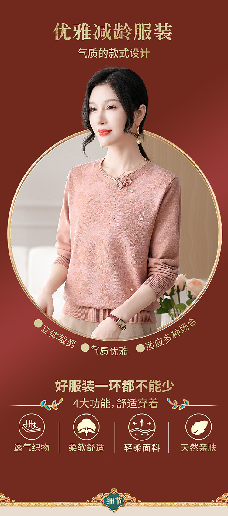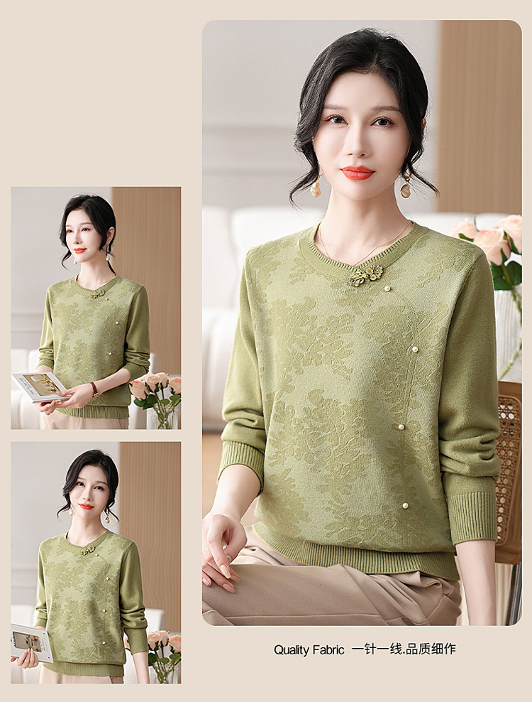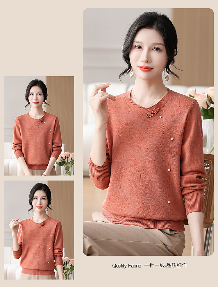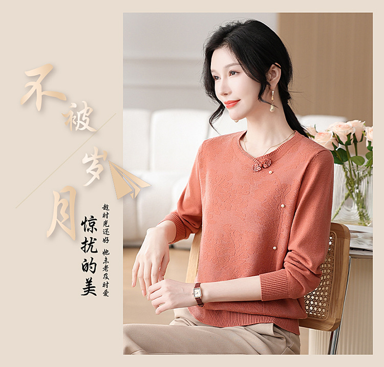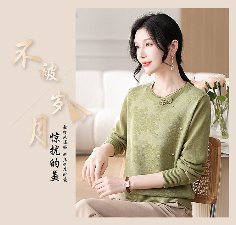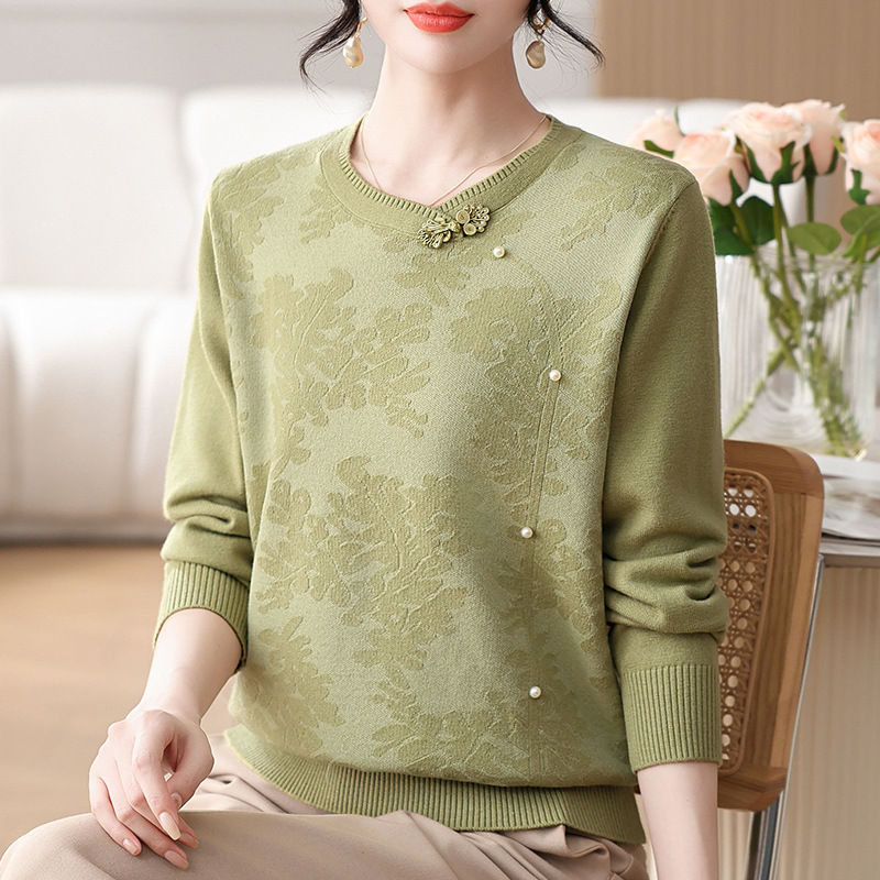 Новая винтажная трикотажная блузка в китайском стиле для женщин среднего и старшего возраста, осенняя коллекция 2025 года, стильный топ, базовая рубашка.