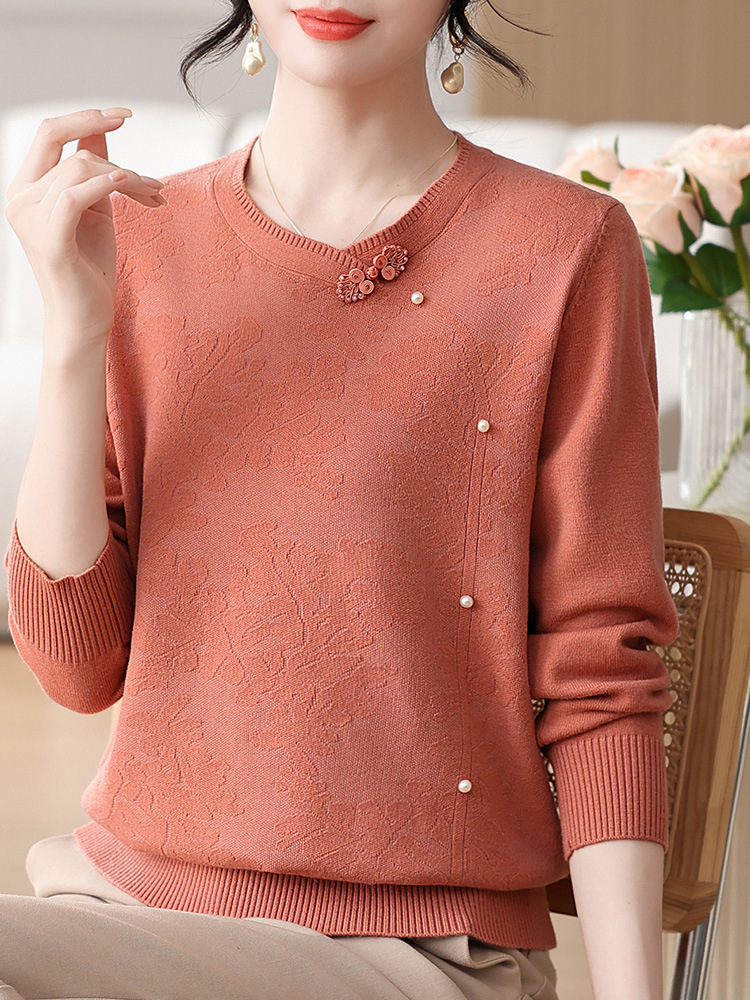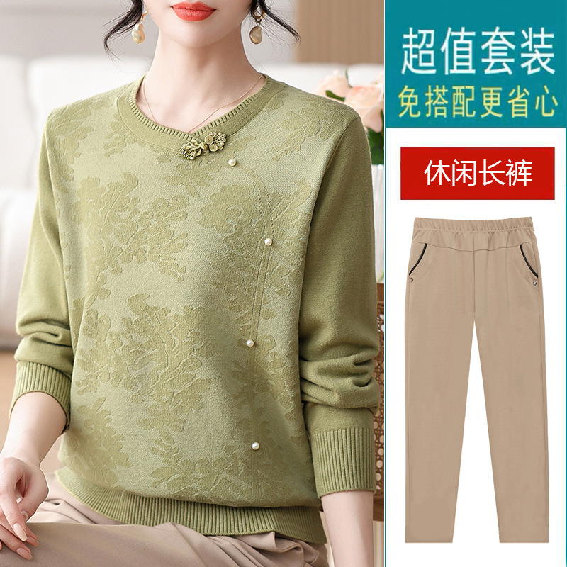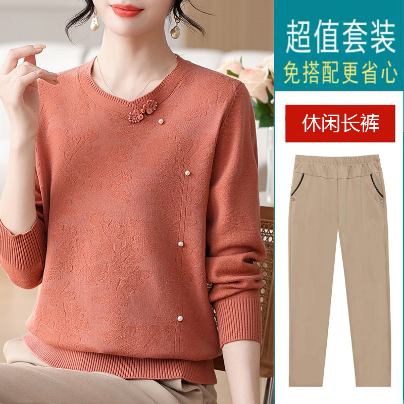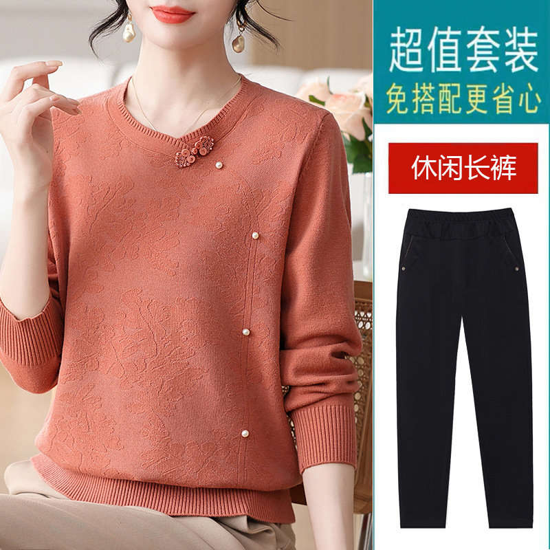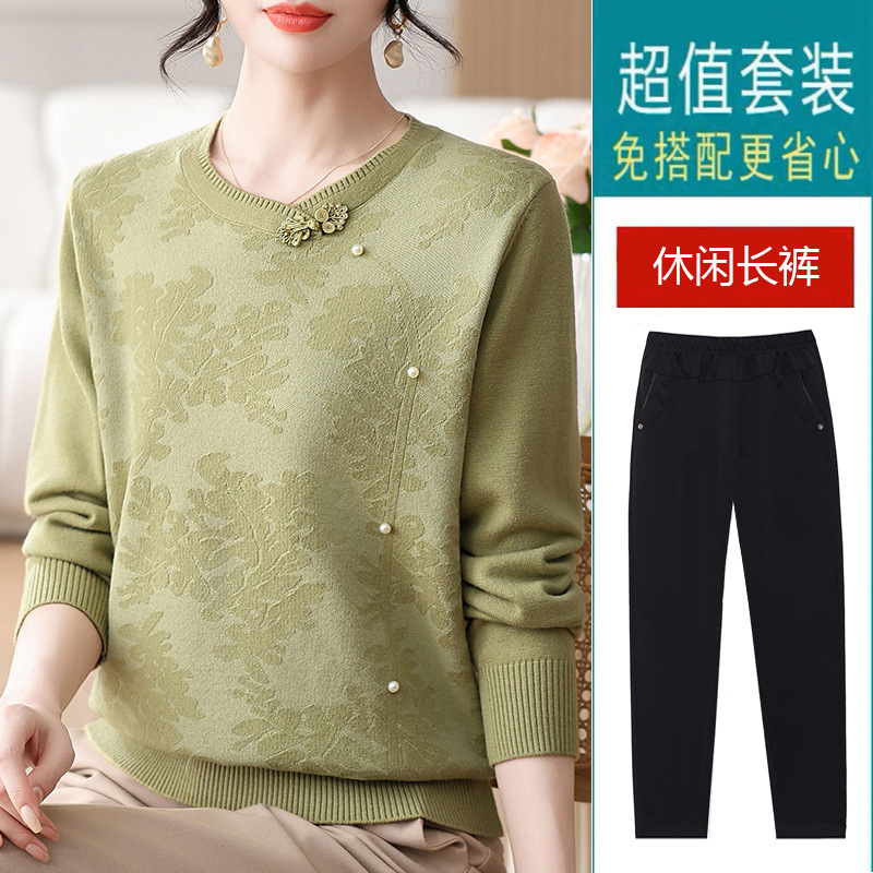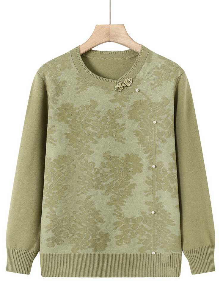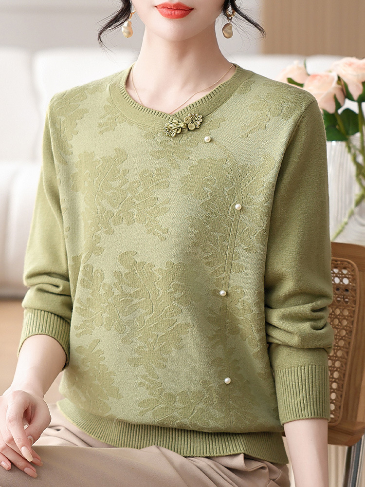 Новая винтажная трикотажная блузка в китайском стиле для женщин среднего и старшего возраста, осенняя коллекция 2025 года, стильный топ, базовая рубашка.