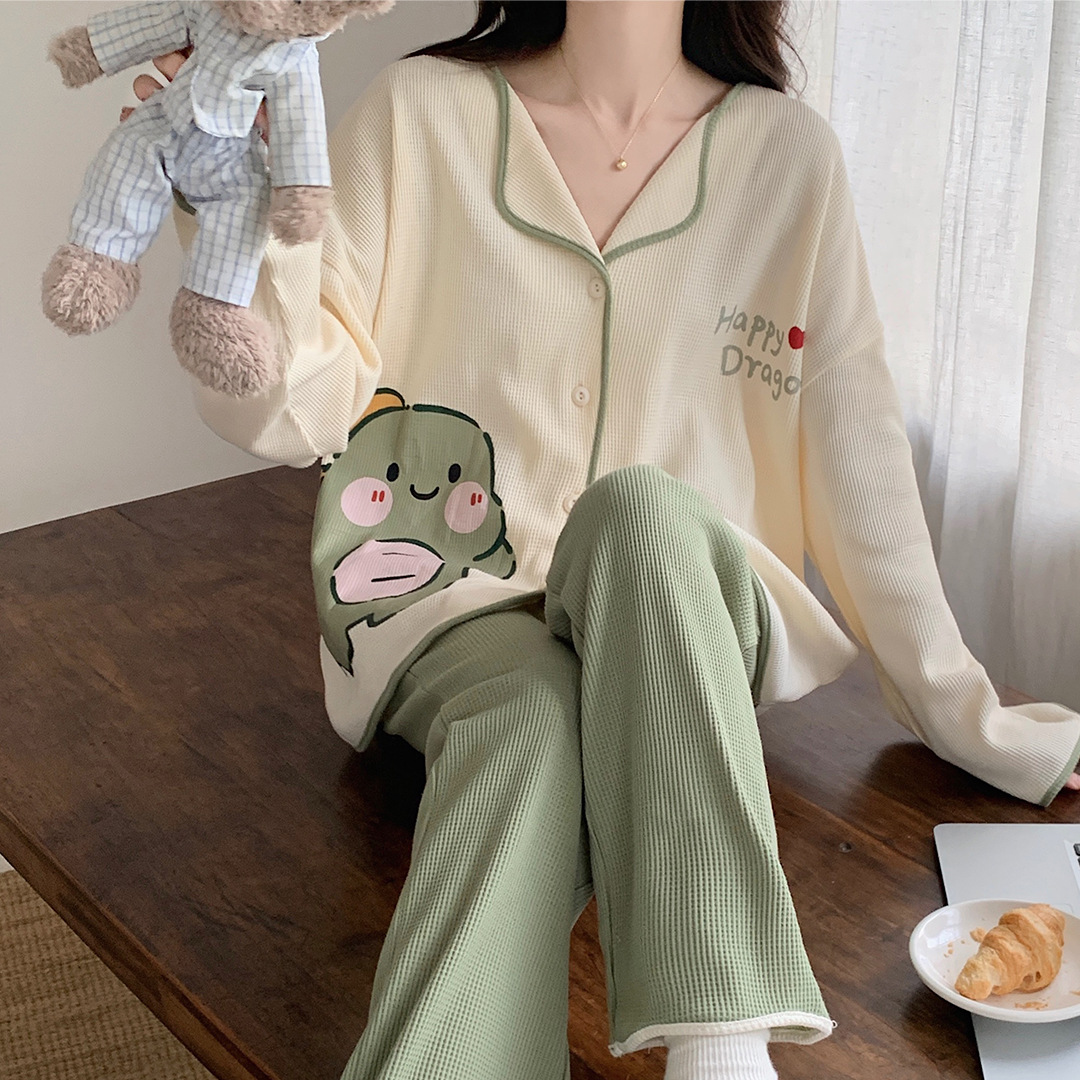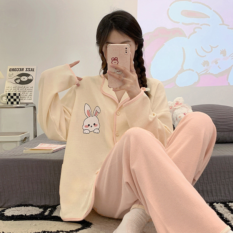 Новый пижама женский костюм осенний кардиган корейские брюки с длинными рукавами милые дамы могут носить домашнюю одежду весной и осенью