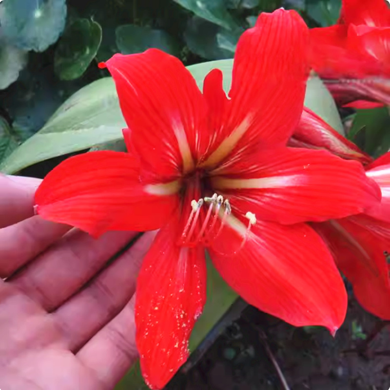Местное луковиое красное луковиое растение хорошо разводит праздничные растения Цветущий двор балкон зеленая земля Чжу Фуцзянь красный лев