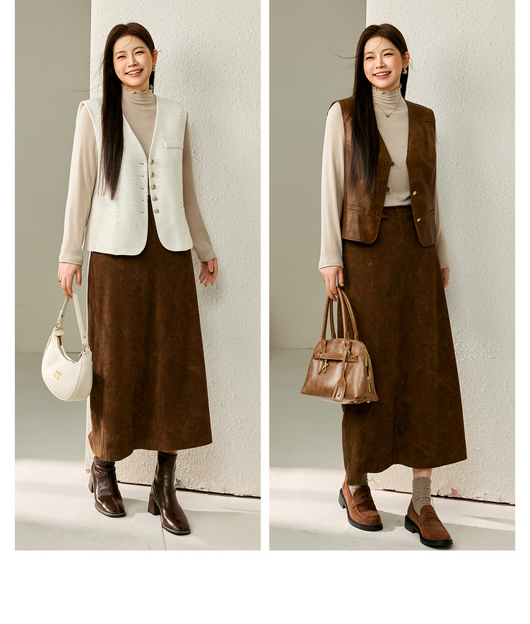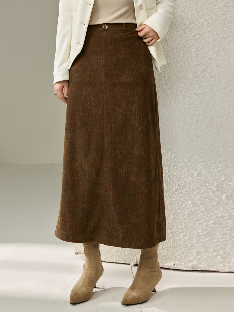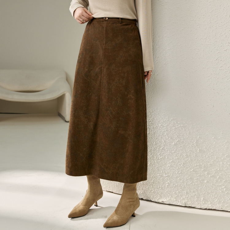 Полноцветное шоу большой размер женской одежды ретро современный стиль с открытым вельветом тонкий вельвет юбка толстый mm2024 осень новый стиль