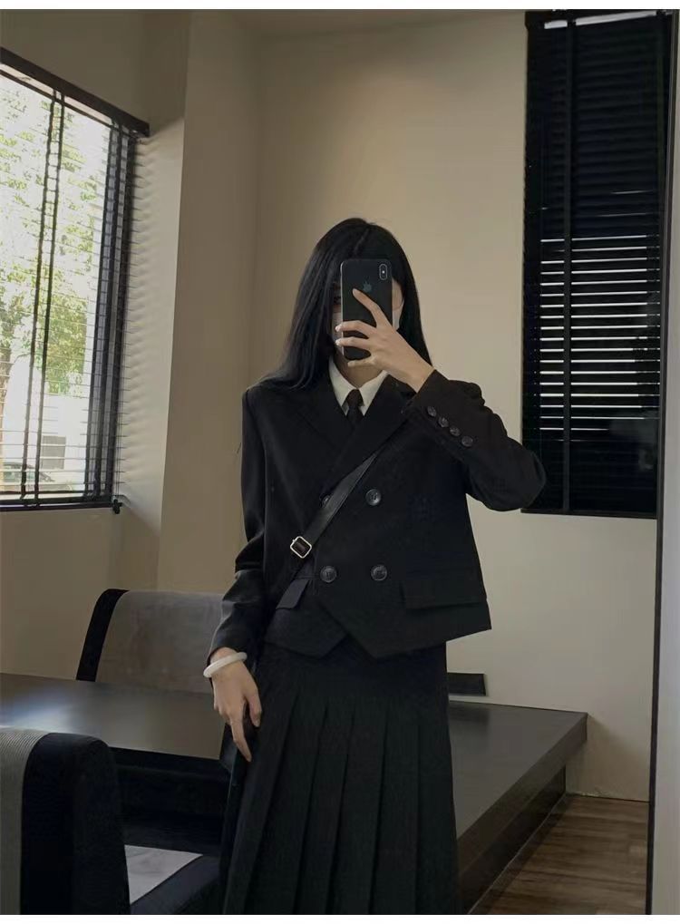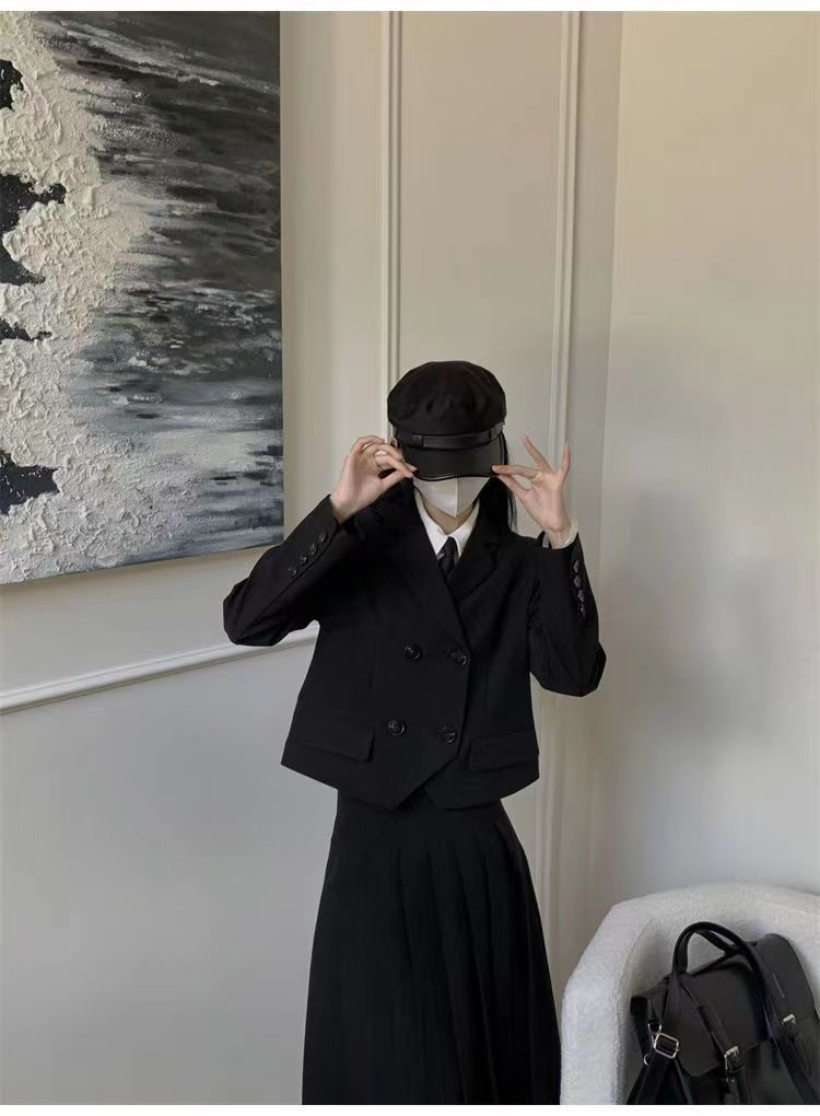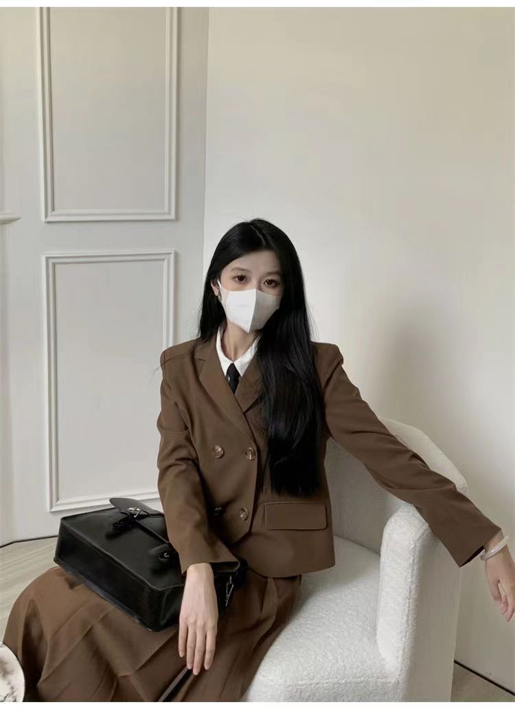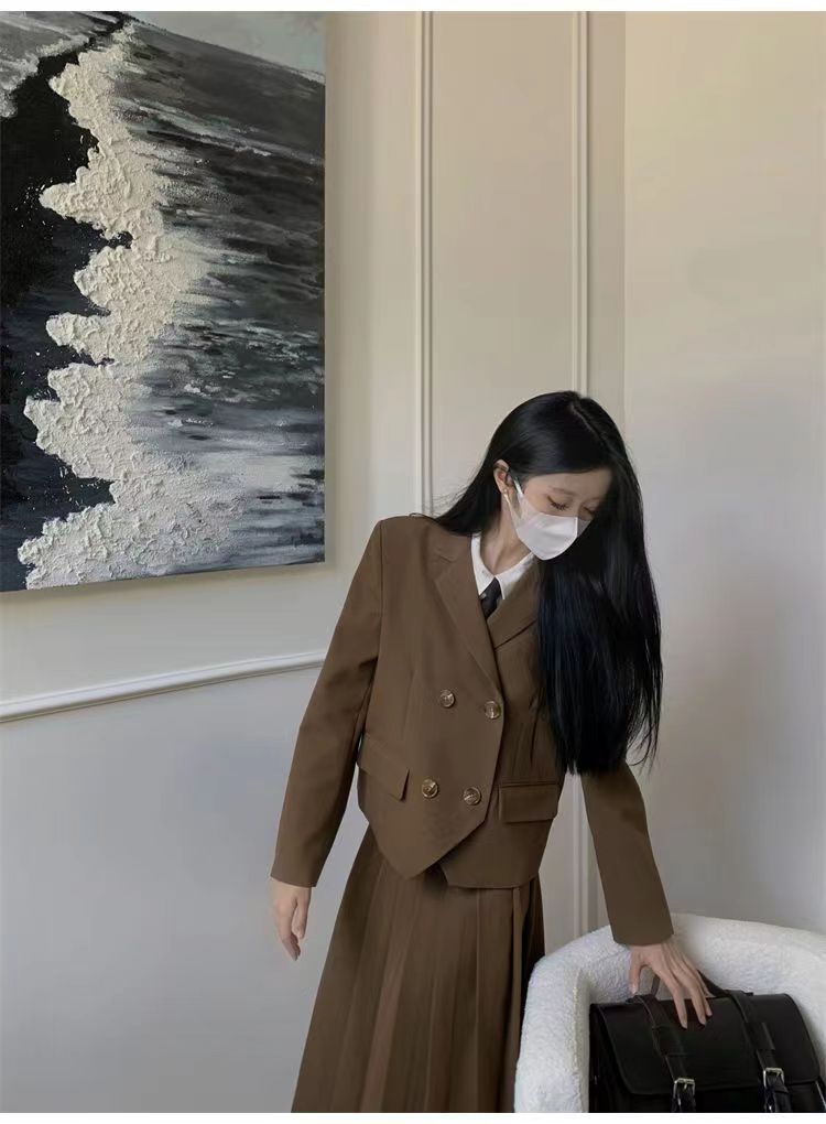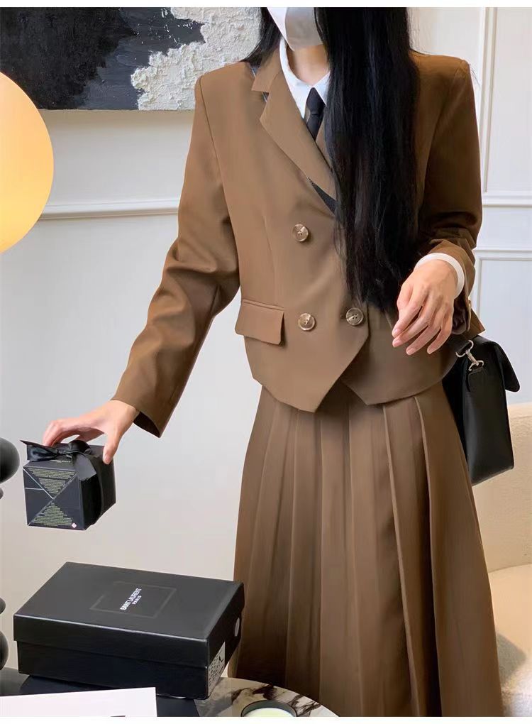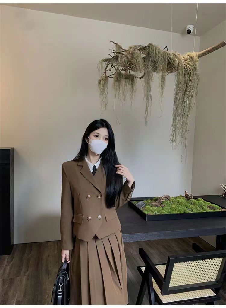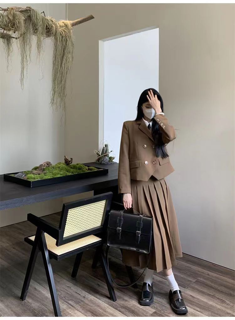2025 весенне-осенний женский костюм в стиле ретро Pure Desire, костюм в студенческом стиле, самая корейская, подходит для одного, однотонный верхний костюм для женщин