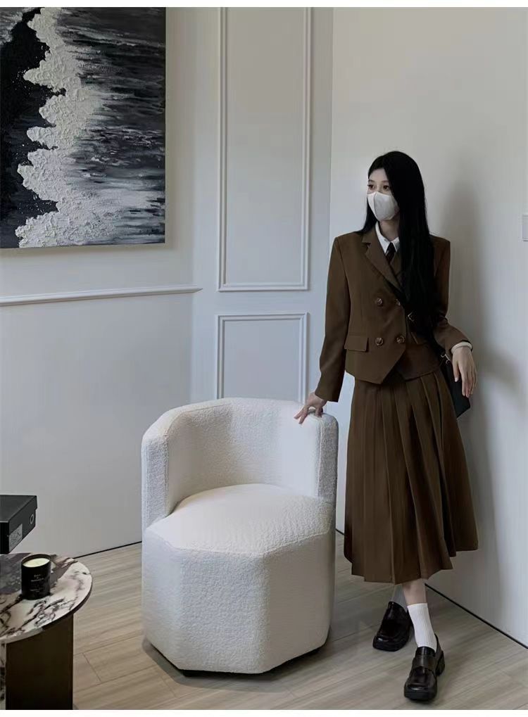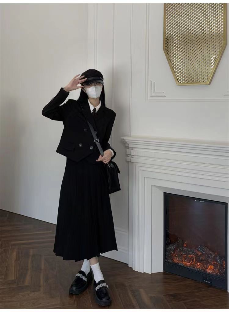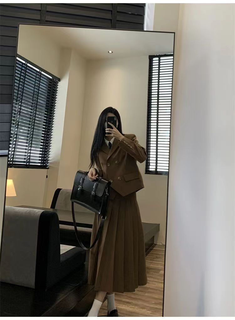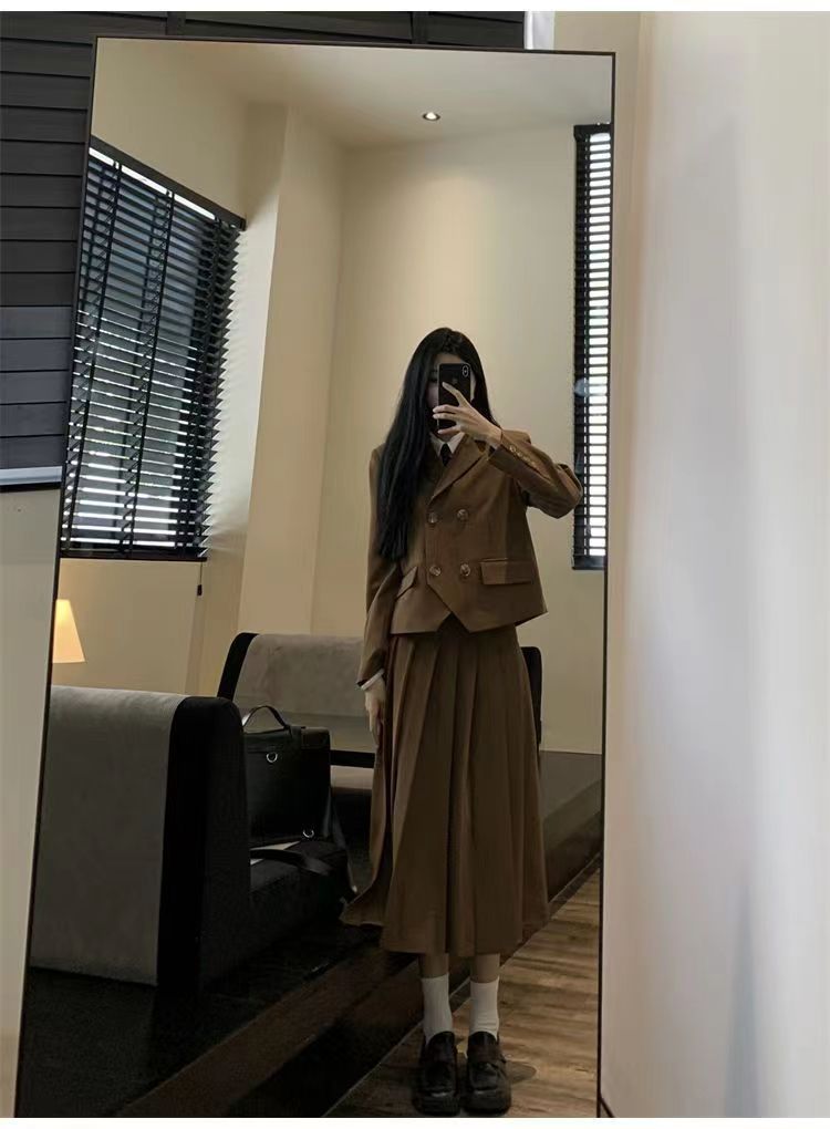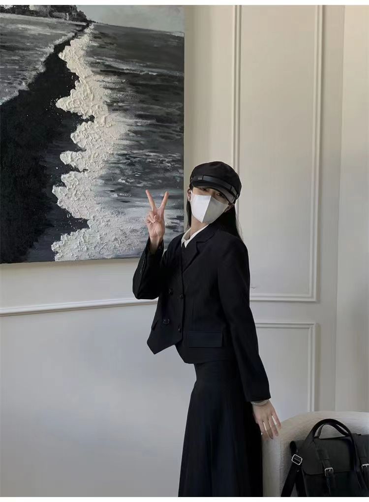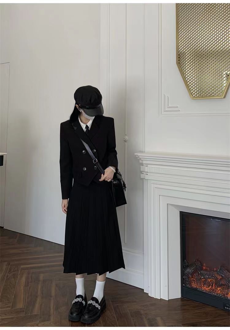 2025 весенне-осенний женский костюм в стиле ретро Pure Desire, костюм в студенческом стиле, самая корейская, подходит для одного, однотонный верхний костюм для женщин