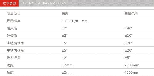 15.底盘参数测量系统:可准确测量车身底盘参数,轮胎直径。方便客户进一步判断汽车底盘情况及轮胎磨损情况。