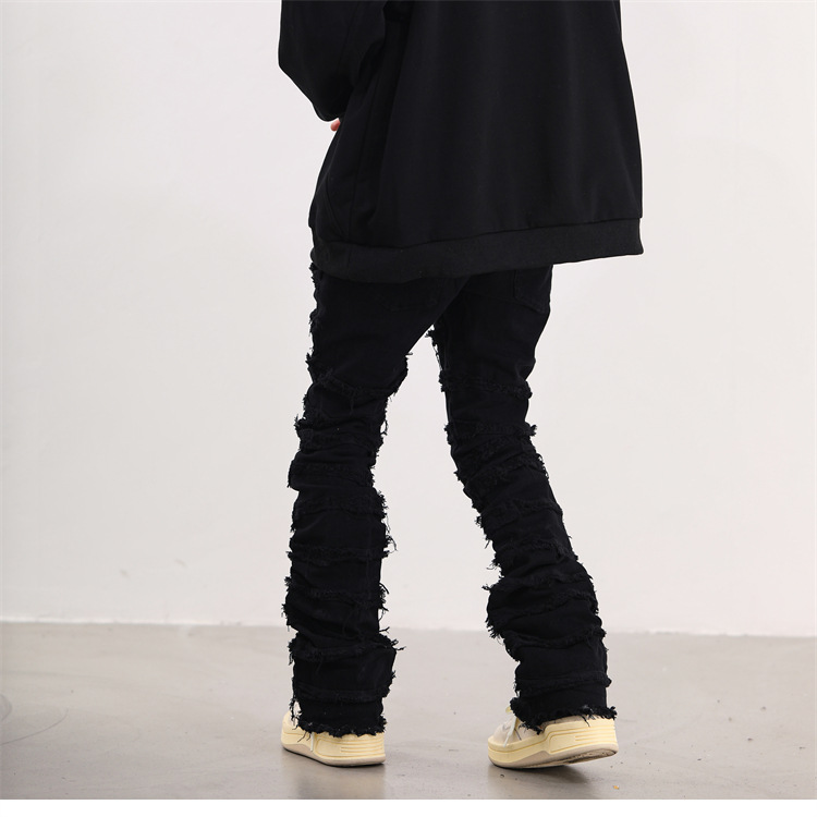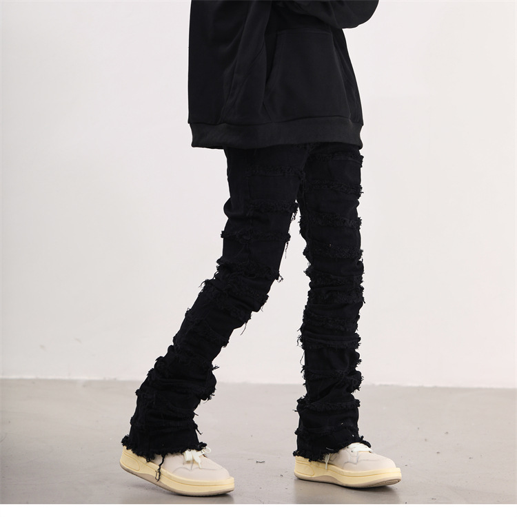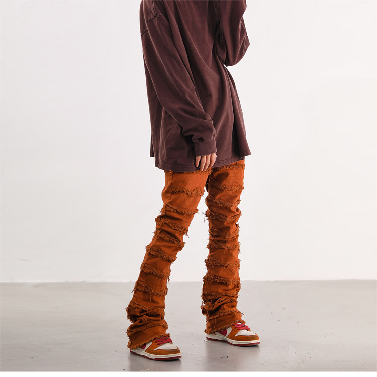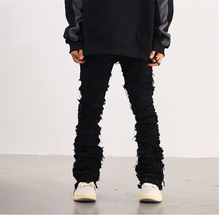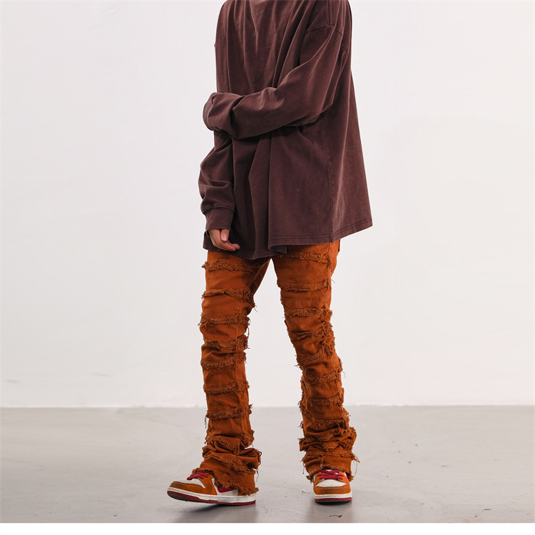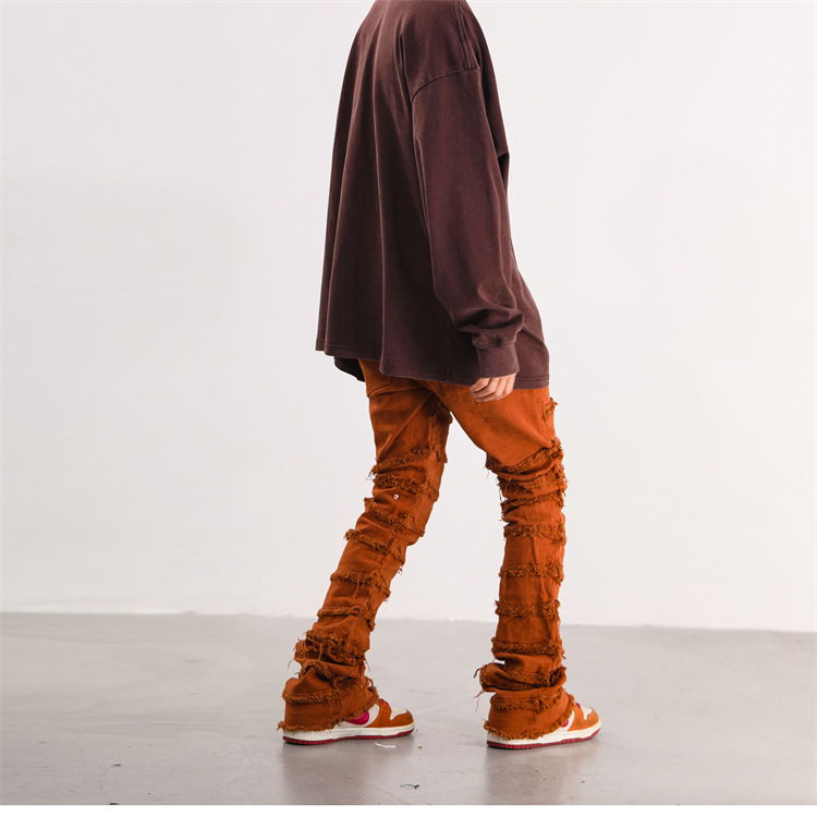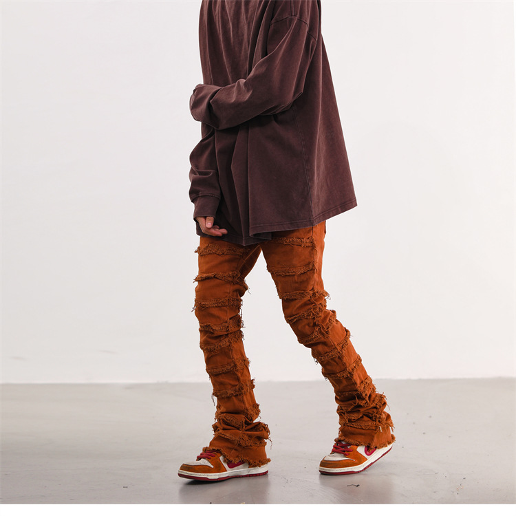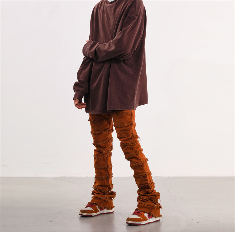 2023 американская эрозия разрушает волосатые джинсы высокой улицы мужские джинсы хип-хоп бренд vintage показывает тонкие длинные брюки