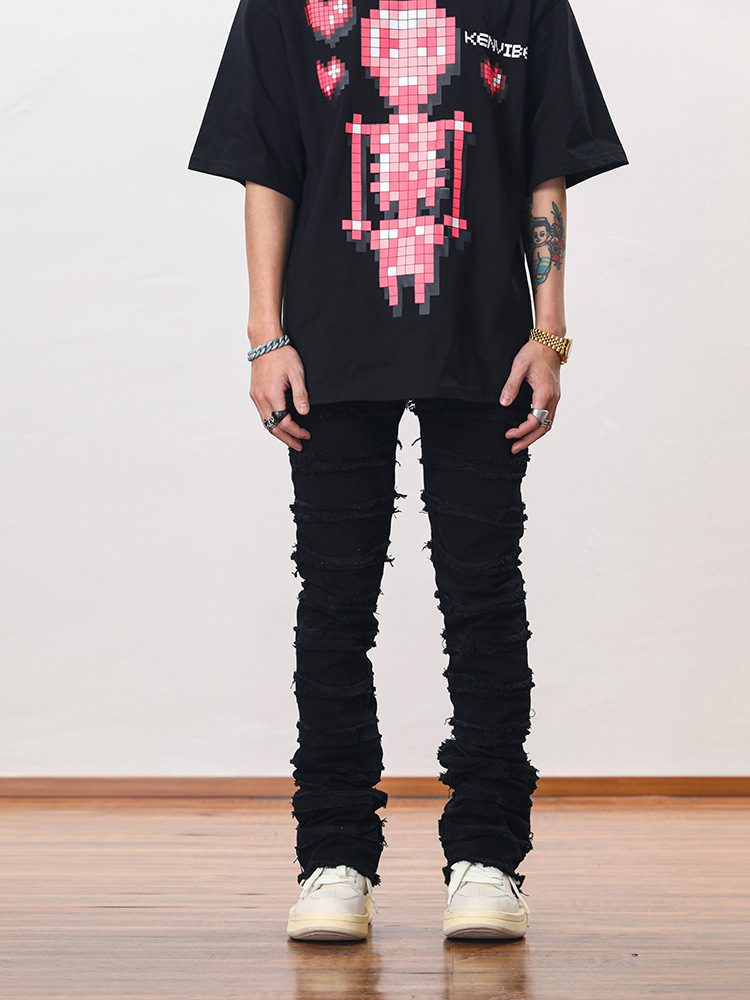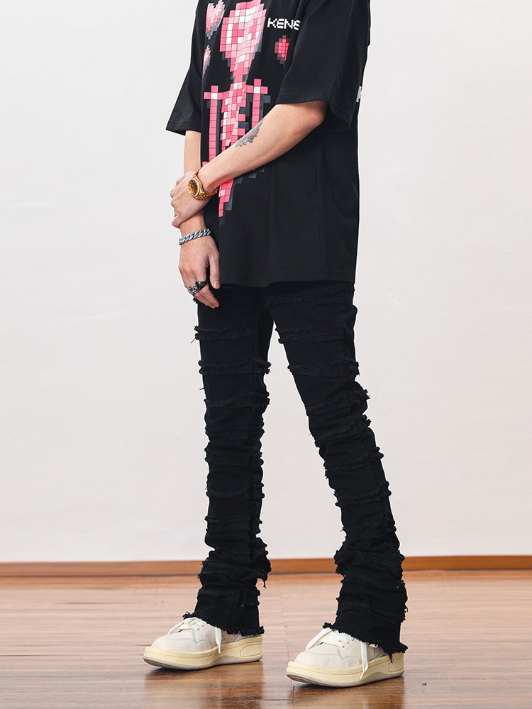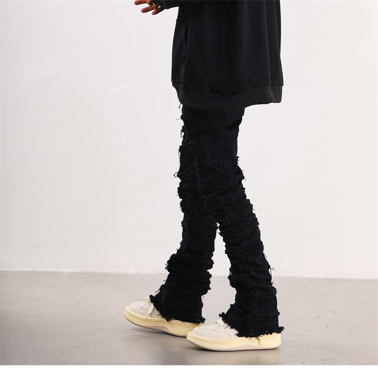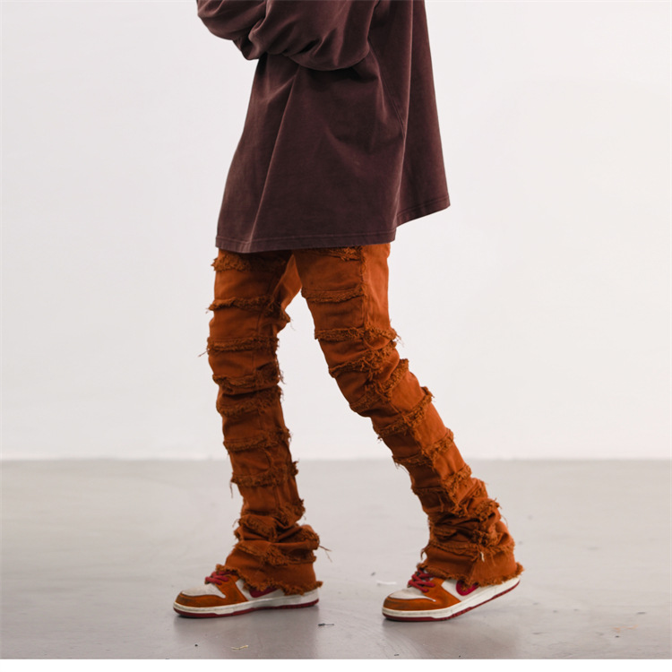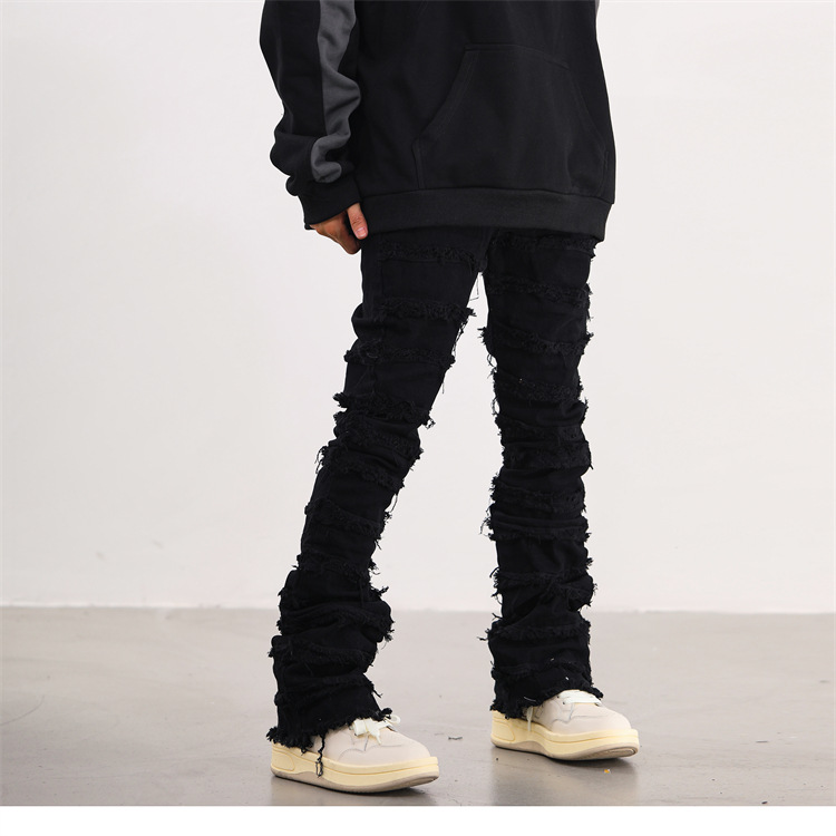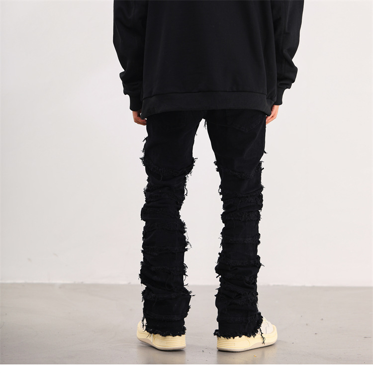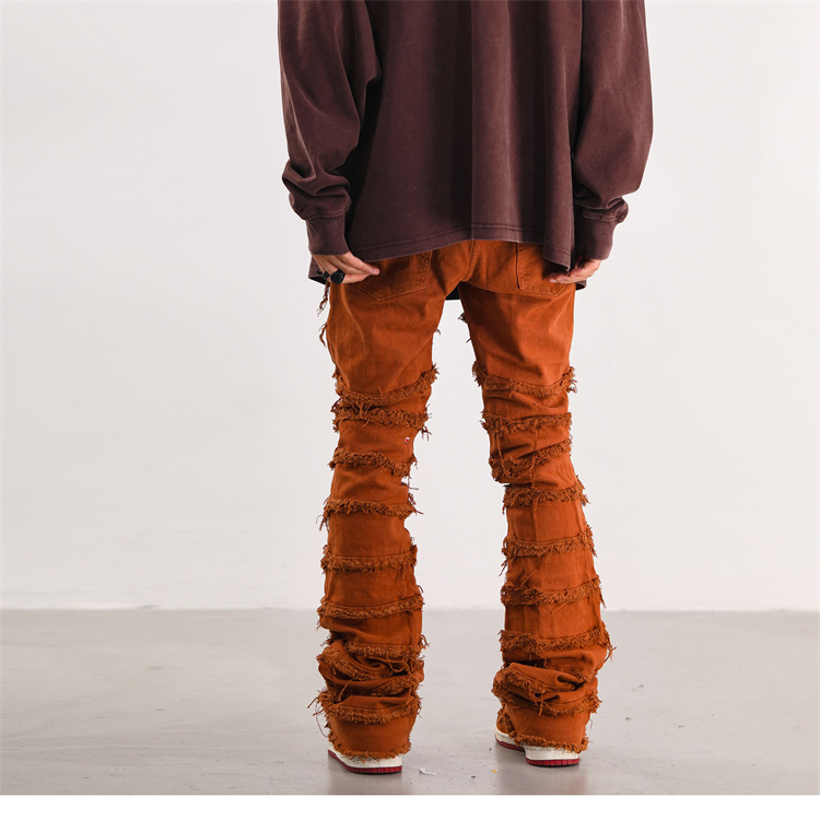 2023 американская эрозия разрушает волосатые джинсы высокой улицы мужские джинсы хип-хоп бренд vintage показывает тонкие длинные брюки
