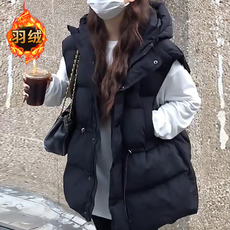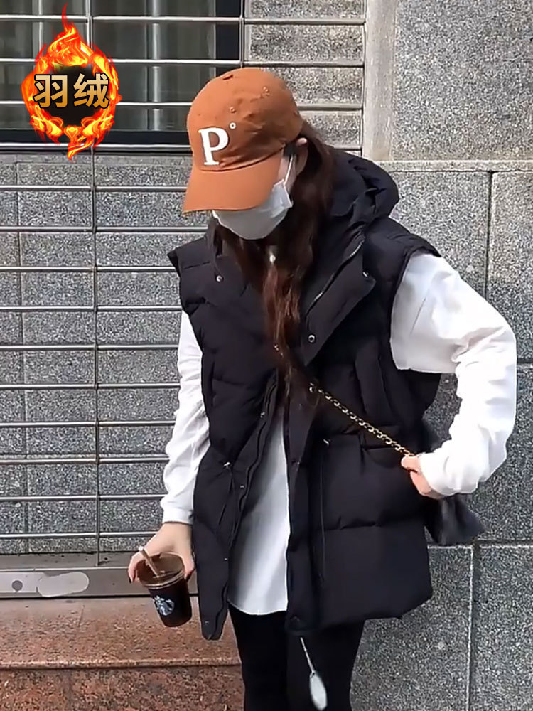 Женский жилет из натурального пуха, с капюшоном, верхняя одежда, новая модель 2025 года, белая пуховая куртка, стиль интернет-знаменитостей, европейские товары.