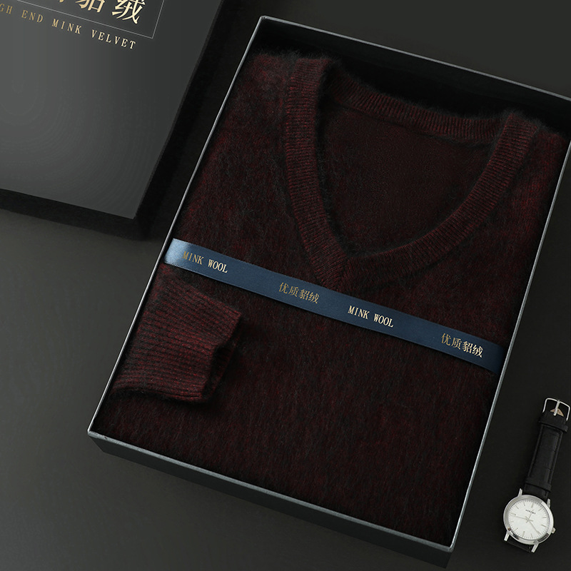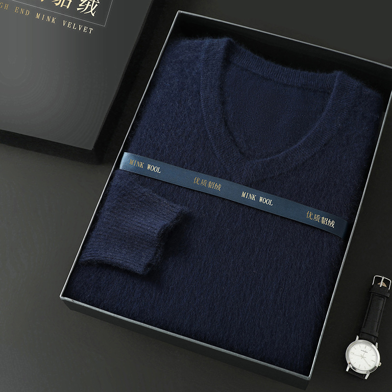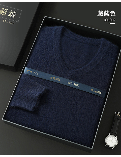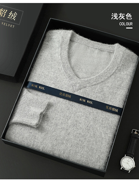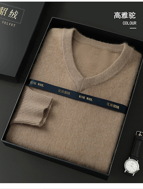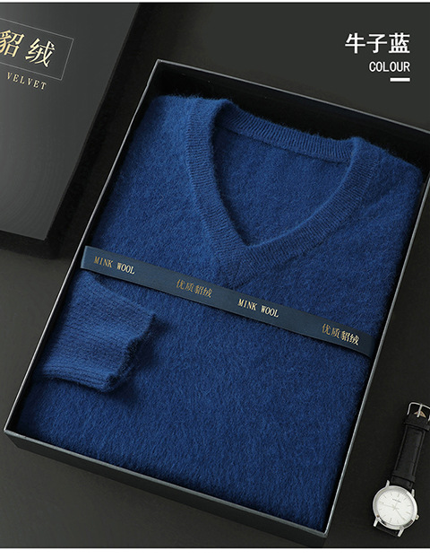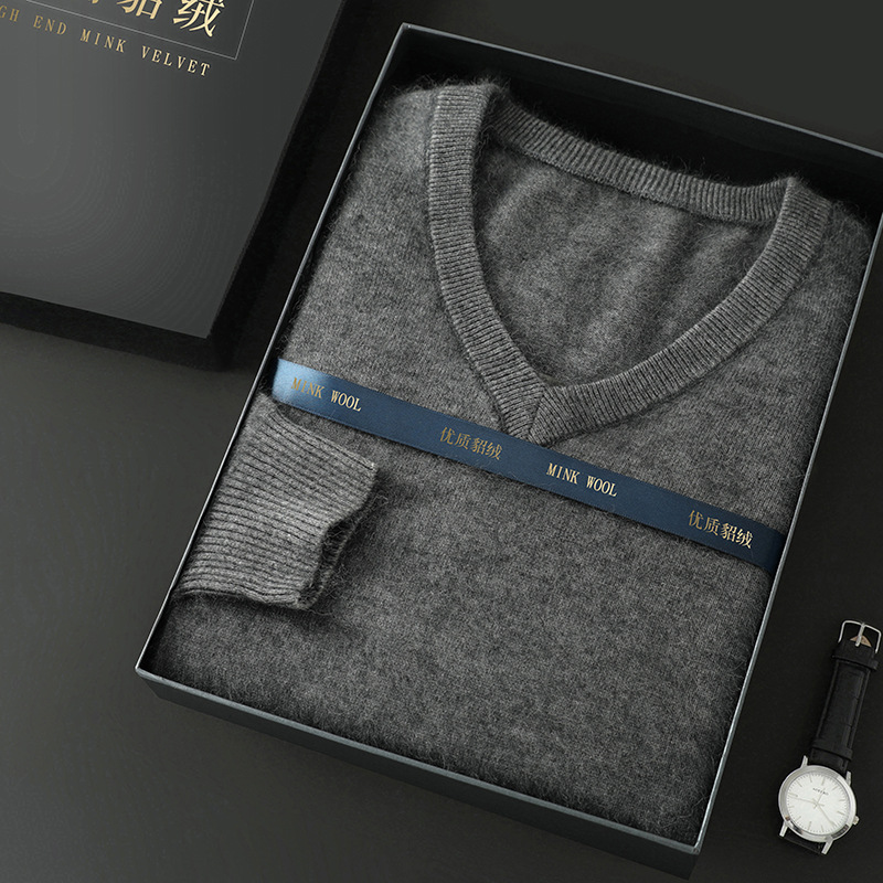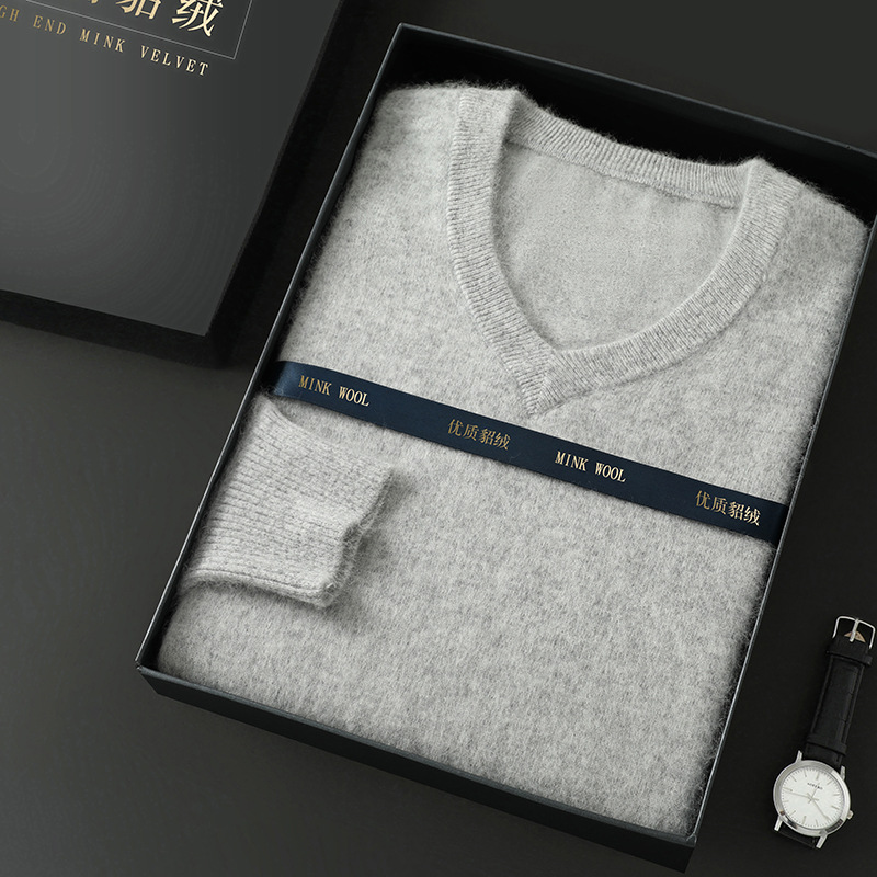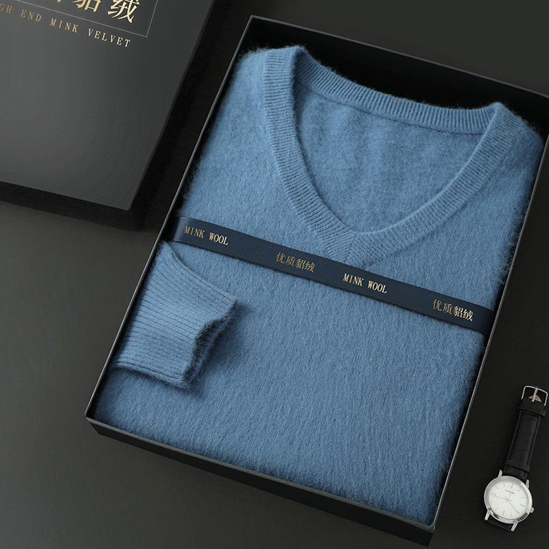 Свитер из искусственной норки, мужской тонкий вязаный свитер с v-образным вырезом, осенне-зимний деловой повседневный теплый однотонный свитер с внутренним слоем, трибутомия