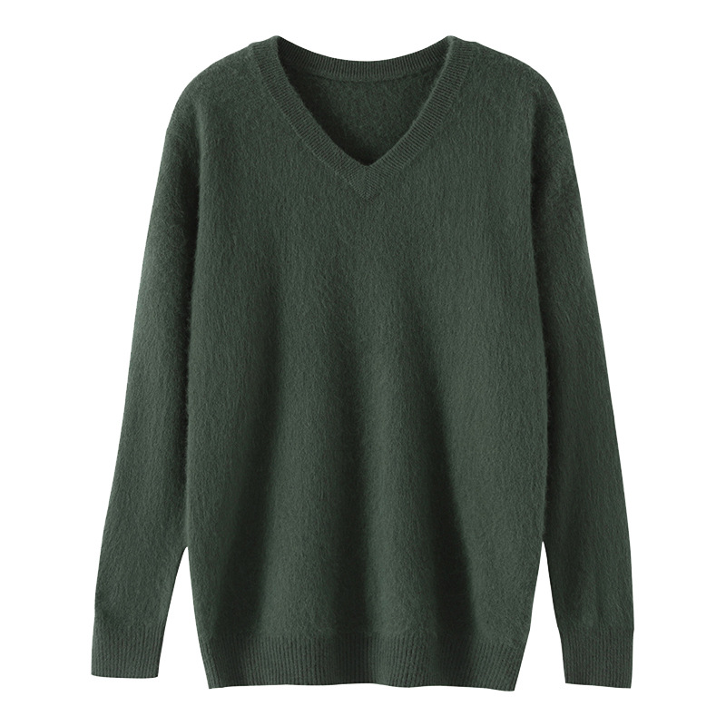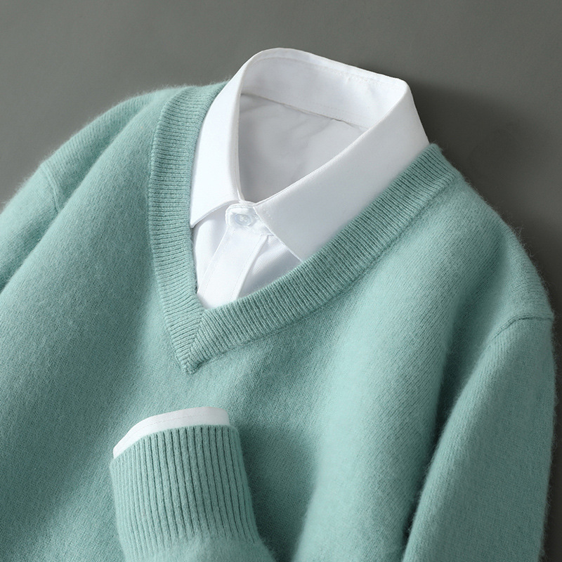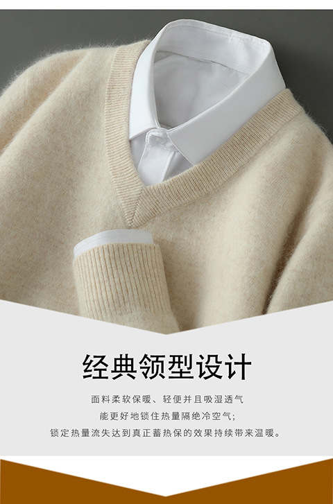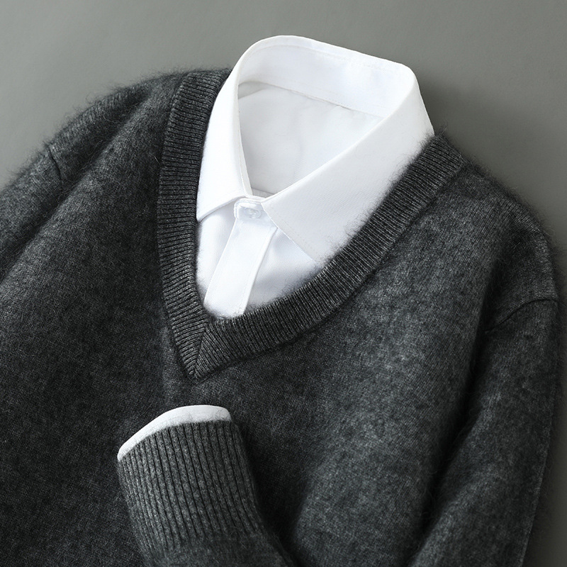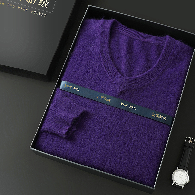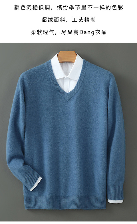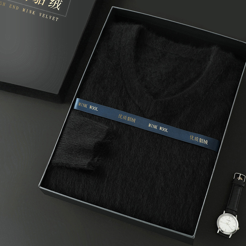 Свитер из искусственной норки, мужской тонкий вязаный свитер с v-образным вырезом, осенне-зимний деловой повседневный теплый однотонный свитер с внутренним слоем, трибутомия