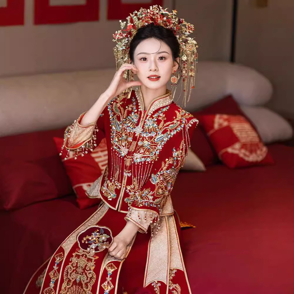 Свадебное платье Xiuhe 2025: новое, из плотного бархата, зимнее, в китайском стиле, для свадебной церемонии и тостов.