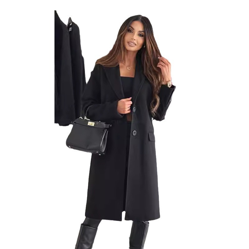 Трансграничная внешняя торговля Европейская и американская женская независимая станция Amazon 2024 осень и зима простой длинный рукав сплошной шерстяной куртки