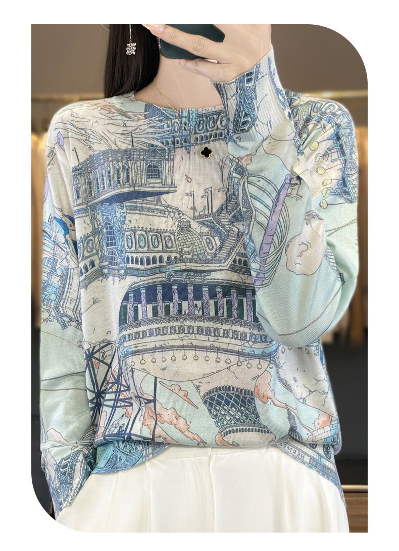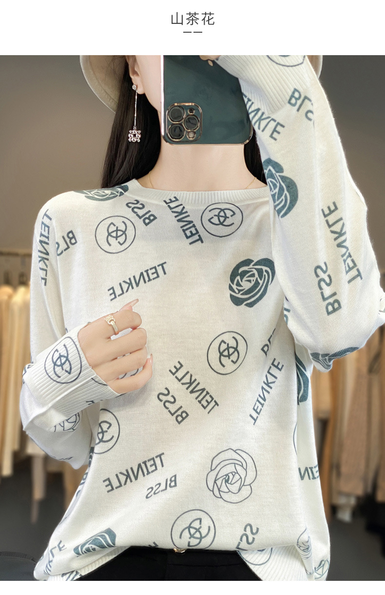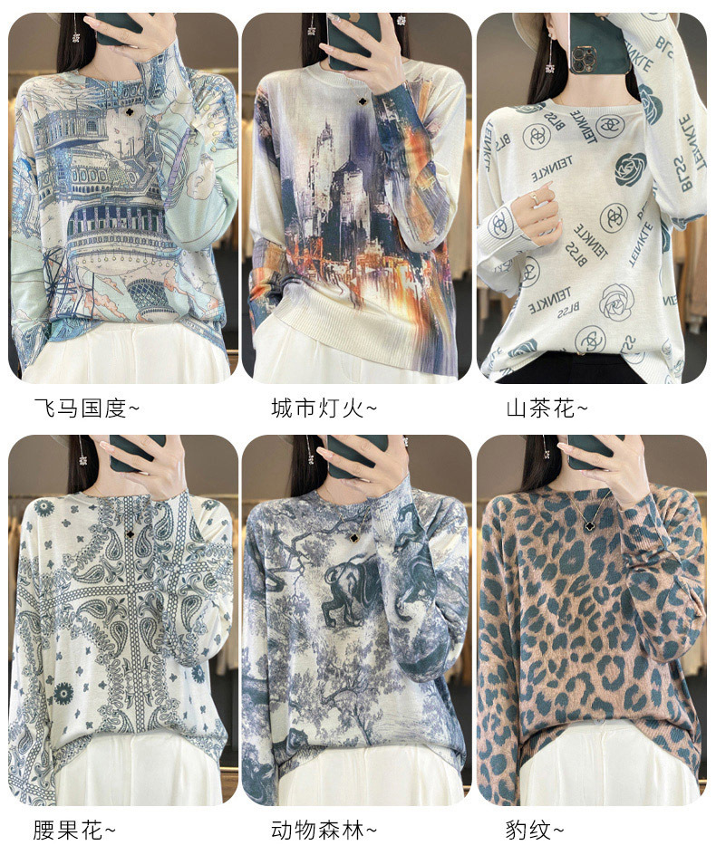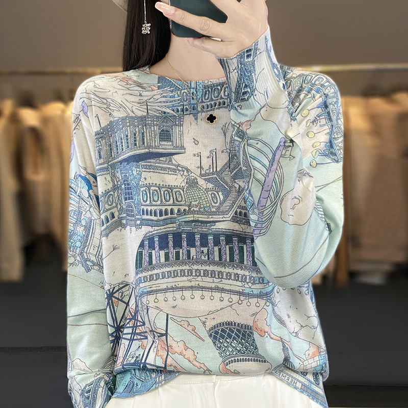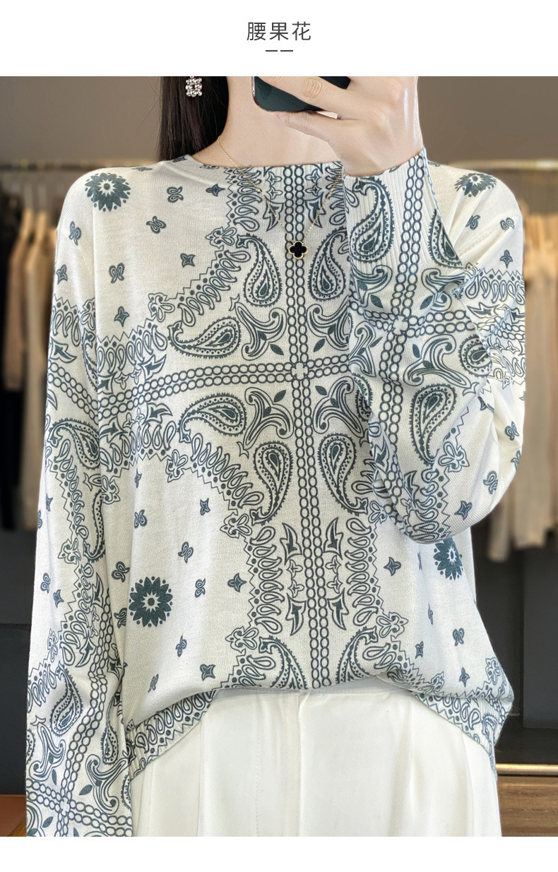 Изысканный легкий и роскошный Ejia с 120 водорастворимыми шерстяными принтами с длинными рукавами и круглым вырезом
