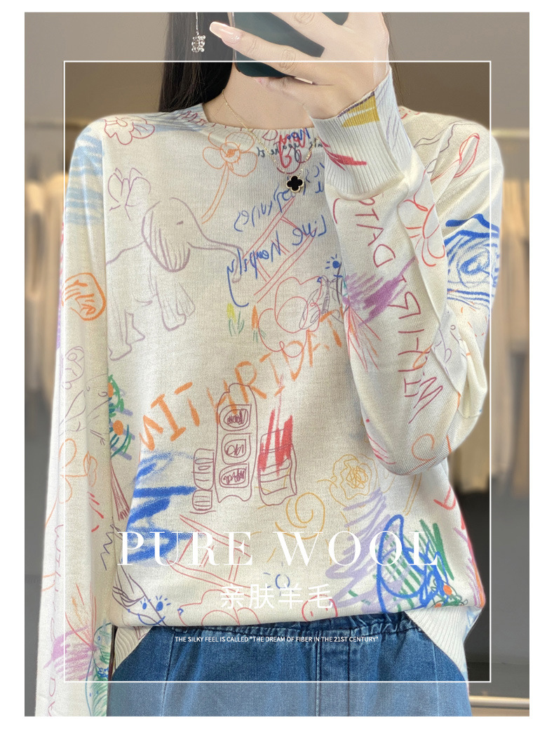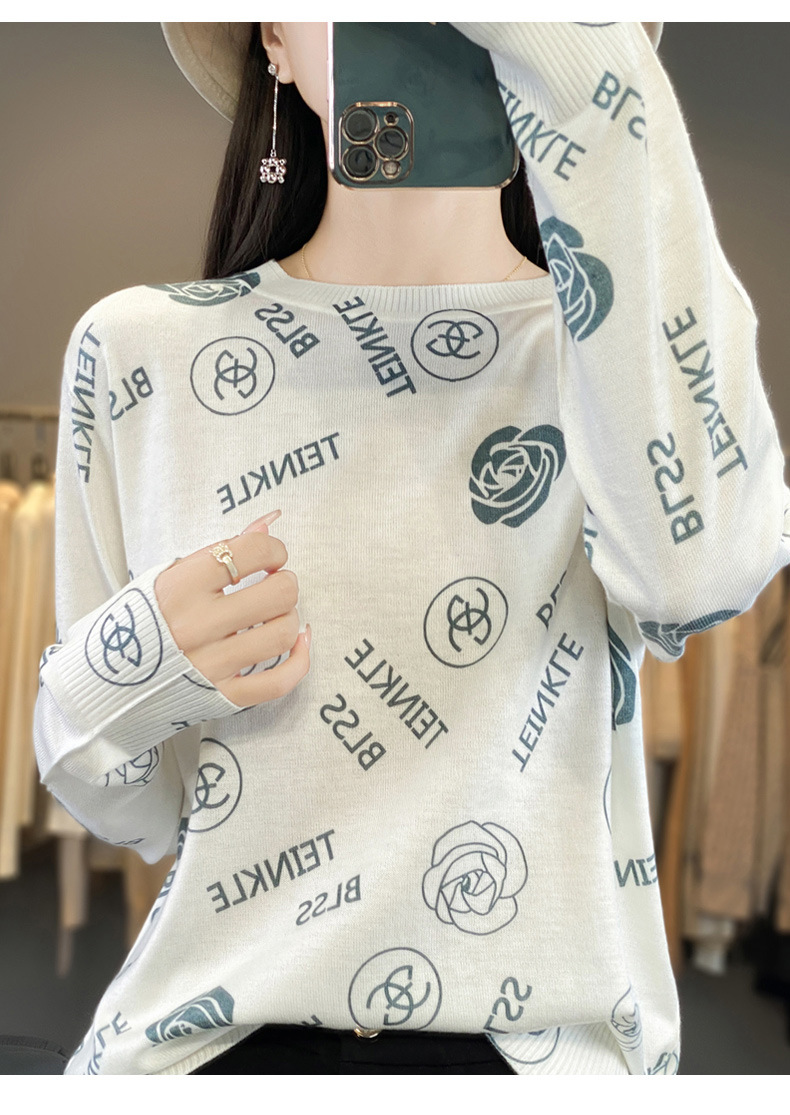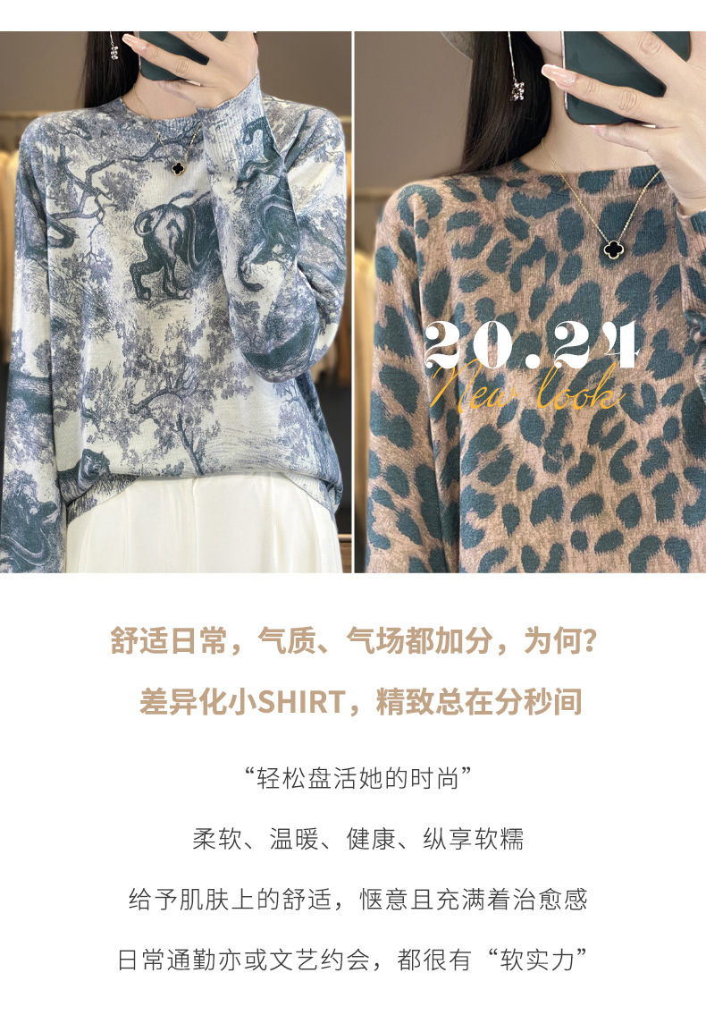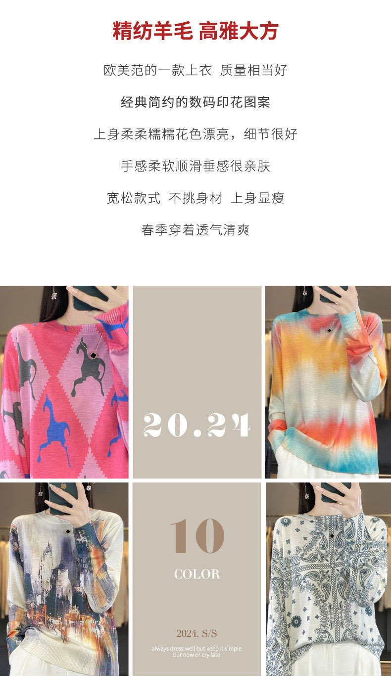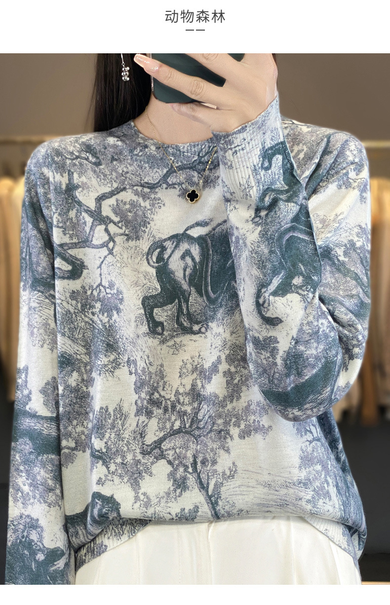 Изысканный легкий и роскошный Ejia с 120 водорастворимыми шерстяными принтами с длинными рукавами и круглым вырезом