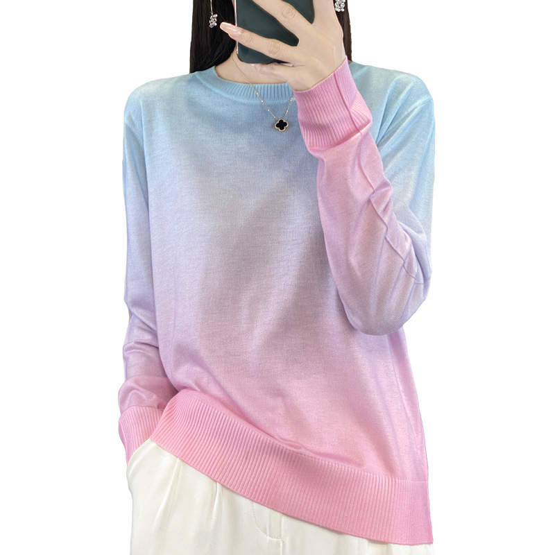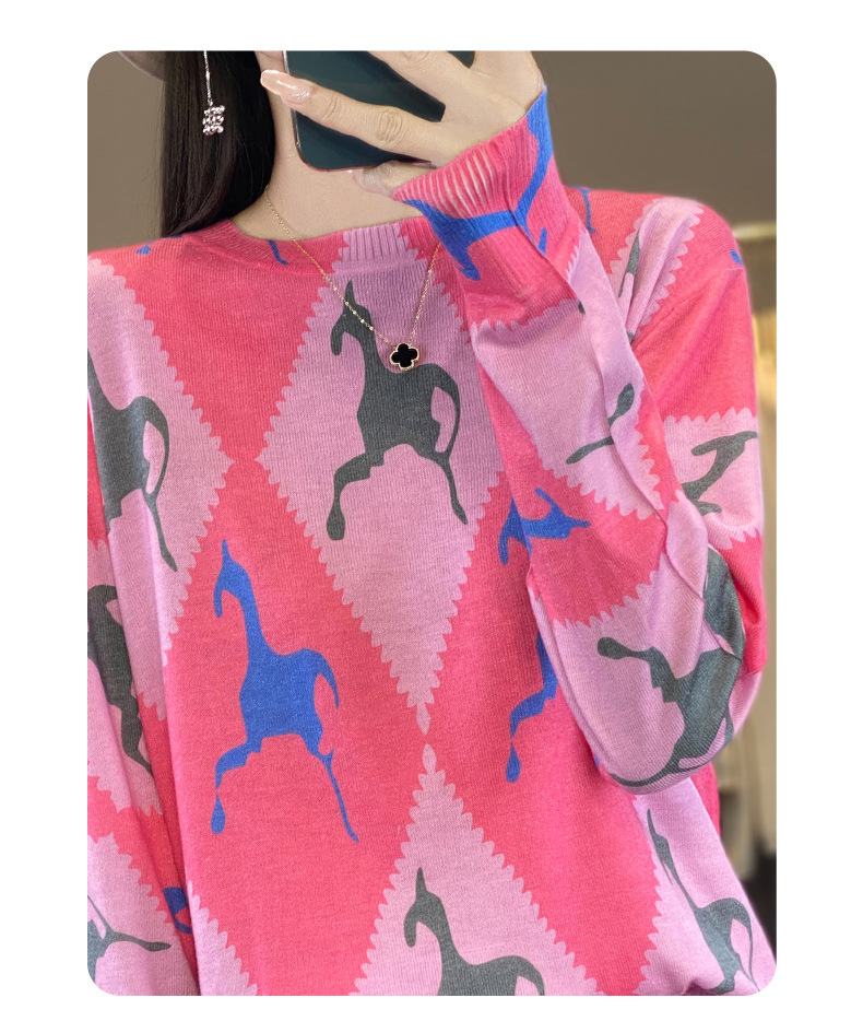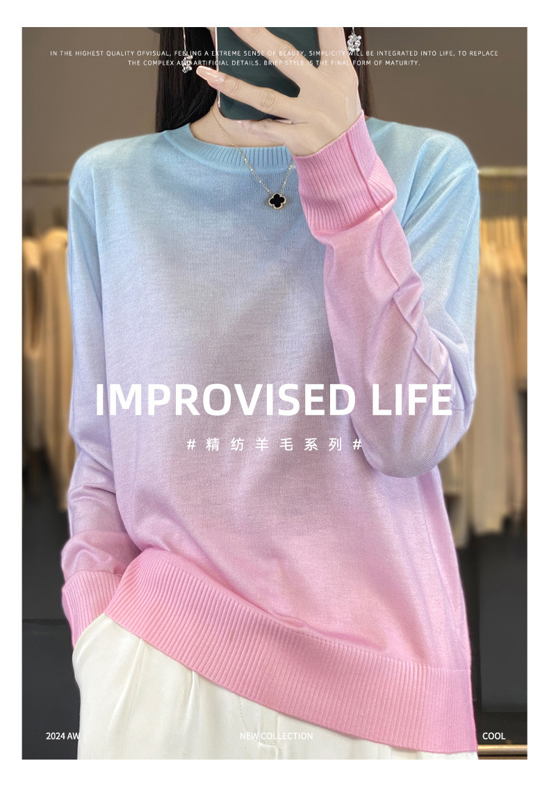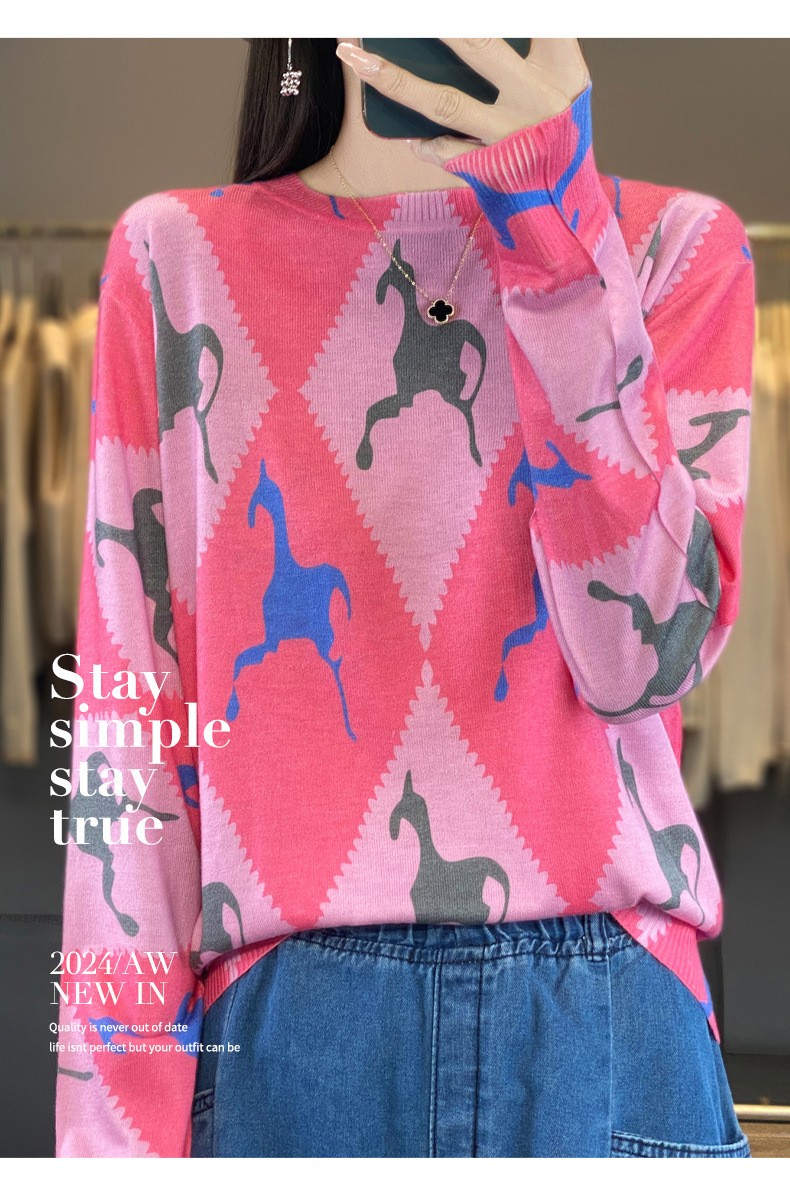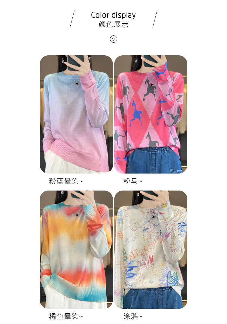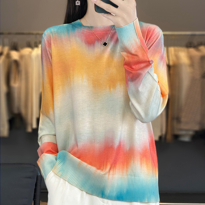 Изысканный легкий и роскошный Ejia с 120 водорастворимыми шерстяными принтами с длинными рукавами и круглым вырезом