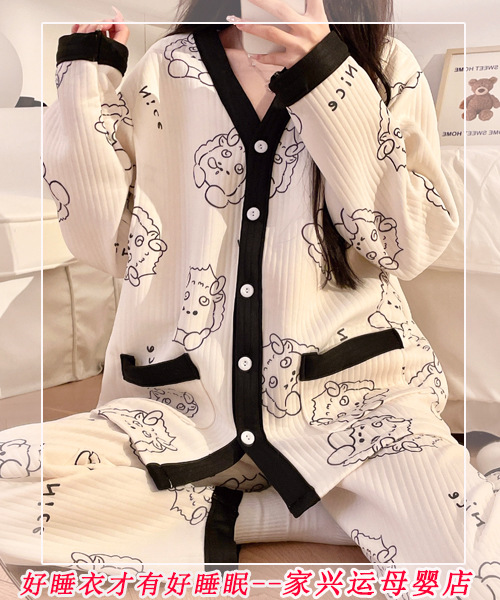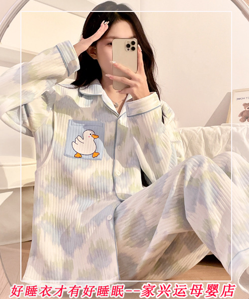 Воздушные хлопчатобумажные напоты осень-зима постнатальный хлопок 10 месяцев 11 материнства кормящие платья беременные пижамы весна-осень