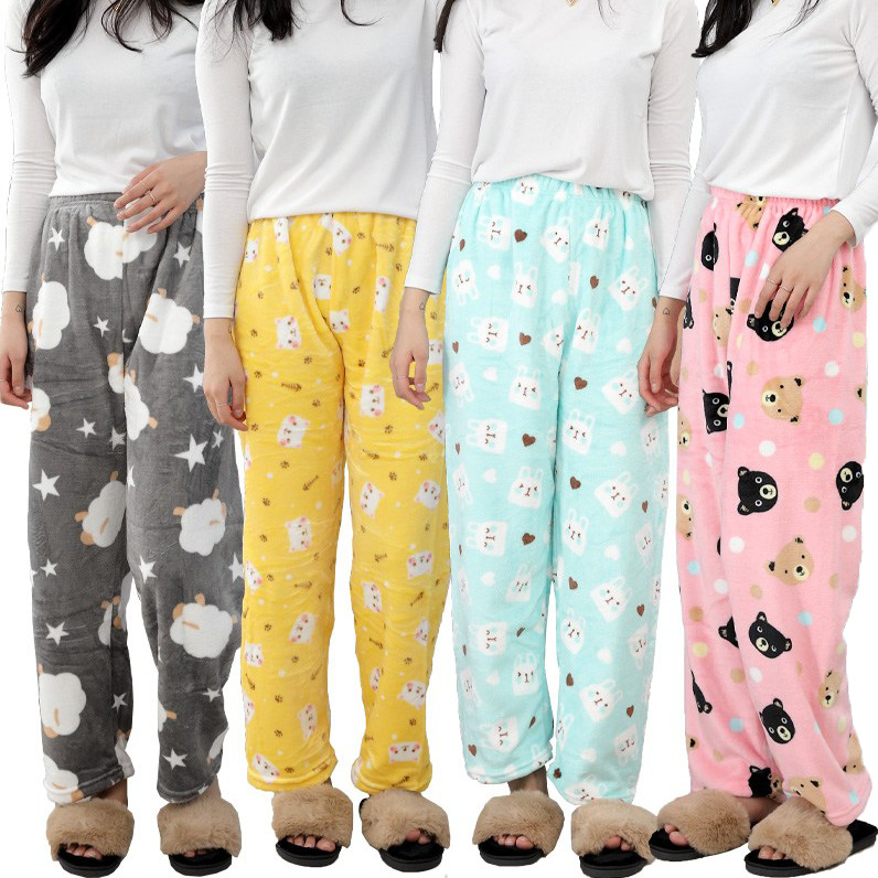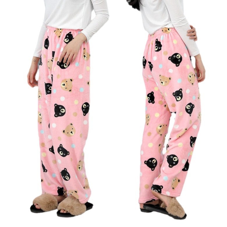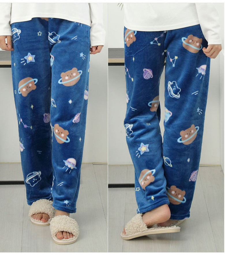 Фланелевые пижамы женские осенние и зимние новые коралловые бархатные толстые теплые пижамы мужские повседневные домашние брюки оптом Корея