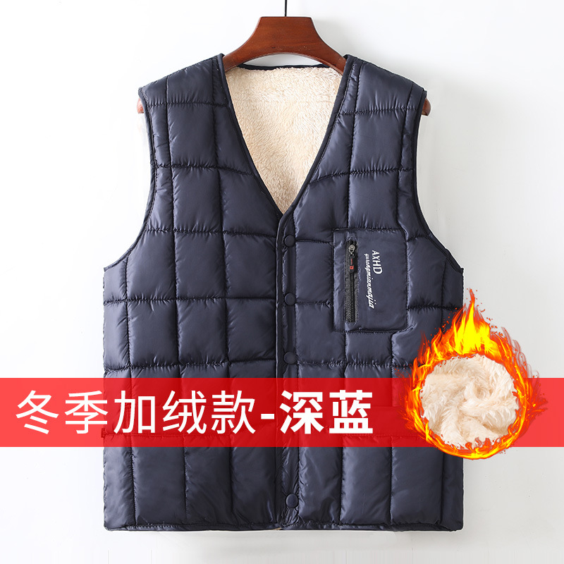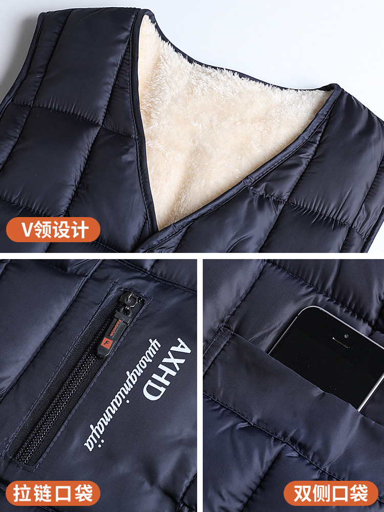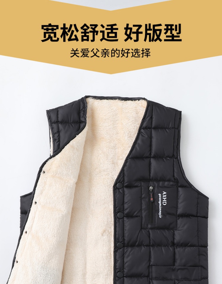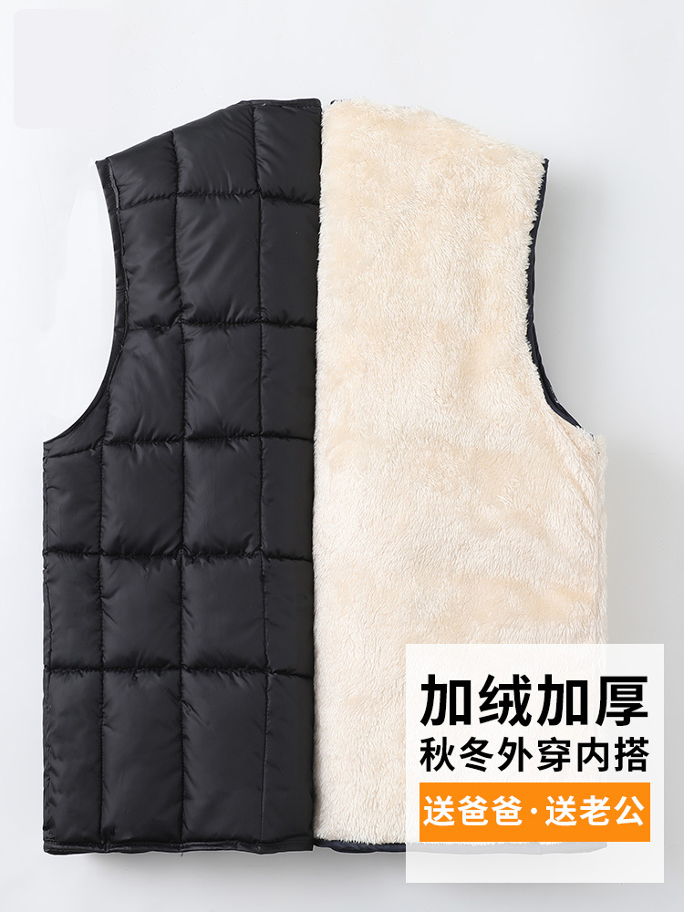 Мужской флисовый жилет, утепленный для зимы, жилет из овечьей шерсти для мужчин среднего и старшего возраста, терможилет из шелкового хлопка, мужской жилет для защиты от холода.