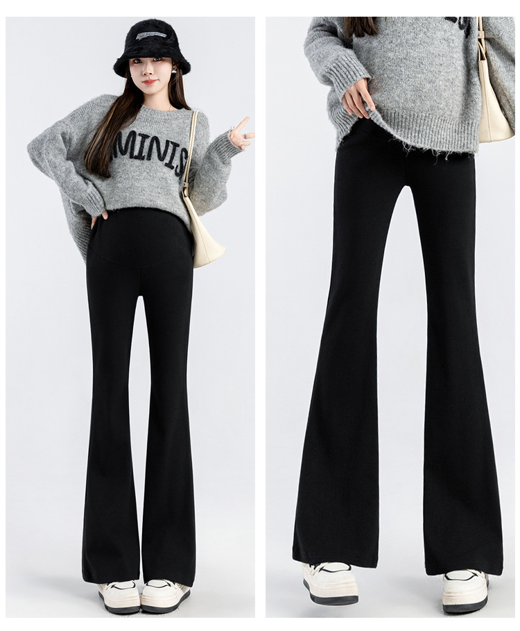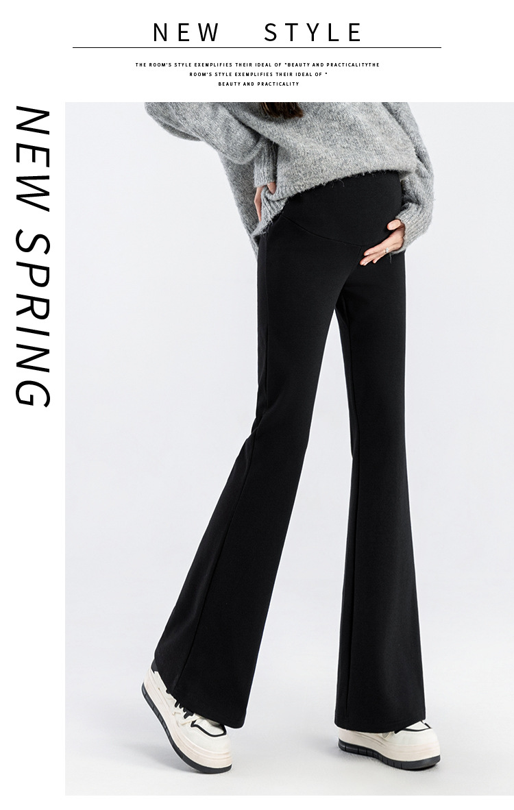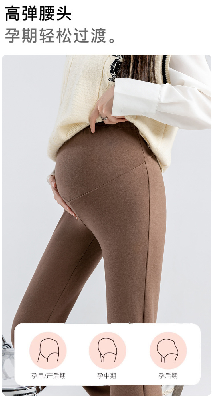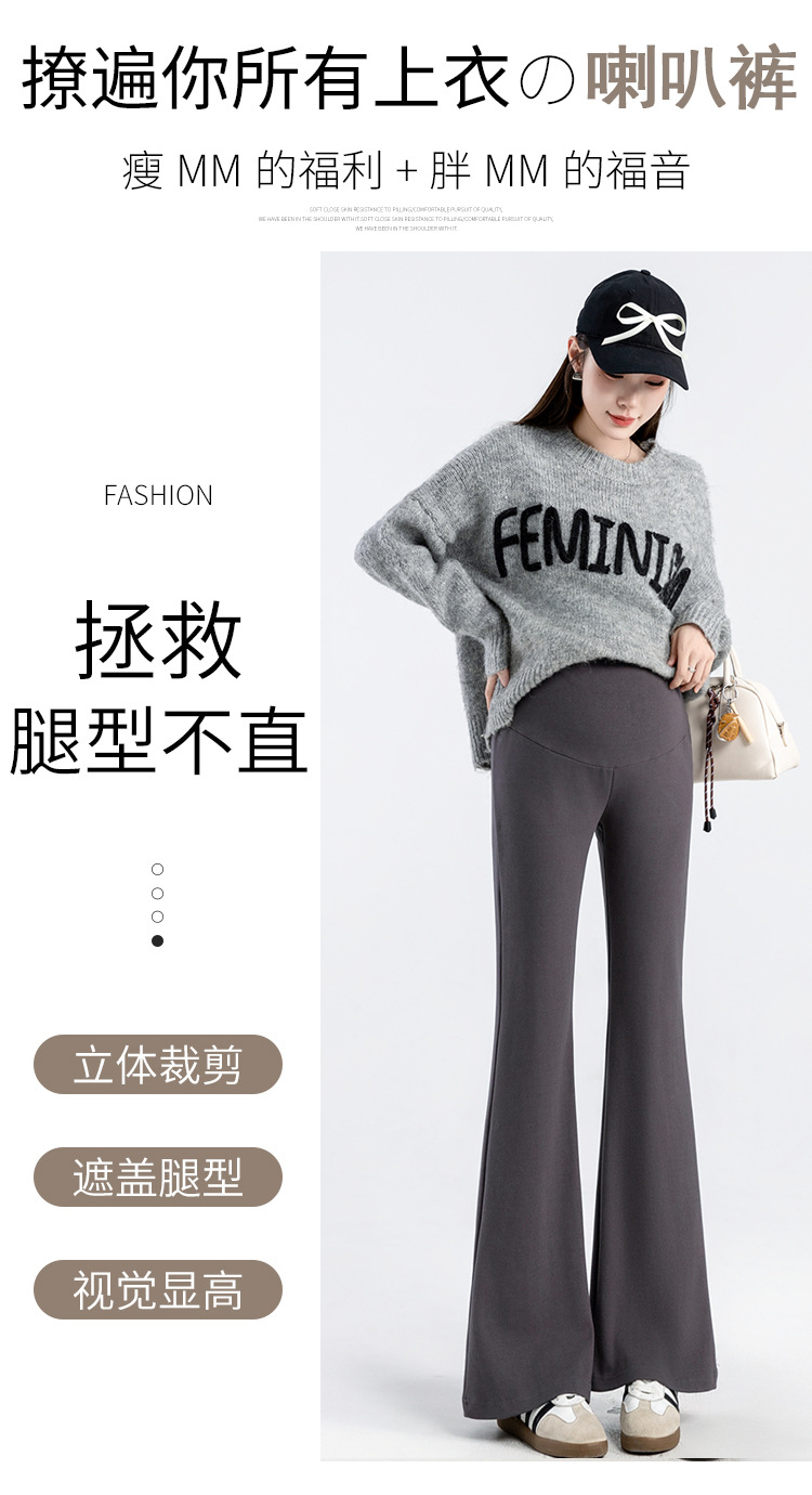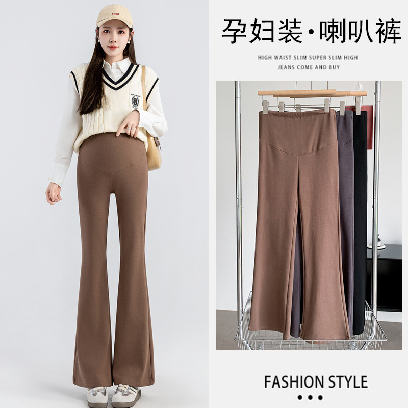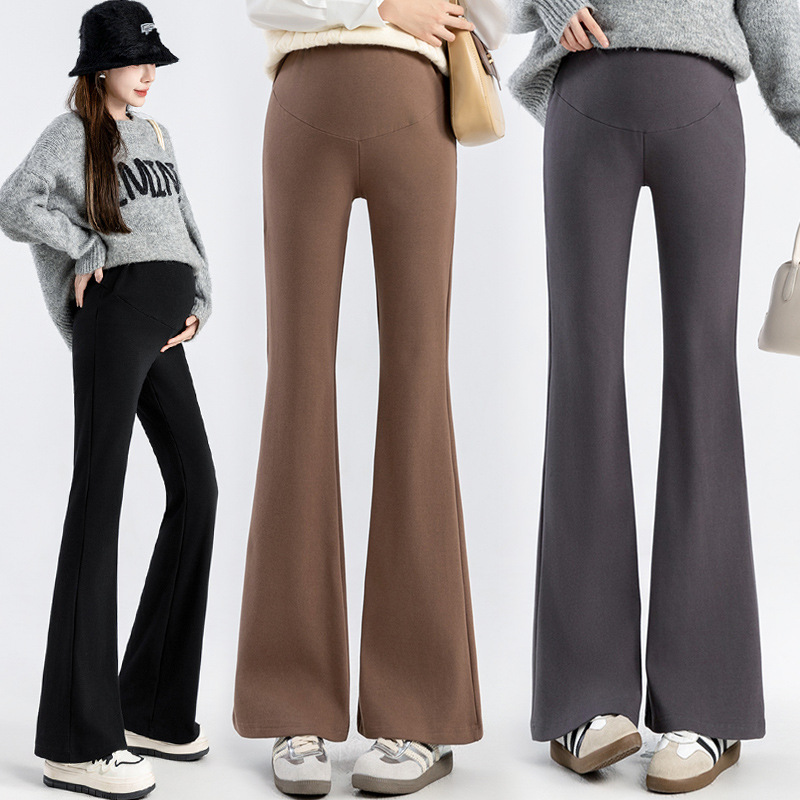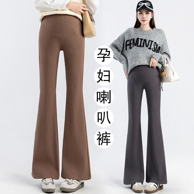 Брюки для беременных 2024 весна и осень новые толстые расклешенные брюки с резьбой и шлифовальные узкие брюки для беременных эластичные брюки
