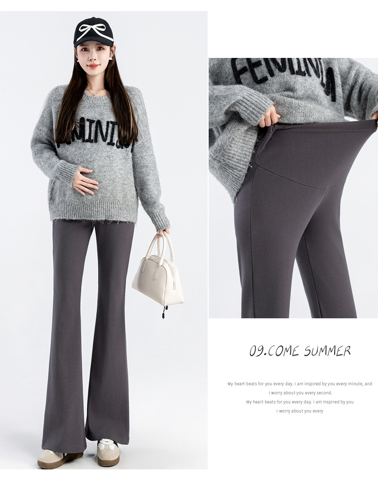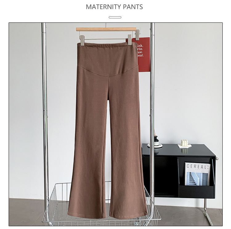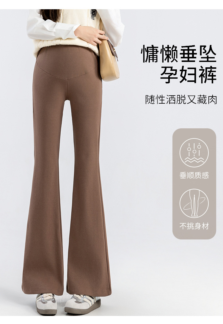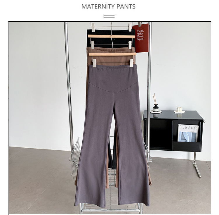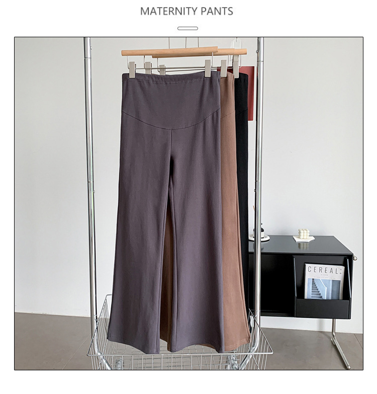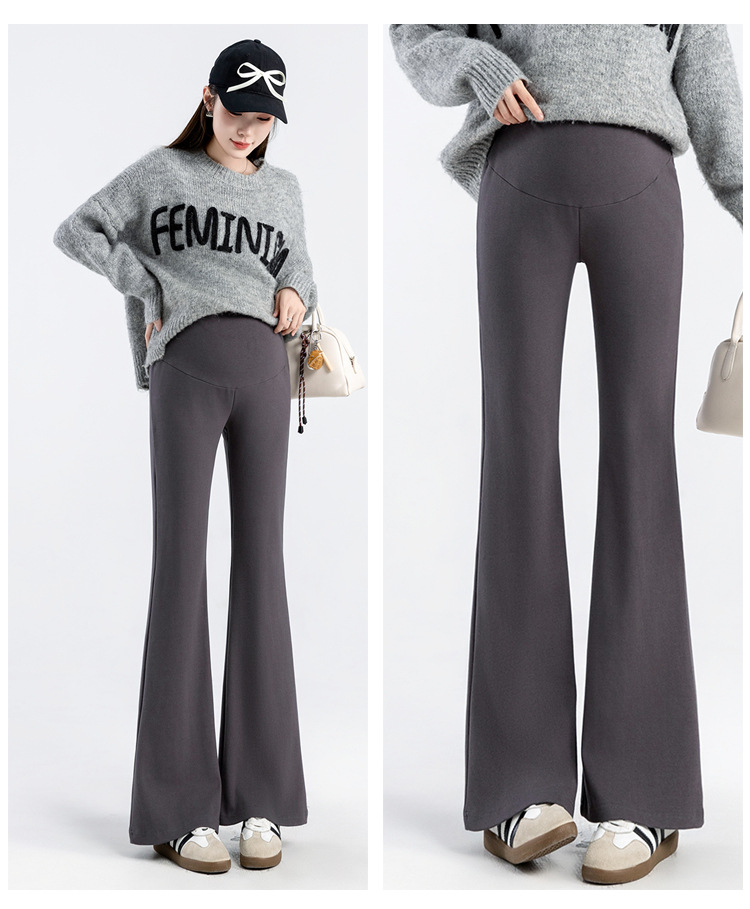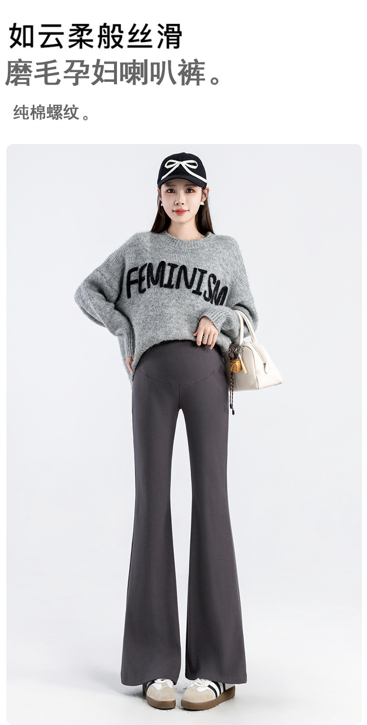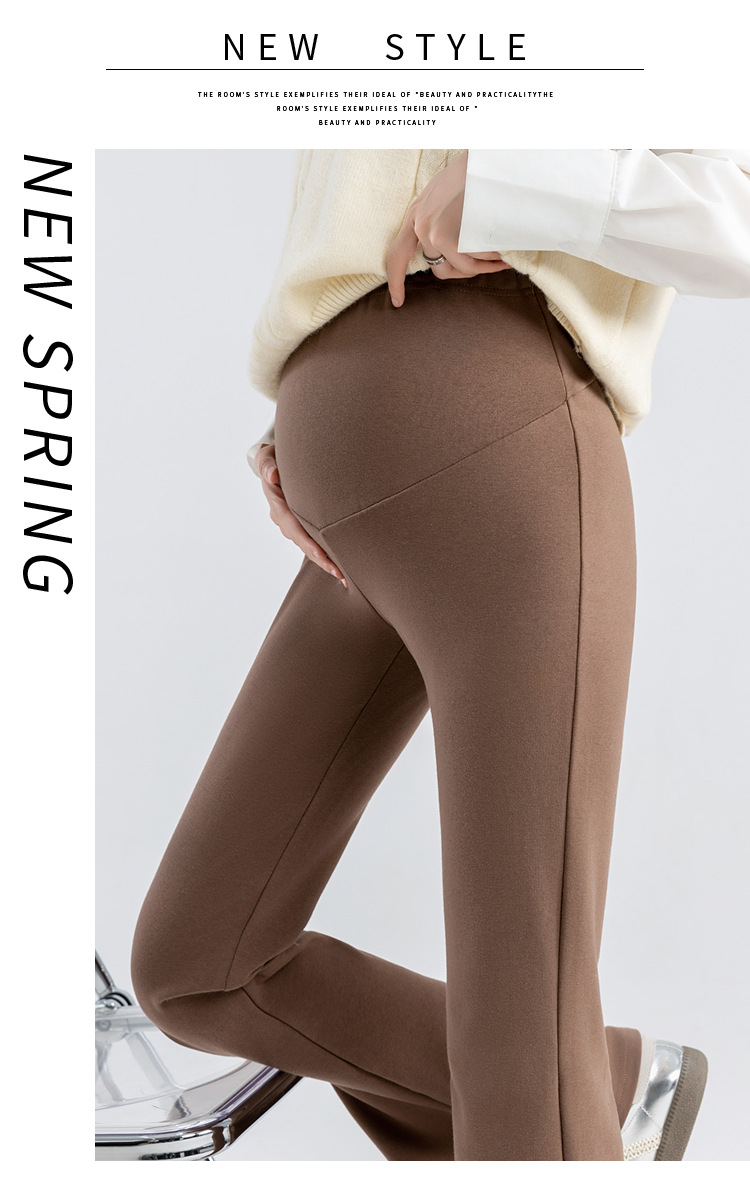 Брюки для беременных 2024 весна и осень новые толстые расклешенные брюки с резьбой и шлифовальные узкие брюки для беременных эластичные брюки
