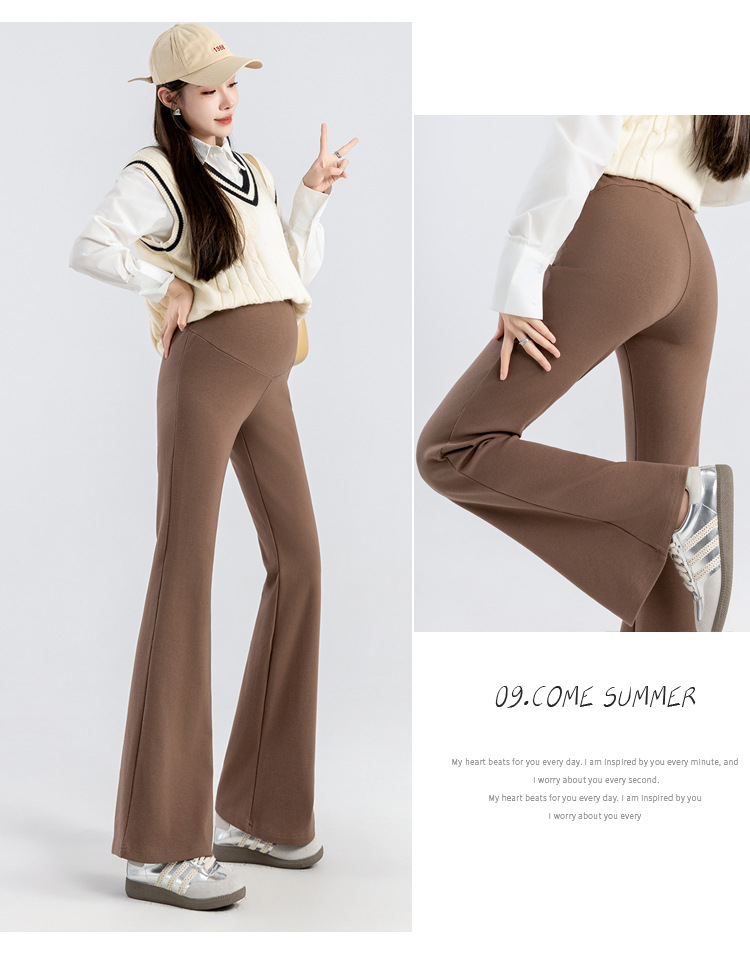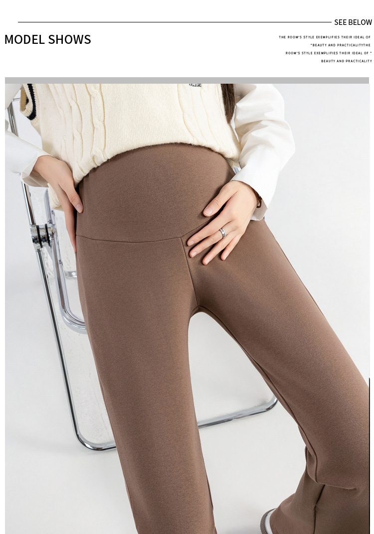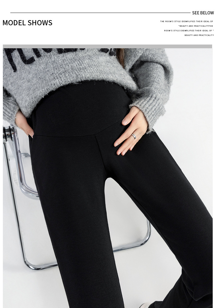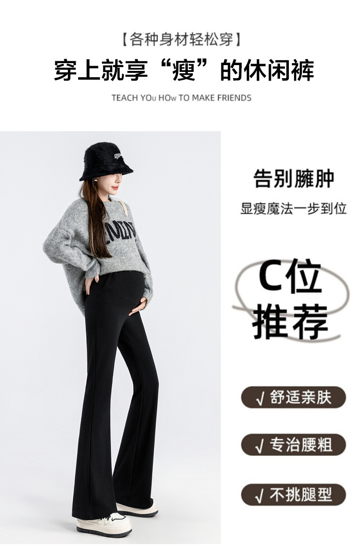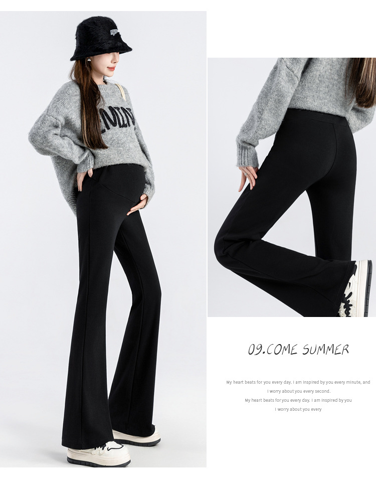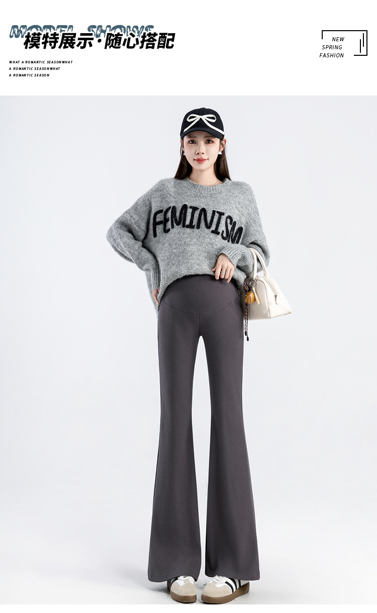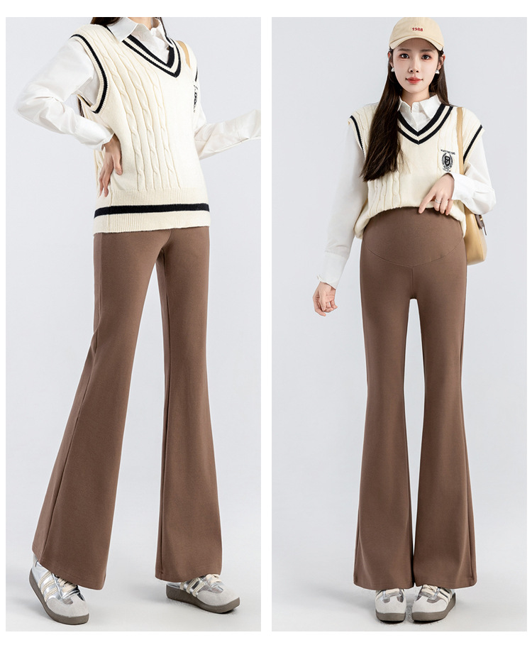 Брюки для беременных 2024 весна и осень новые толстые расклешенные брюки с резьбой и шлифовальные узкие брюки для беременных эластичные брюки