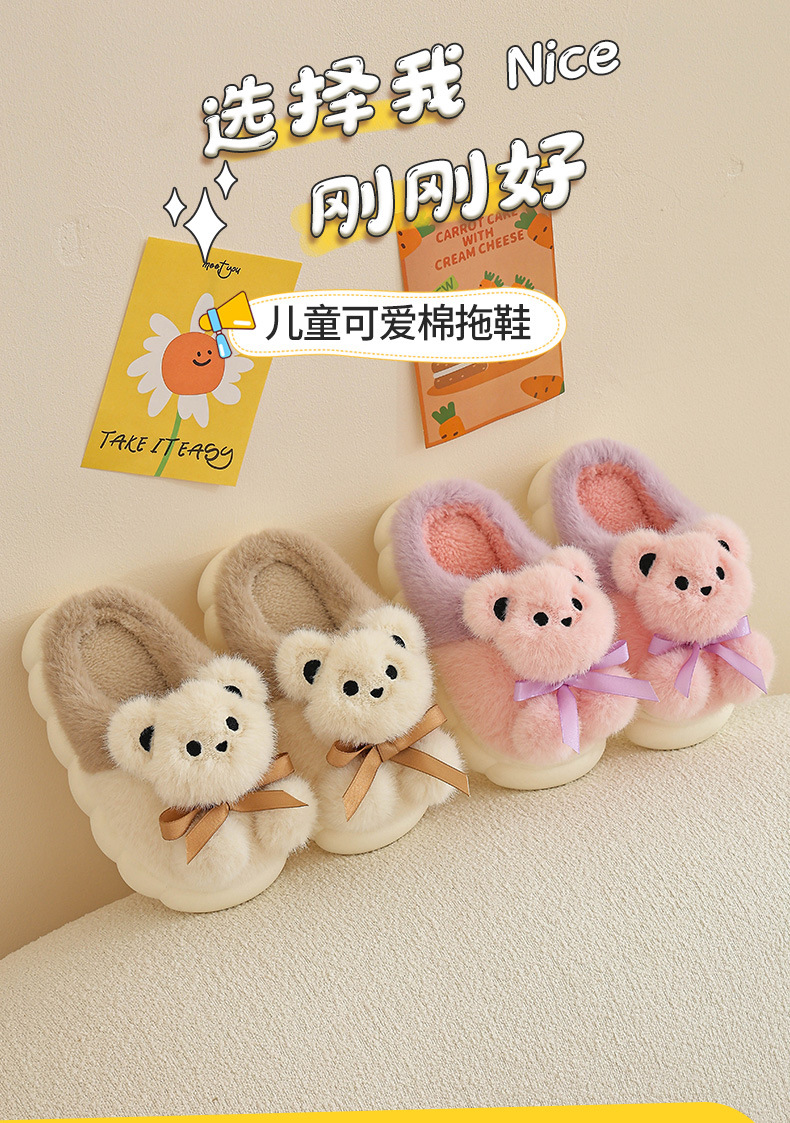 Детские хлопчатобумажные тапочки женские зимние бархатные утолщенные теплые мягкие подошвы