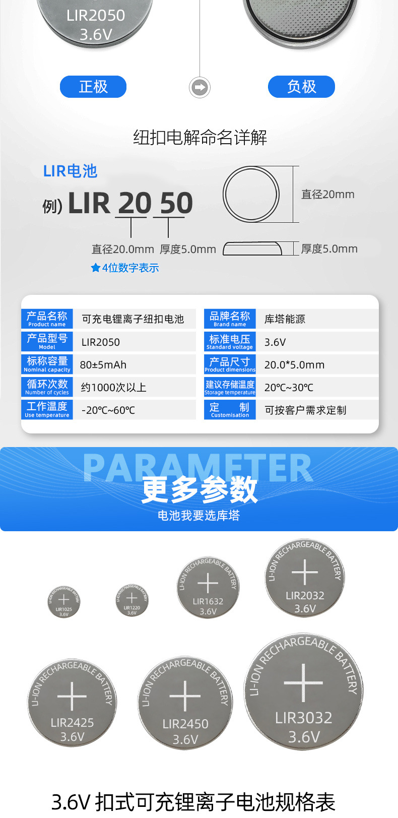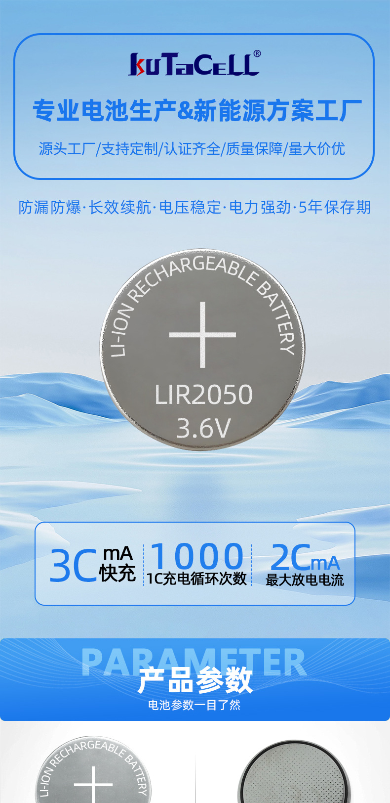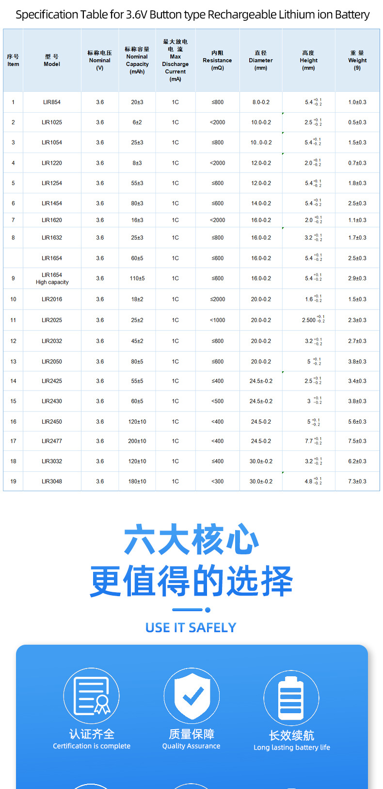 LIR2050 Buttery аккумулятор 3.6V перезаряжаемые электронные часы литий-ионный аккумулятор