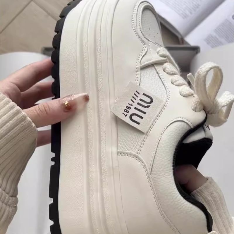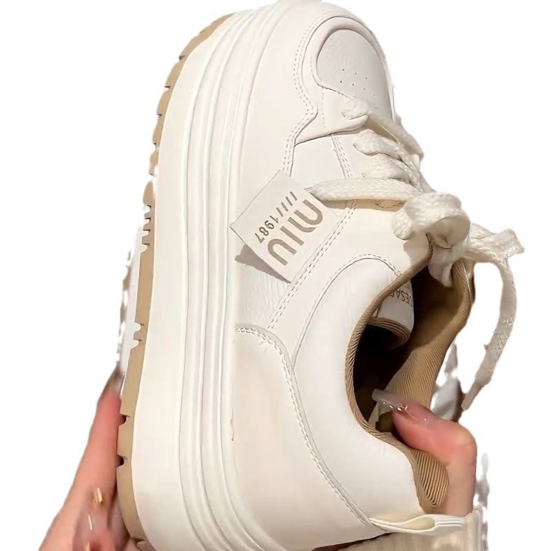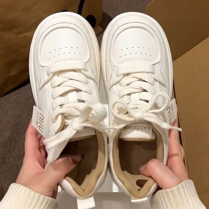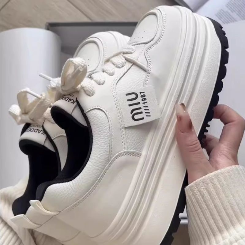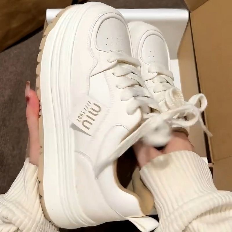 Кроссовки Meillard женские весенние и осенние кексы с круглой головкой маленькие белые туфли с толстой подошной кампусной кроссовки хлебные туфли увеличенные повседневные туфли