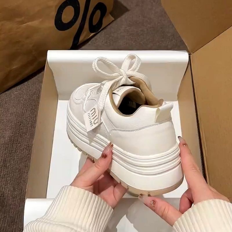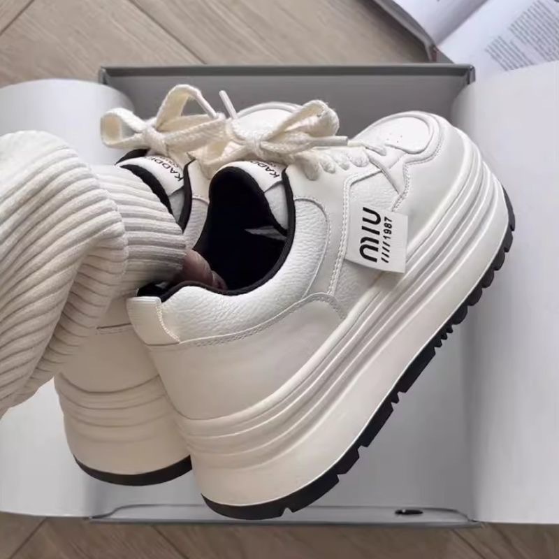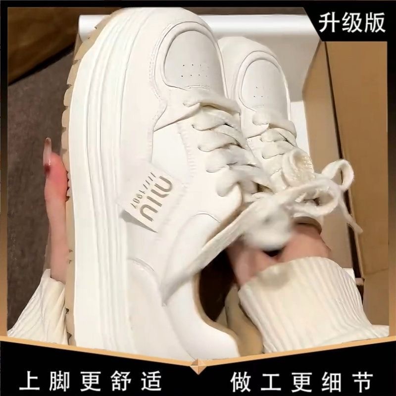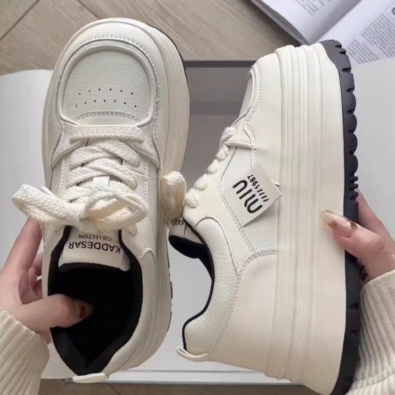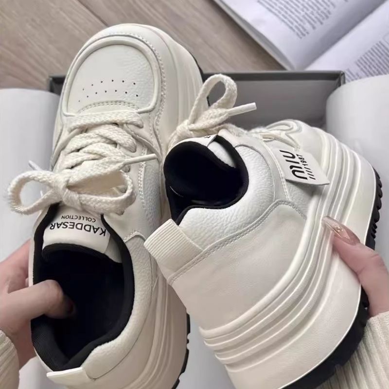 Кроссовки Meillard женские весенние и осенние кексы с круглой головкой маленькие белые туфли с толстой подошной кампусной кроссовки хлебные туфли увеличенные повседневные туфли