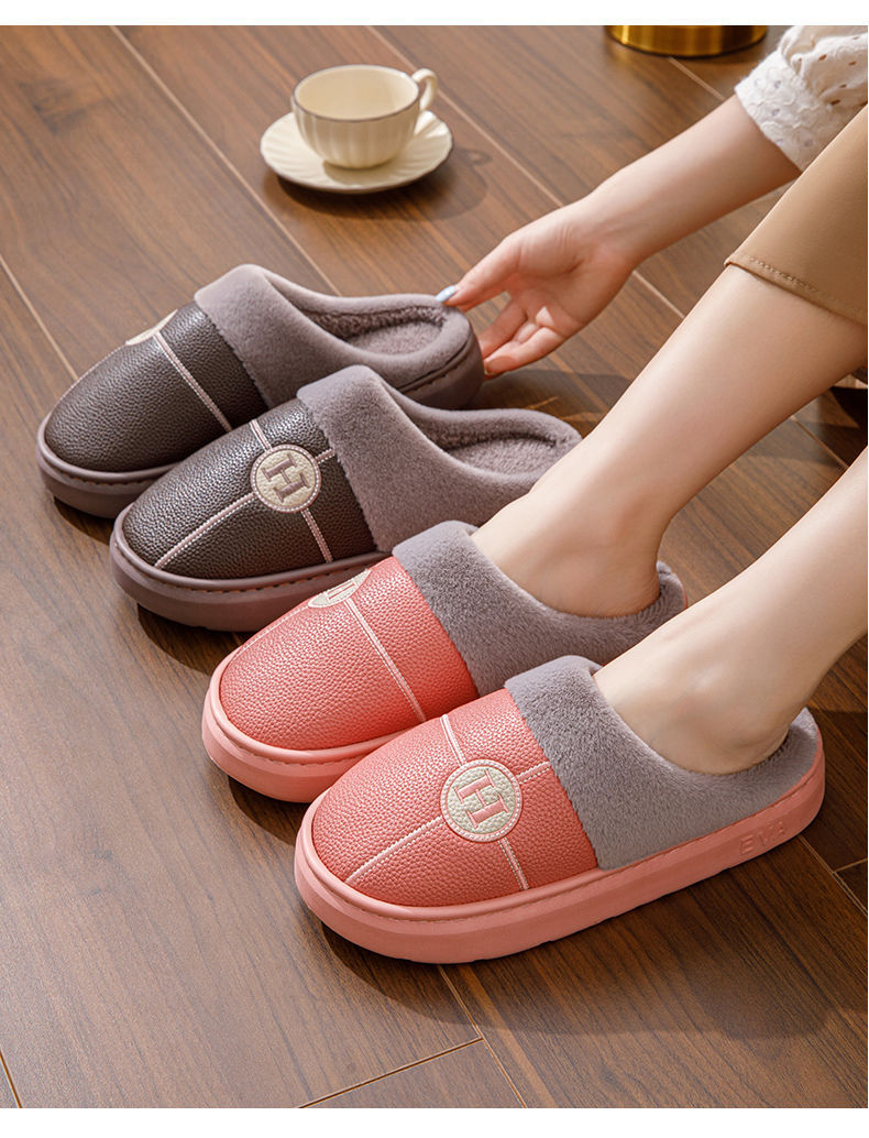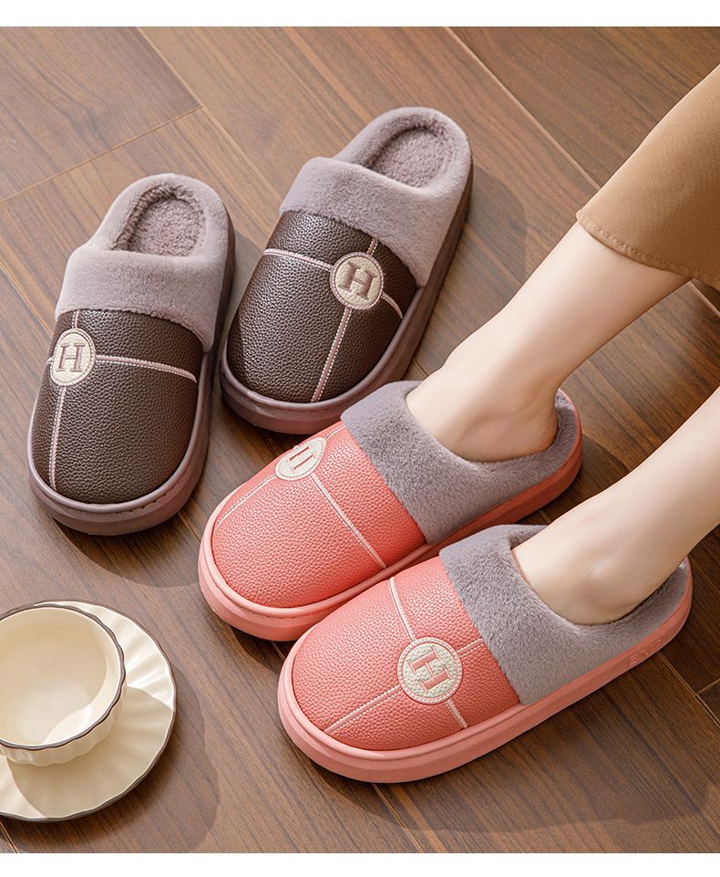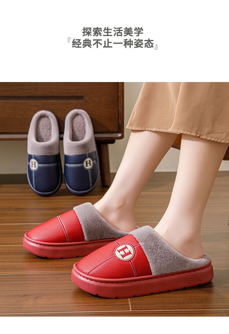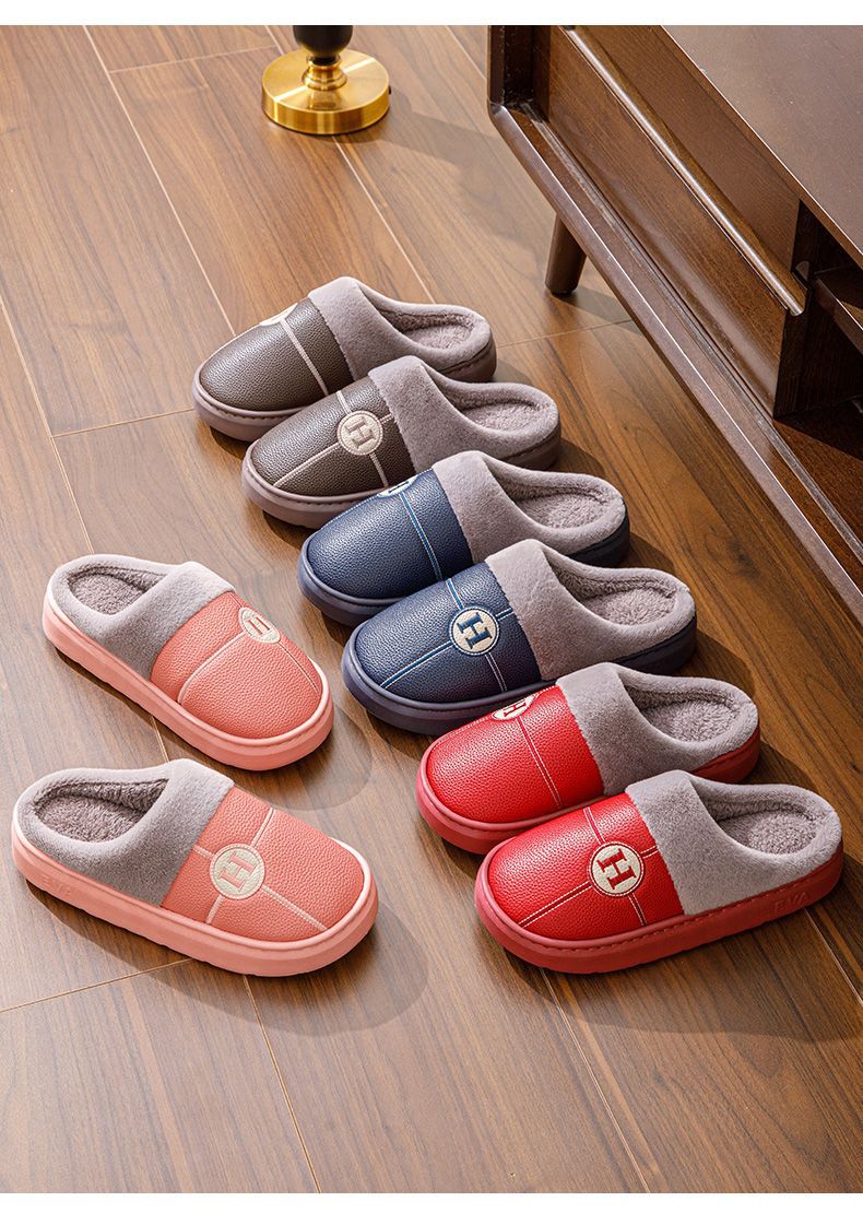 Осенне-зимние женские домашние и уличные мужские хлопковые тапочки из искусственной кожи, водонепроницаемые, противоскользящие, на флисовой подкладке, на толстой подошве, большого размера