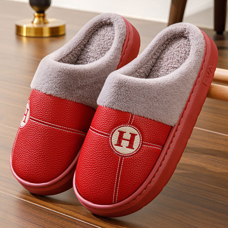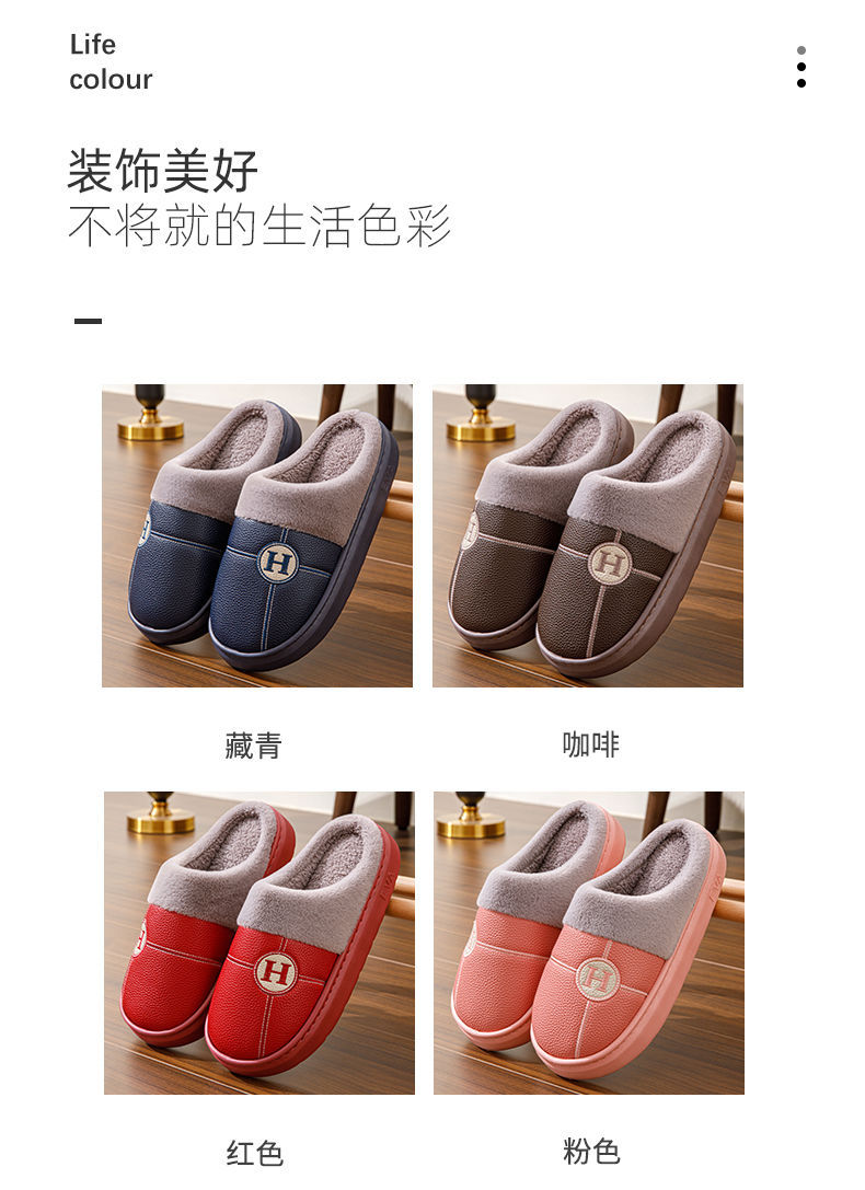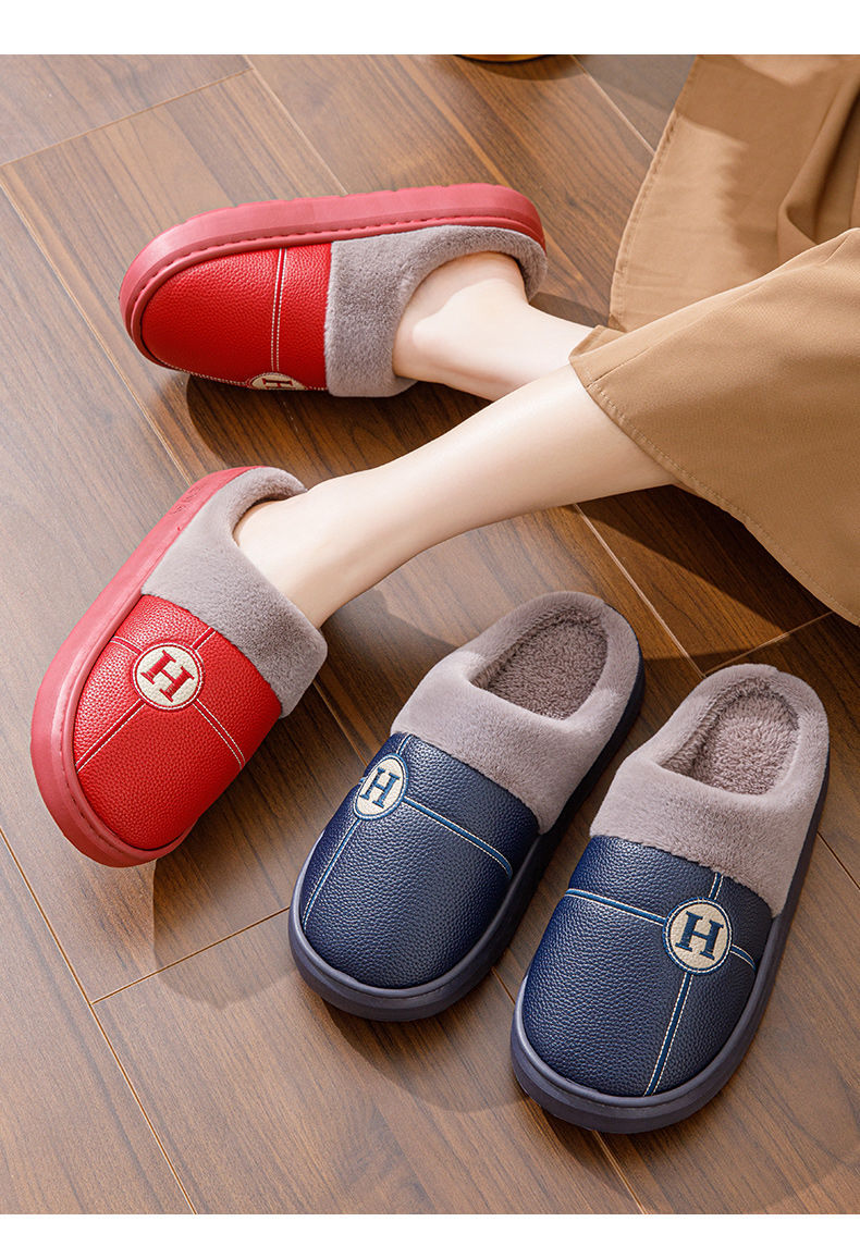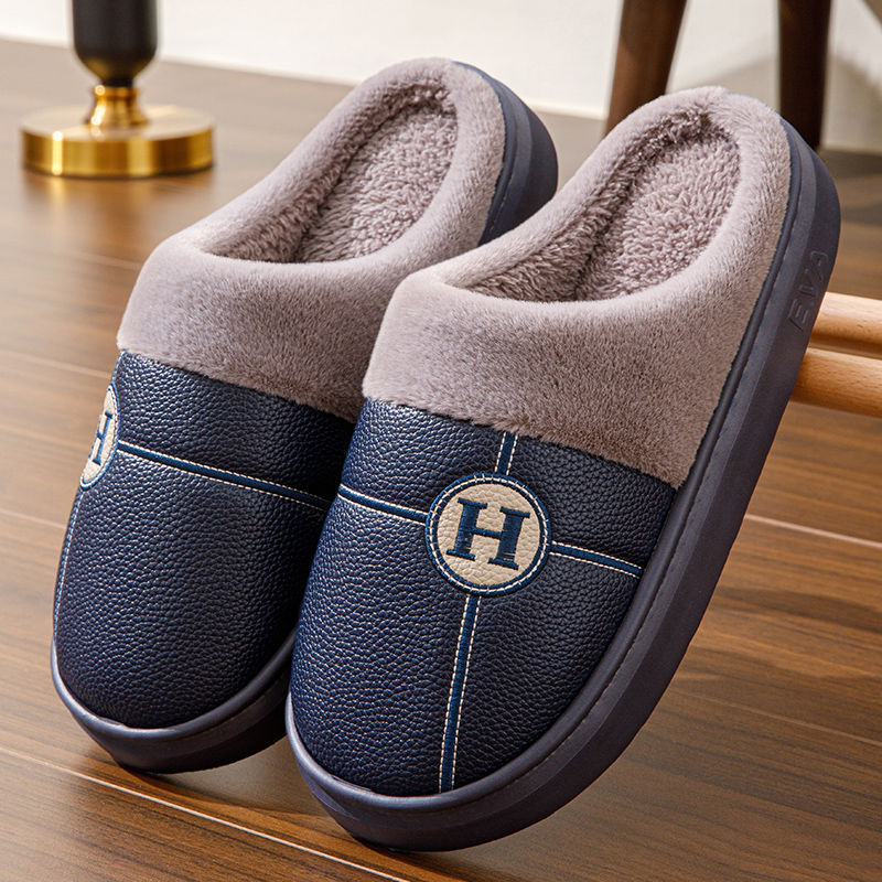 Осенне-зимние женские домашние и уличные мужские хлопковые тапочки из искусственной кожи, водонепроницаемые, противоскользящие, на флисовой подкладке, на толстой подошве, большого размера