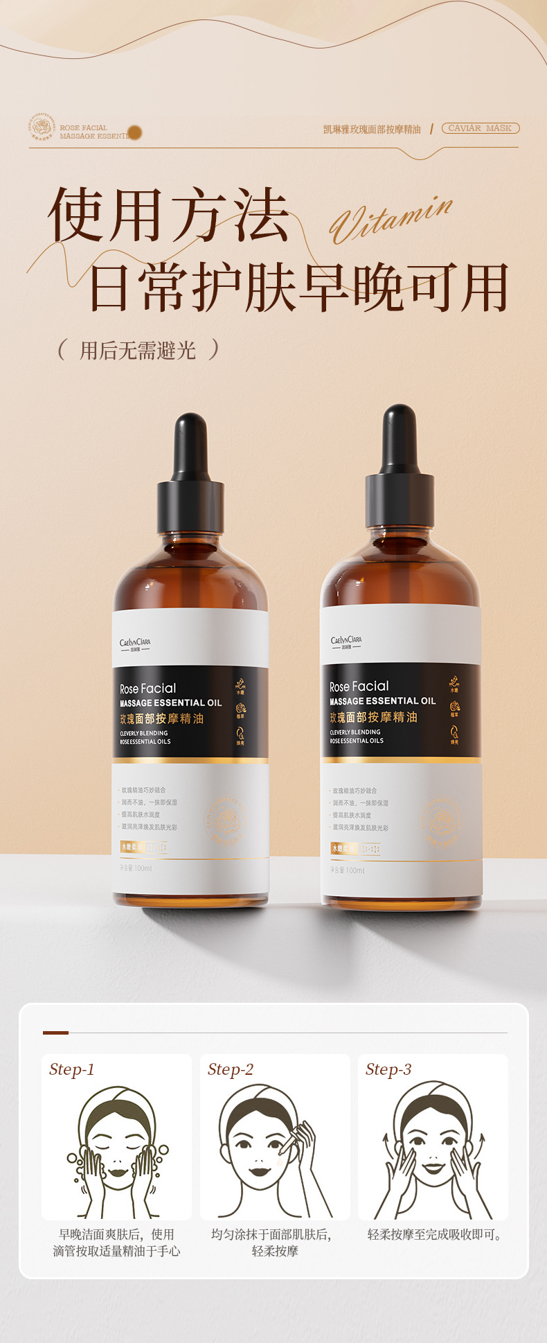 Эфирное масло для массажа лица Kailinya Rose (стеклянная бутылка)