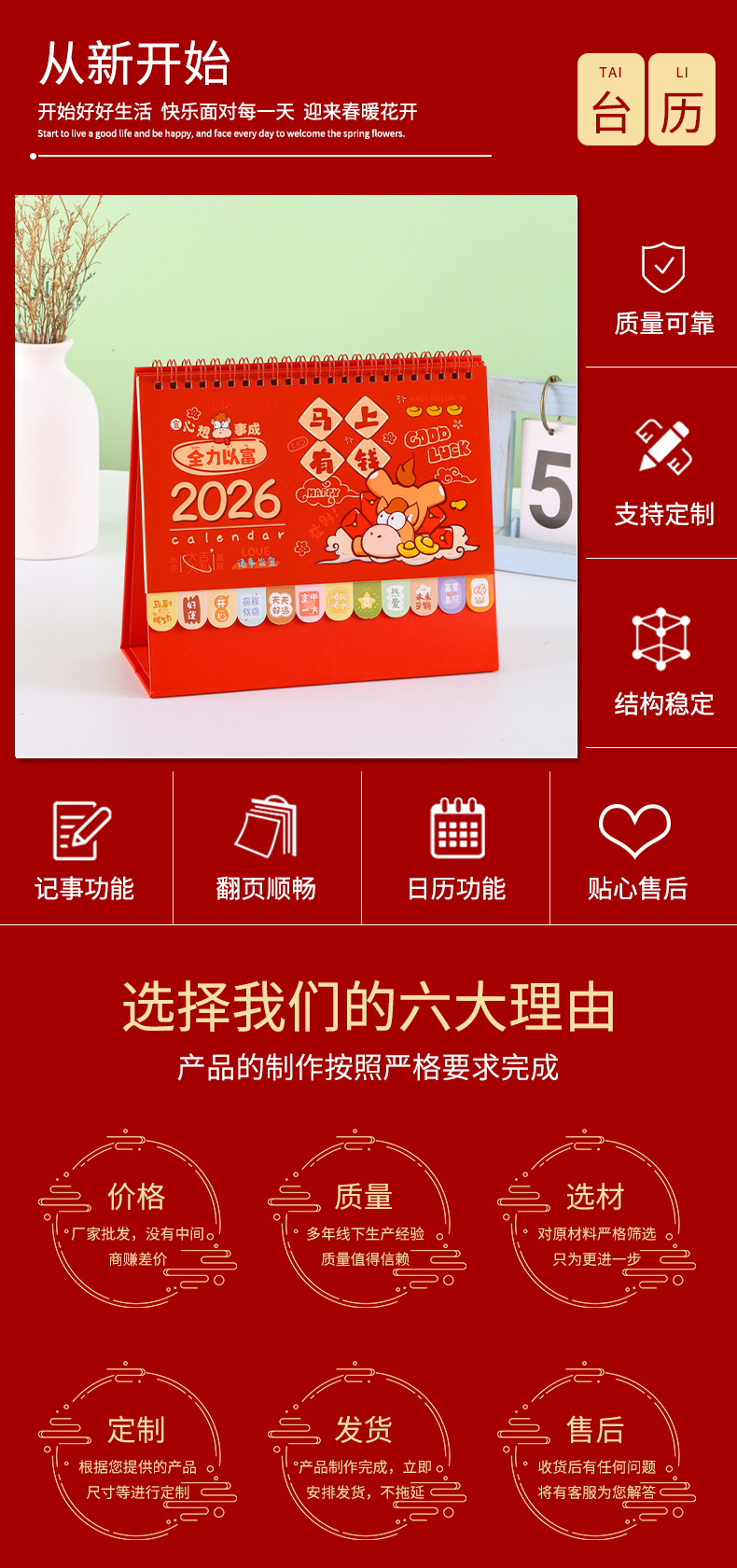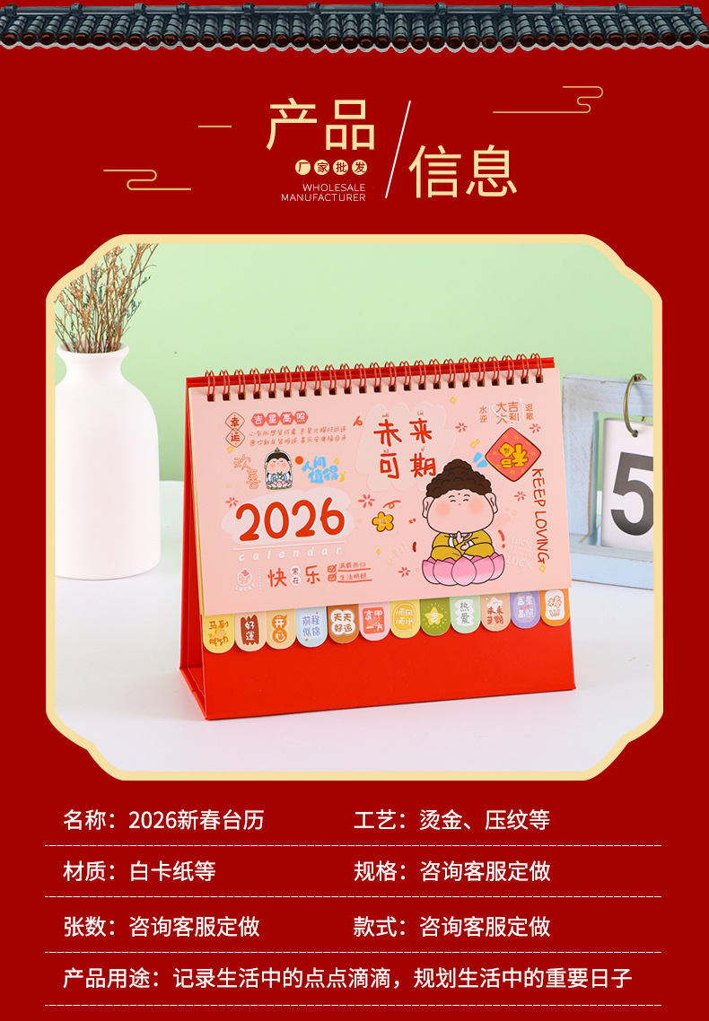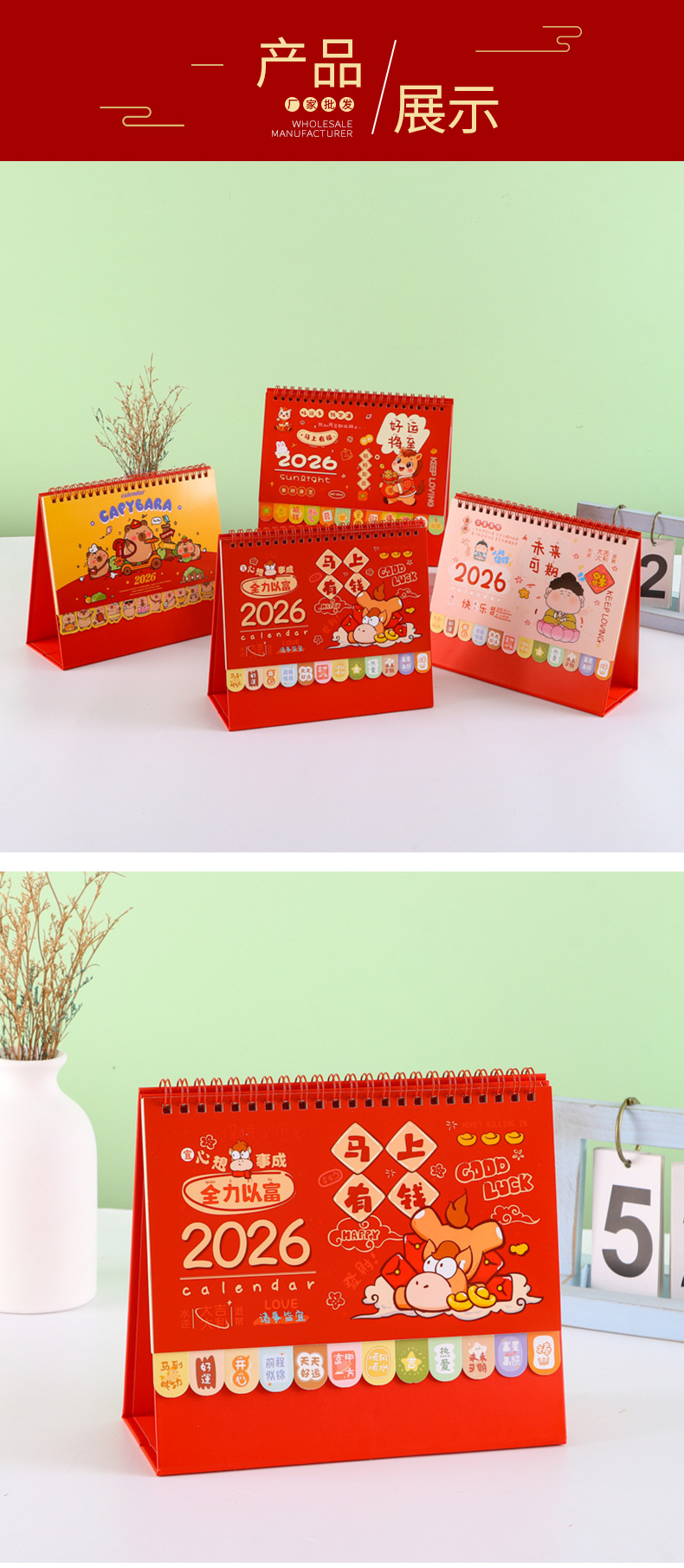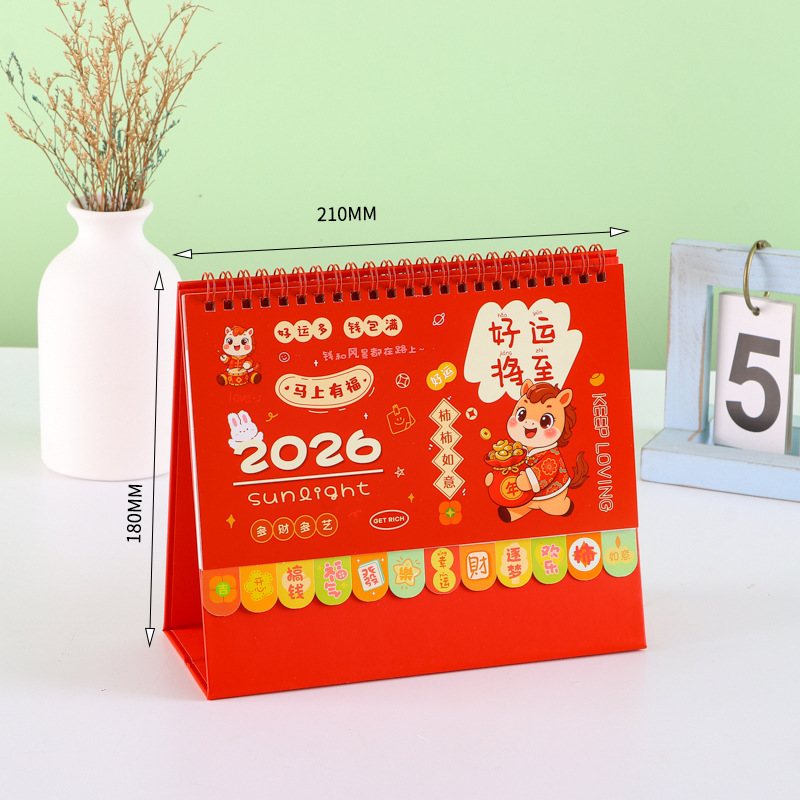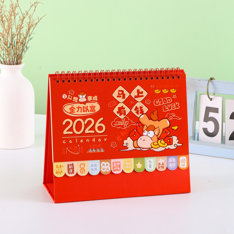Настольный календарь-планер 2026 года с индивидуальным дизайном: милый мультяшный календарь на год Лошади, ежемесячный, с возможностью нанесения логотипа
