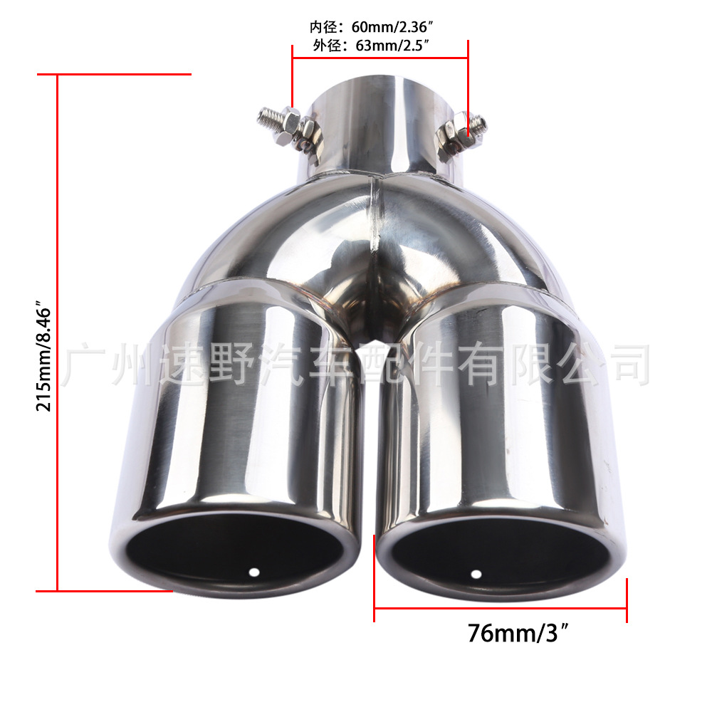 Нержавеющая сталь выхлопная труба завод 63-76mm двойной хвостовой горло прямой изгиб модели один к двум автомобильный хвостовой горловой глушитель