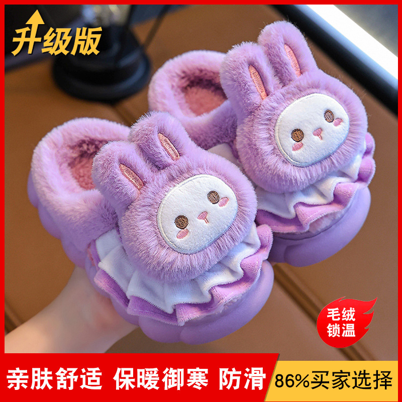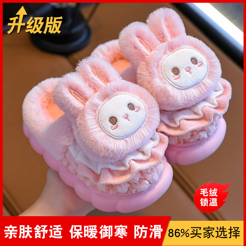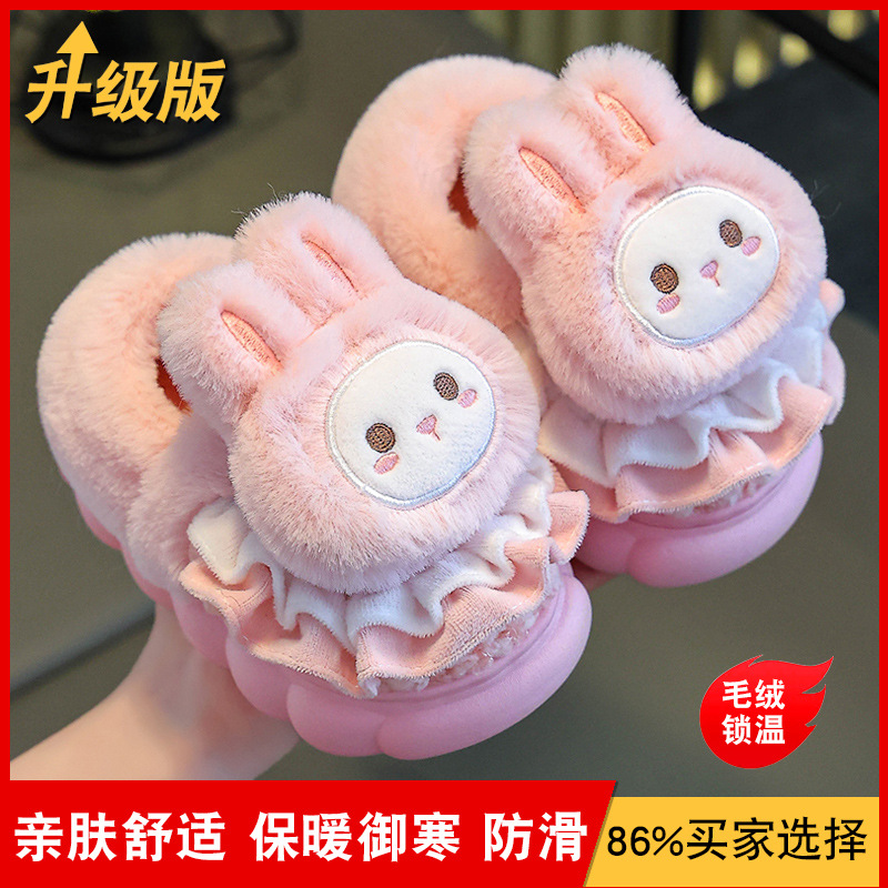Осенние и зимние новые детские хлопковые тапочки для мальчиков и девочек в помещении милые мультяшные тапочки для девочек