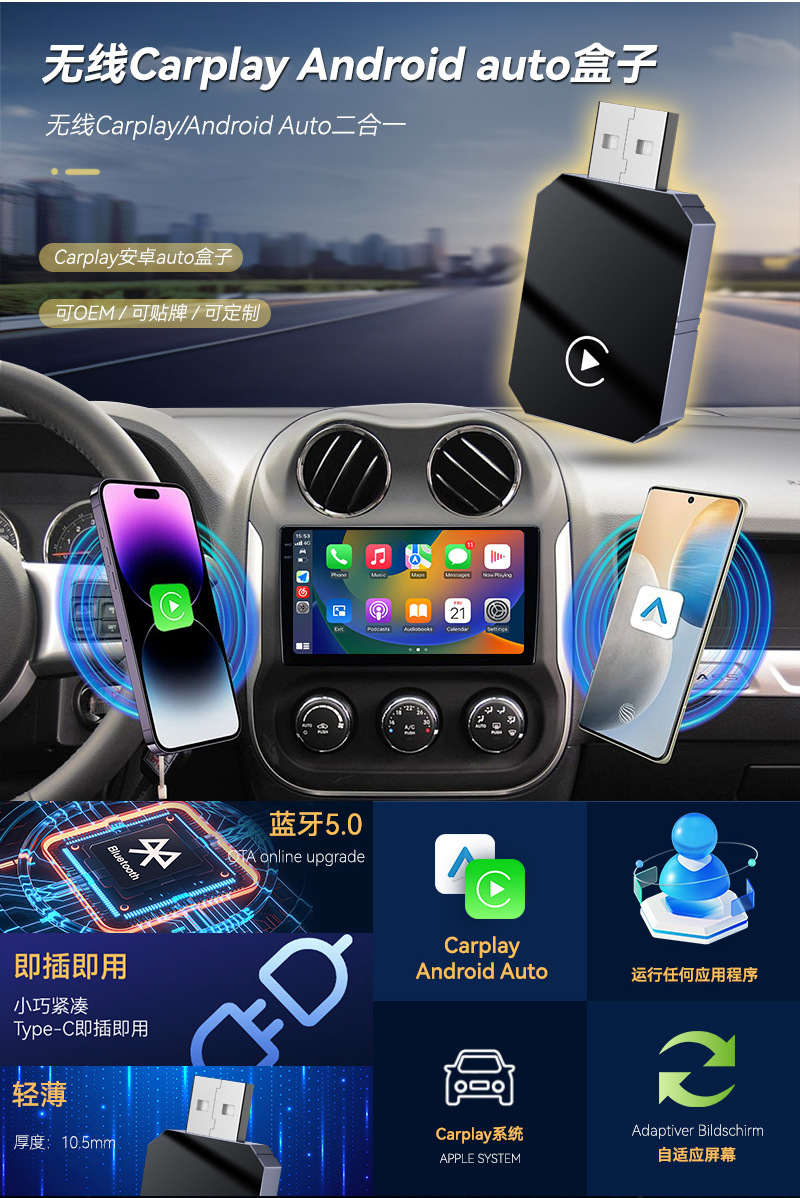 Модуль беспроводного подключения CarPlay 2-в-1, интерфейсный адаптер для автомобиля, умный Android Auto/CarPlay бокс