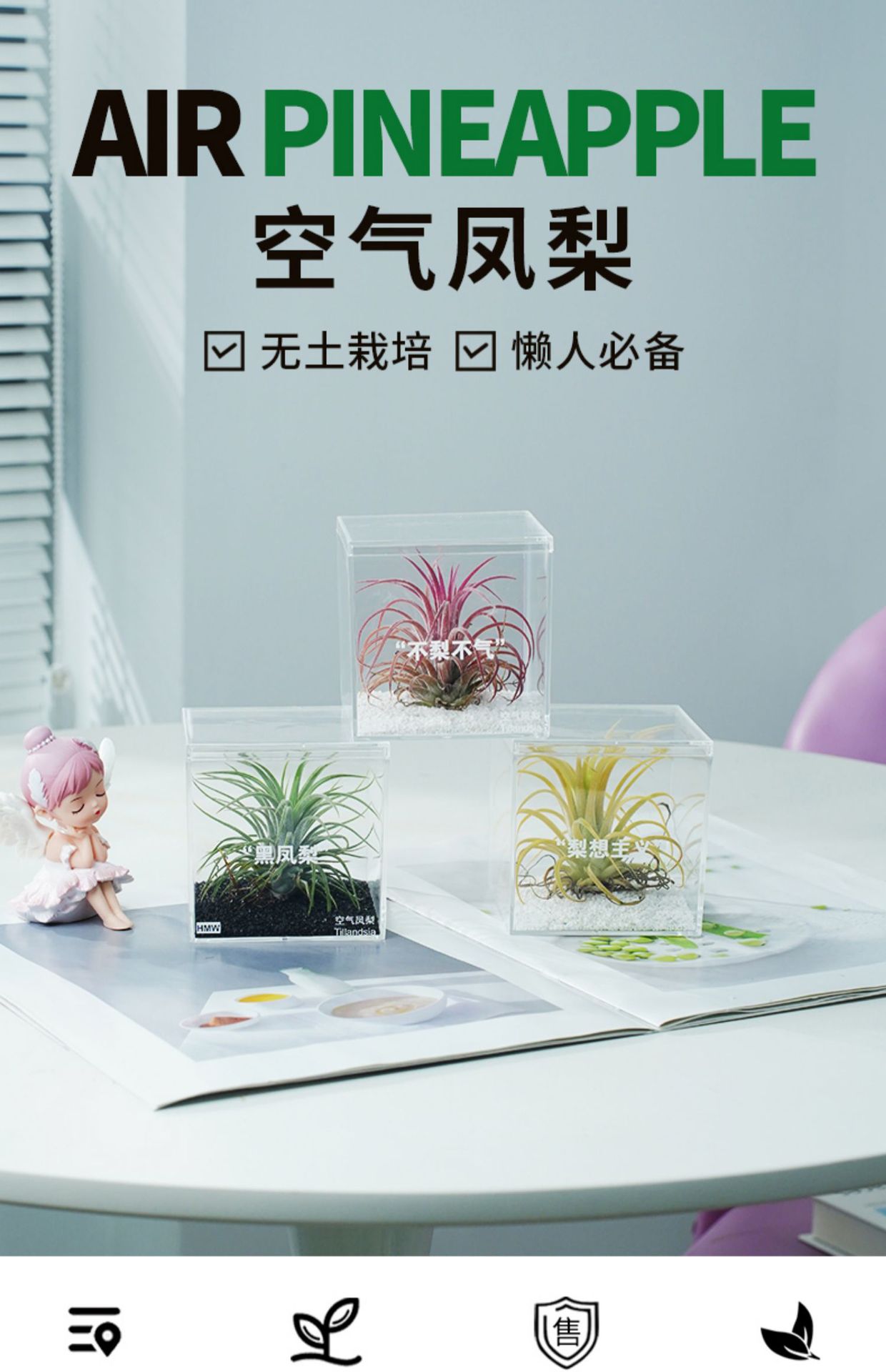 Зеленый эльф в шкатулке; Желтый эльф в шкатулке; Красный эльф в шкатулке; Комбинированный набор из 3 коробок; Красный Эльф (голое растение без горшка); Черный ананас (голое растение без горшка); 1 маленький распылитель [30 мл]; 1 насадка для полива цветов; Цветные впитывающие шарики 1 упаковка