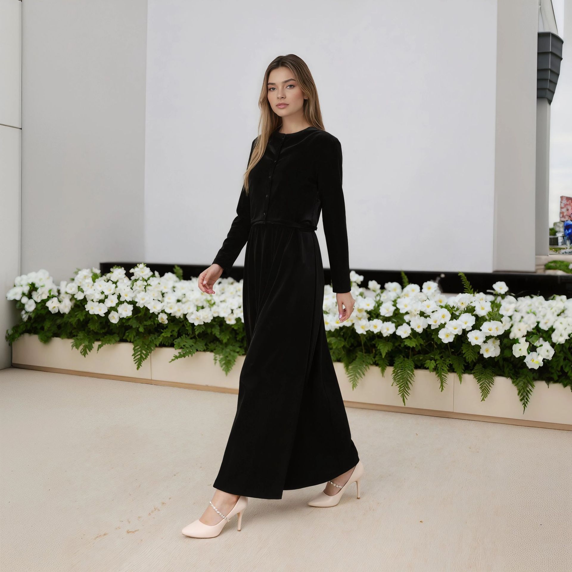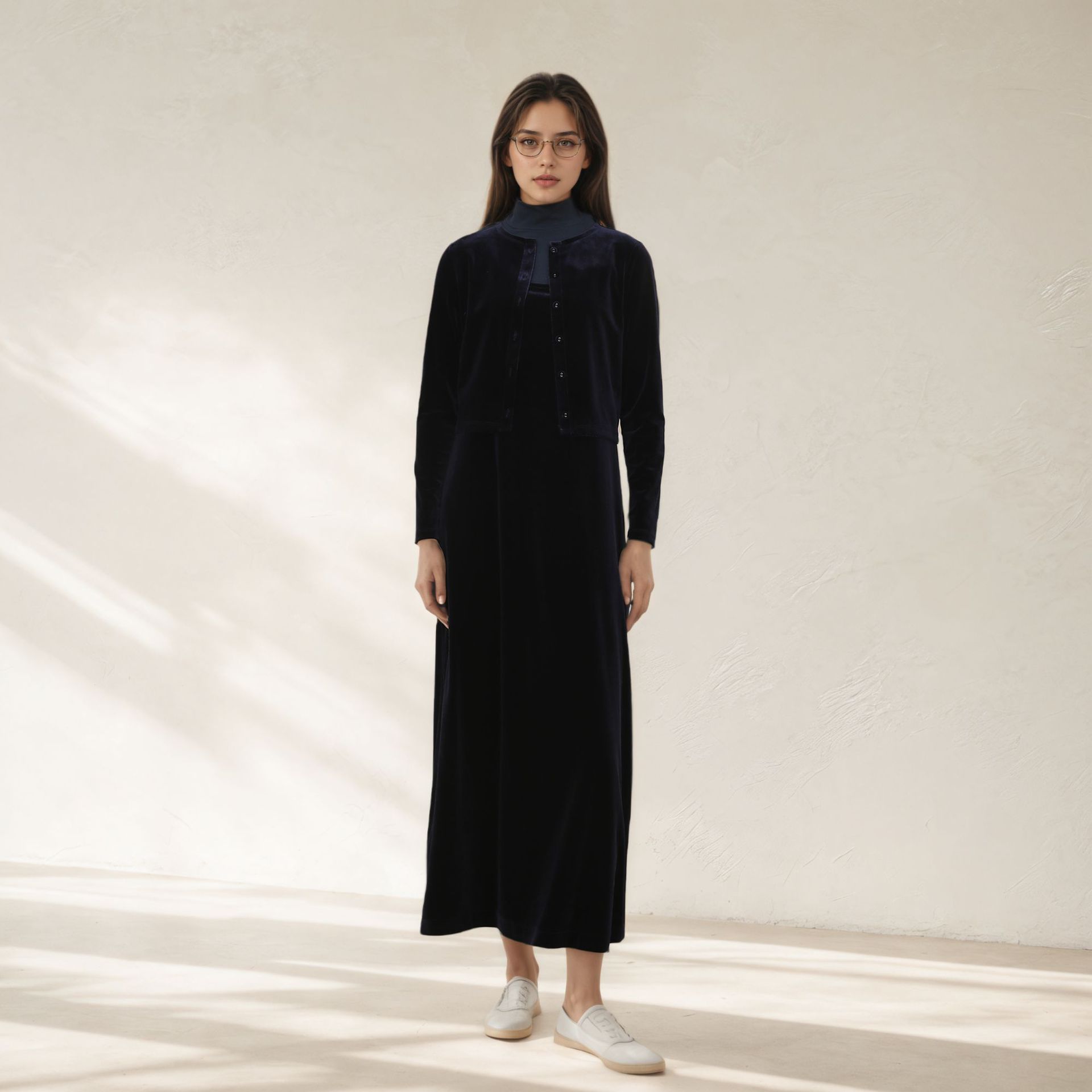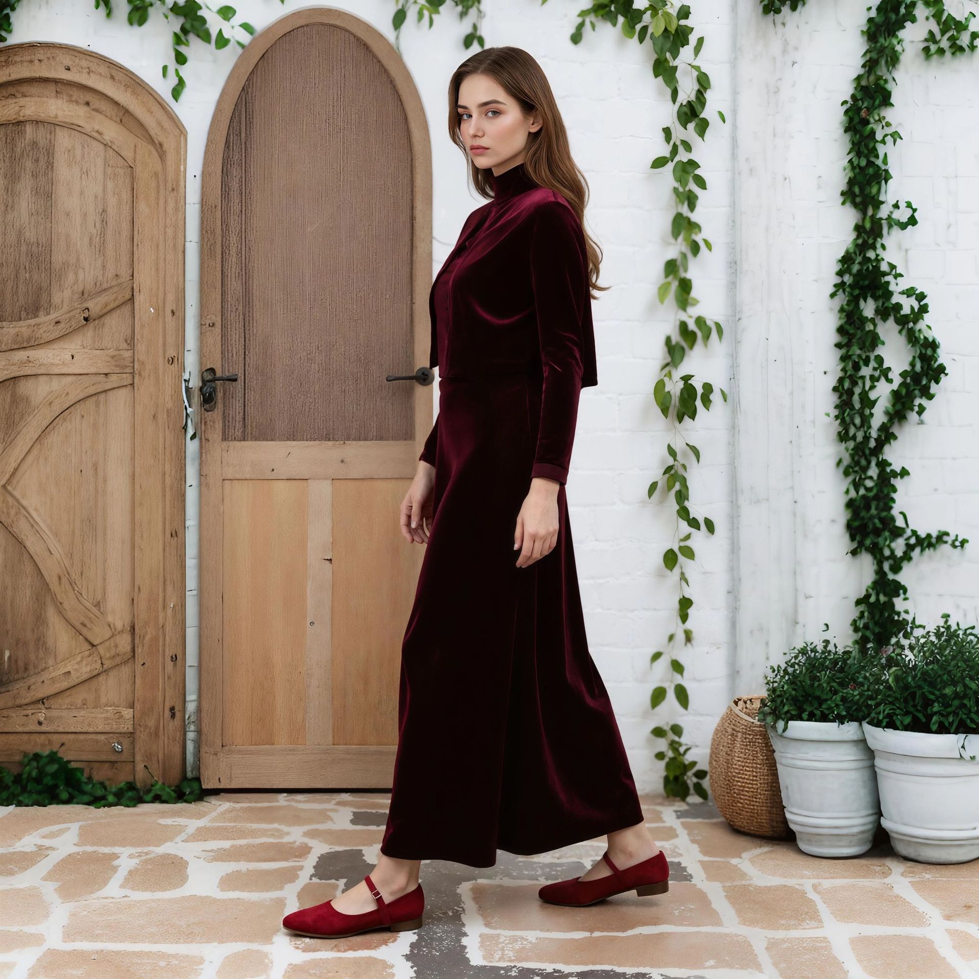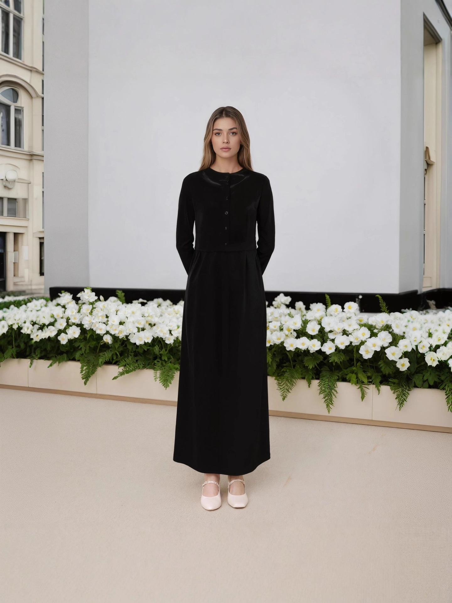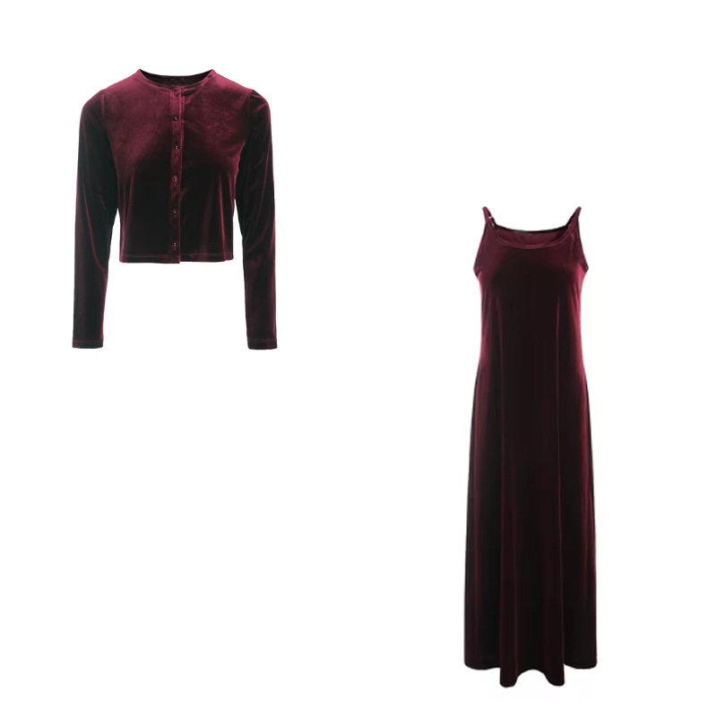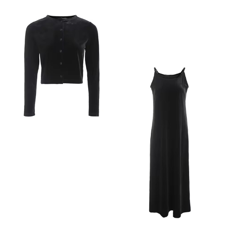 Новый женский комплект 2025 года с AliExpress: элегантный и интеллектуальный стиль — топ на пуговицах + длинная юбка на бретелях.