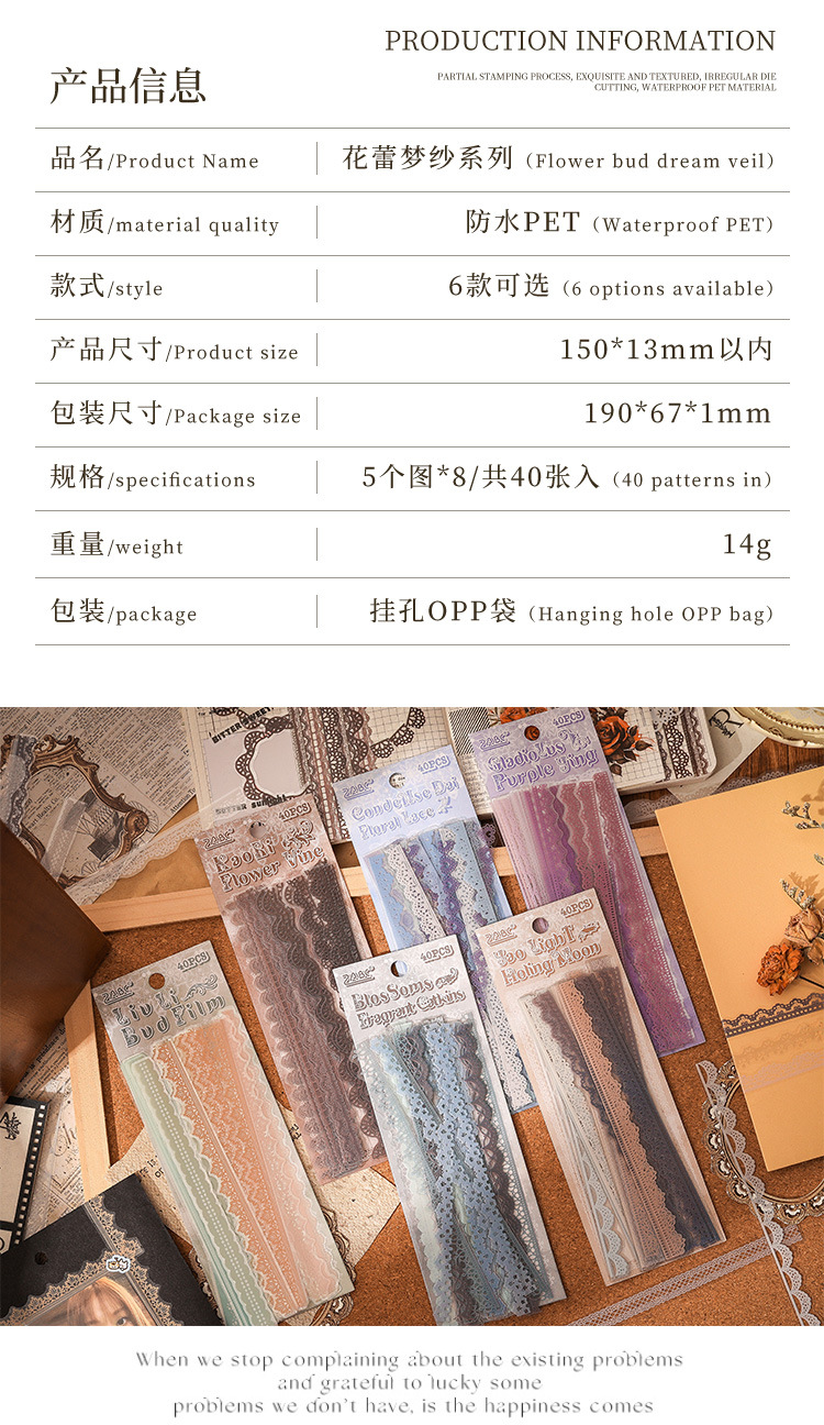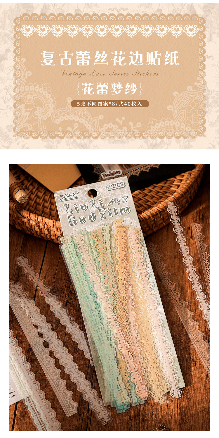 Yuezhen цветочный бутон мечты кружевной кружевной ручной счет пакет наклейки трансграничный ретро pet наклейки ручной счет материал наклейки