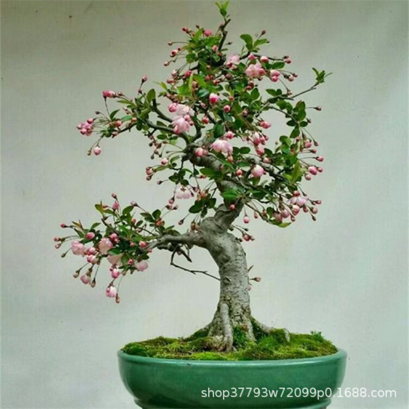 Цветы бегонии в горшках саженцы бонсай старые сваи, зеленые растения в помещении